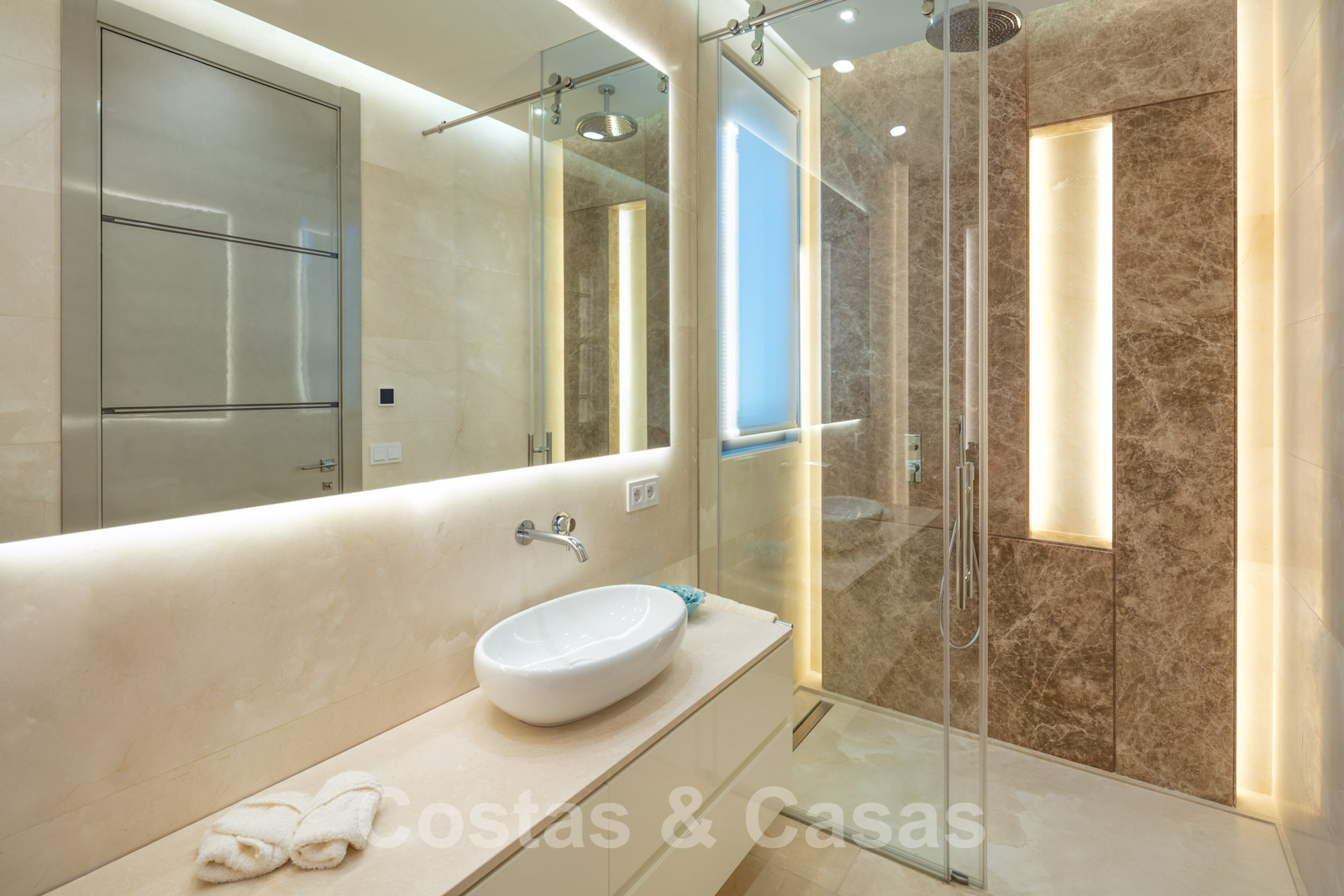 Conçu de manière très luxueuse, avec des chambres élégantes et des salles de bains décorées de pierres de marbre.