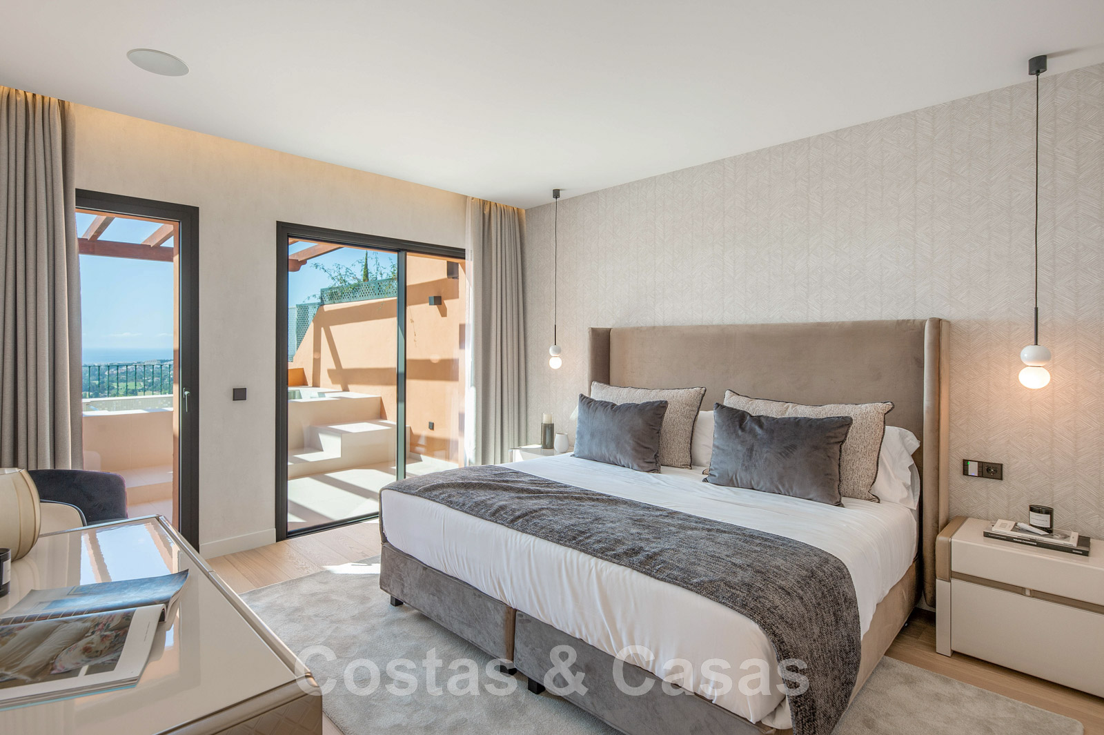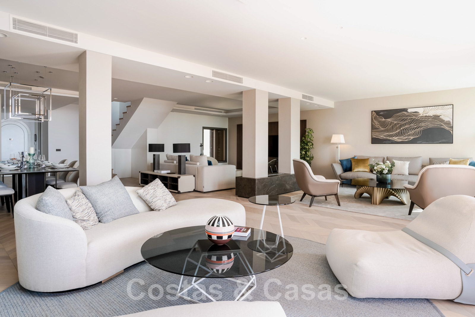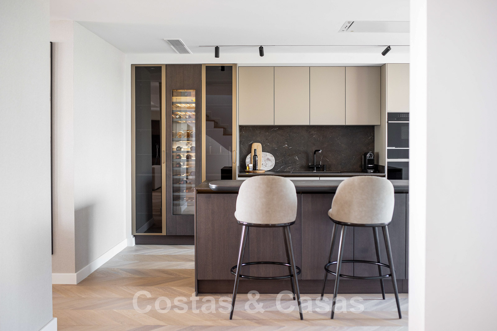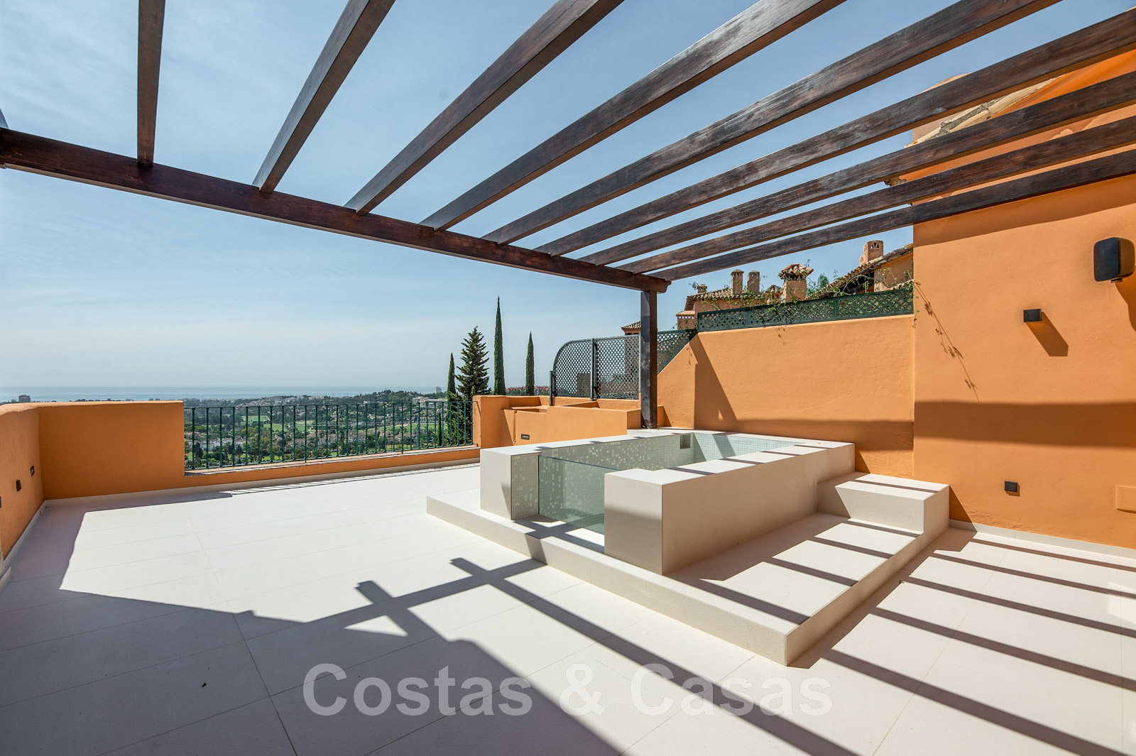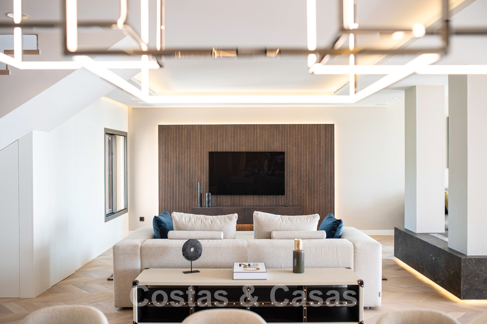 Penthouse duplex spacieux, luxueux et contemporain, avec vue imprenable sur la mer Méditerranée à Nueva Andalucia, Marbella.