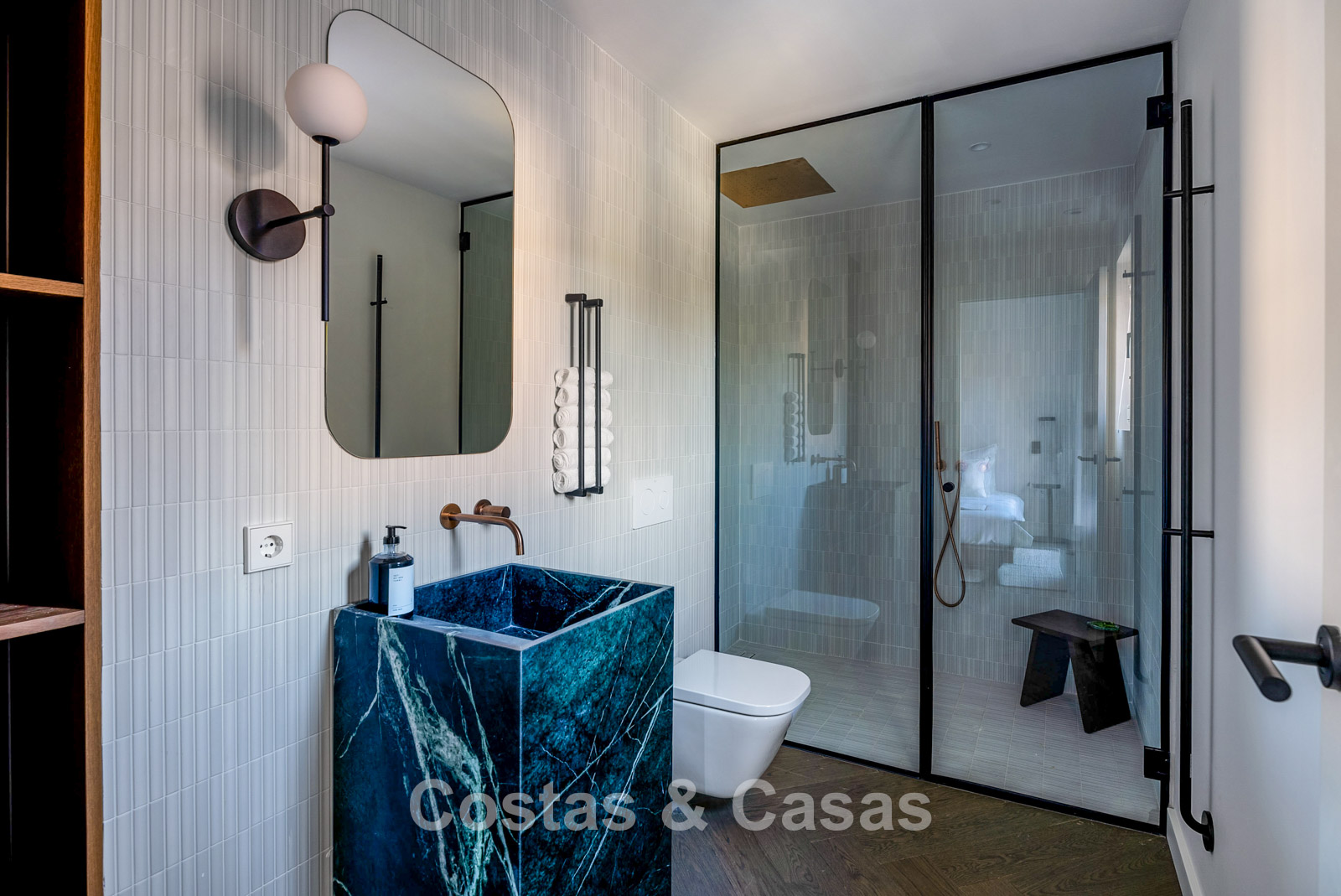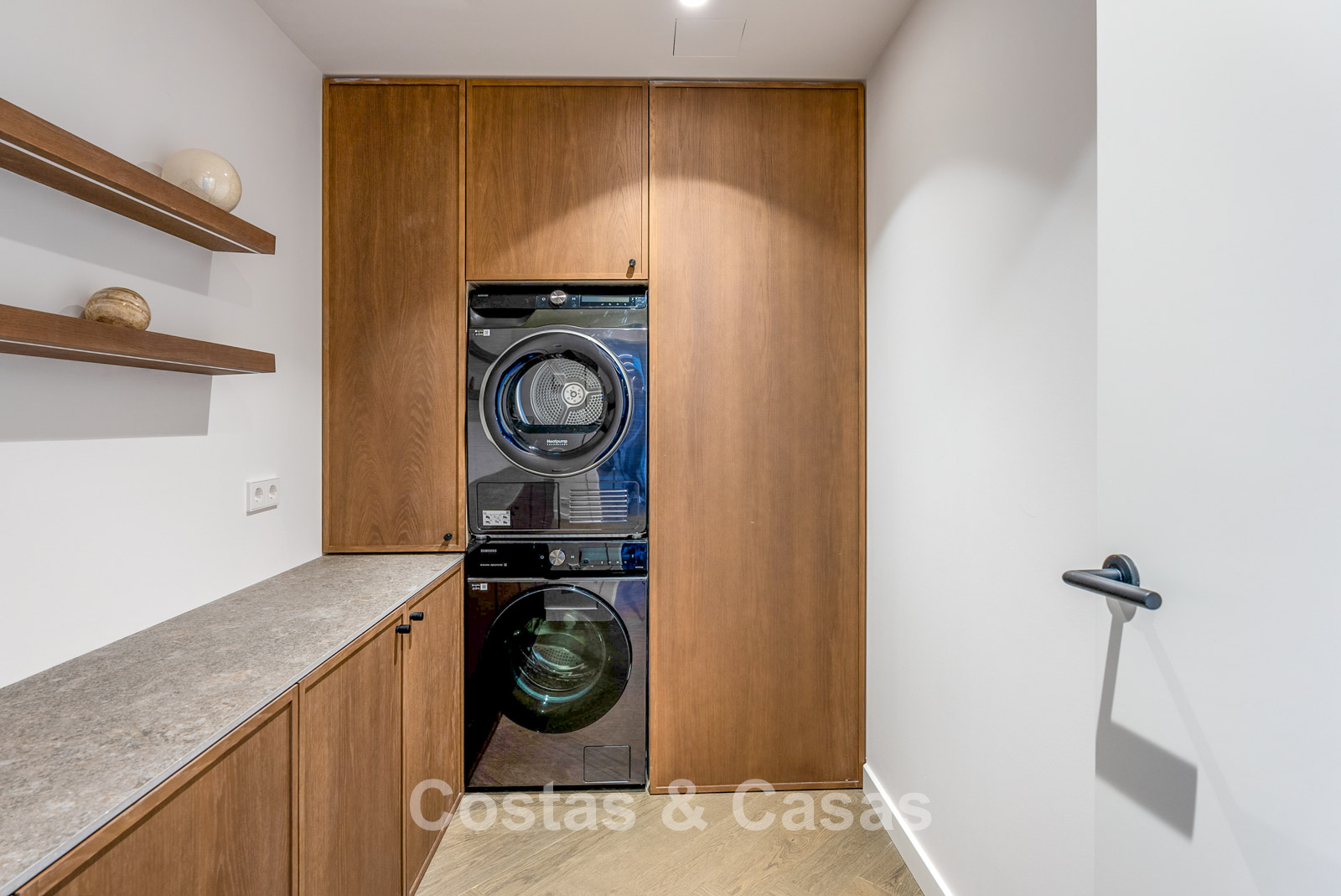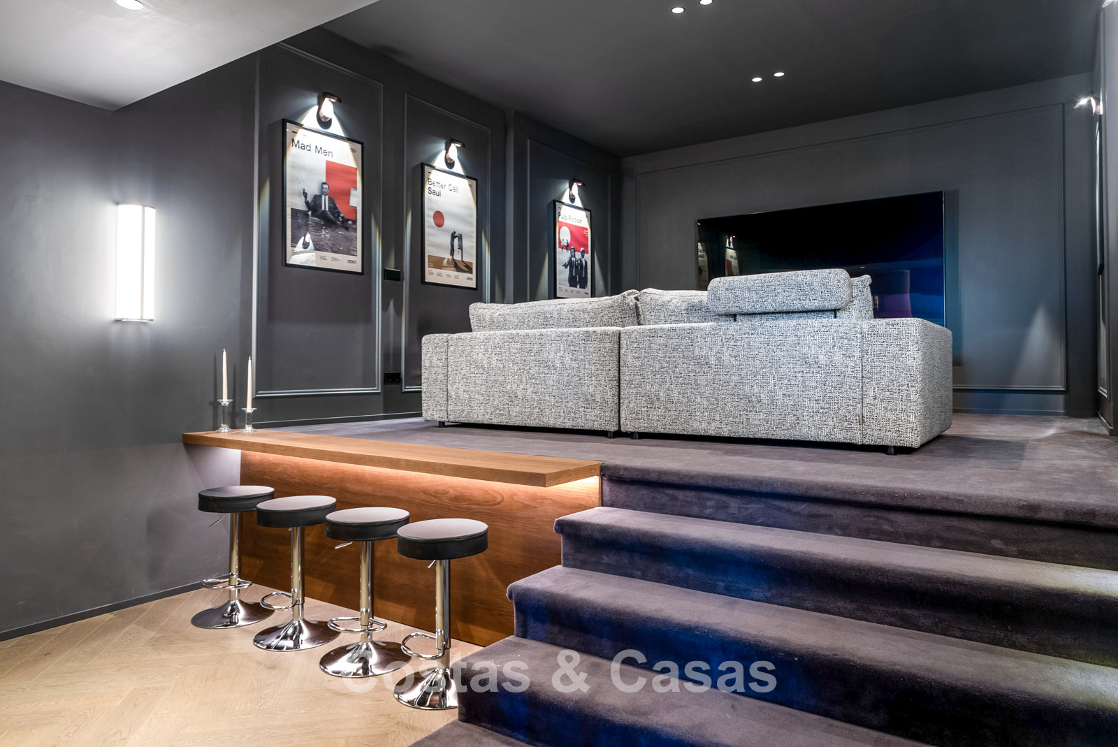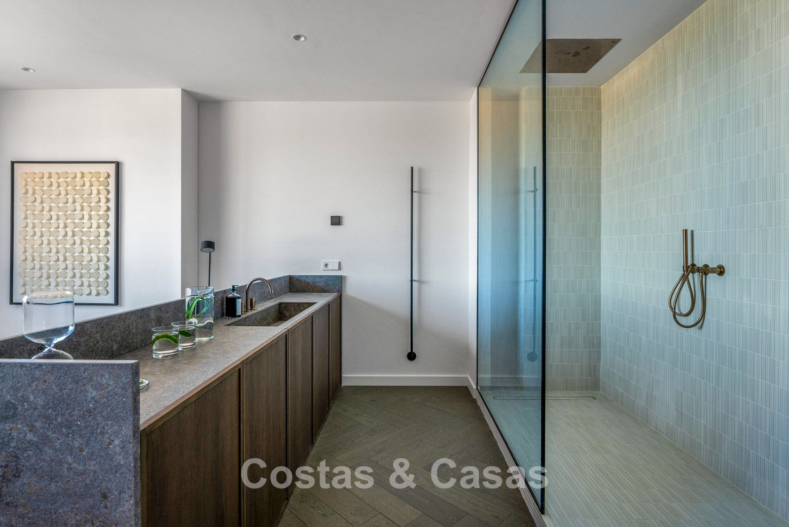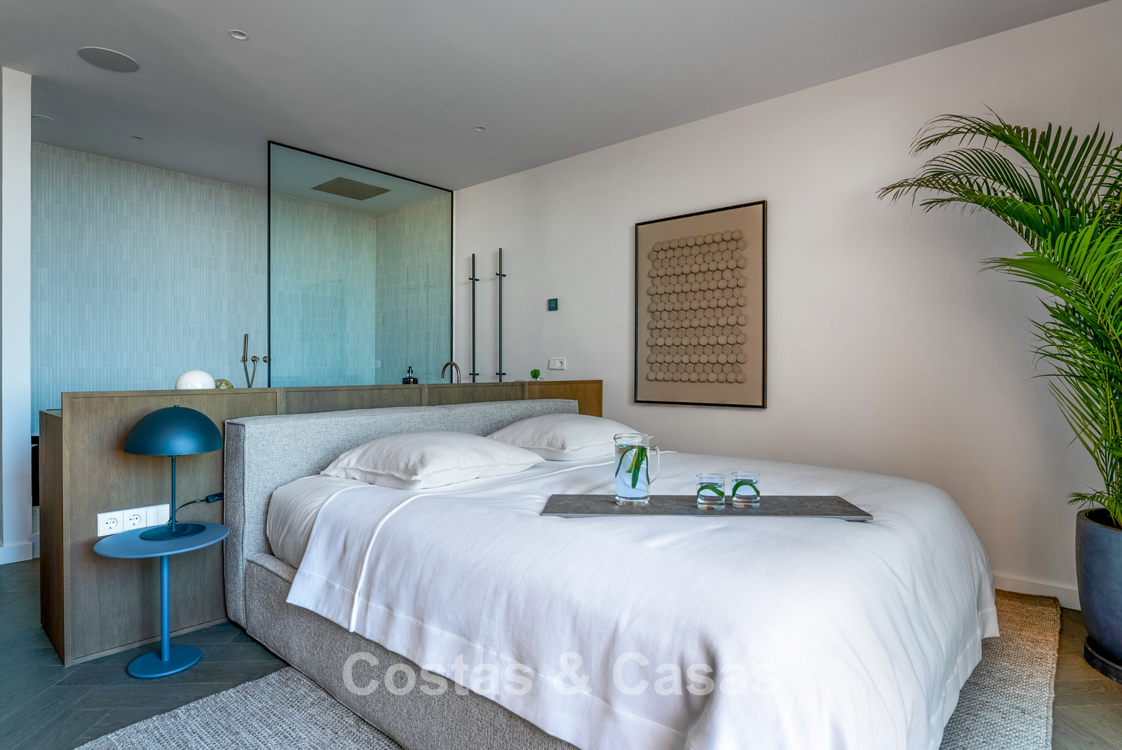 Spacieux penthouse en duplex dans un complexe à l'architecture méditerranéenne contemporaine. Entièrement rénové aux normes les plus élevées, avec un oeil pour le luxe, le confort et le raffinement. Utilisant des matériaux de qualité, notamment de la pierre, des menuiseries en chêne foncé et des tuiles nervurées. Orienté plein sud. Vue sur la mer Méditerranée et le paysage montagneux. La vaste terrasse principale, avec une partie couverte, sera équipée d'une cuisine extérieure et d'un espace détente. L'intérieur respire le luxe moderne et le minimalisme, avec une forte concentration sur des lignes épurées, des matériaux naturels et une palette de couleurs chaudes et neutres. De hautes fenêtres coulissantes offrent un intérieur aéré et très lumineux. Espace de vie ouvert avec un salon TV élégant avec cheminée. La cuisine personnalisée a un style minimaliste moderne et luxueux avec des accents chaleureux et naturels. Espace repas intégré. Un escalier flottant avec des rampes monte à l'étage supérieur. 4 chambres, 4 salles de bains et une toilette séparée. La suite parentale dispose d'une salle de bain ouverte, d'un dressing et d'un accès à une élégante terrasse privée. Un espace entièrement dédié à la détente sera équipé d'un home cinéma et d'un bar à vin design. Parquets en structure à chevrons. Buanderie. Débarras. Garage intérieur pour 1 voiture.
