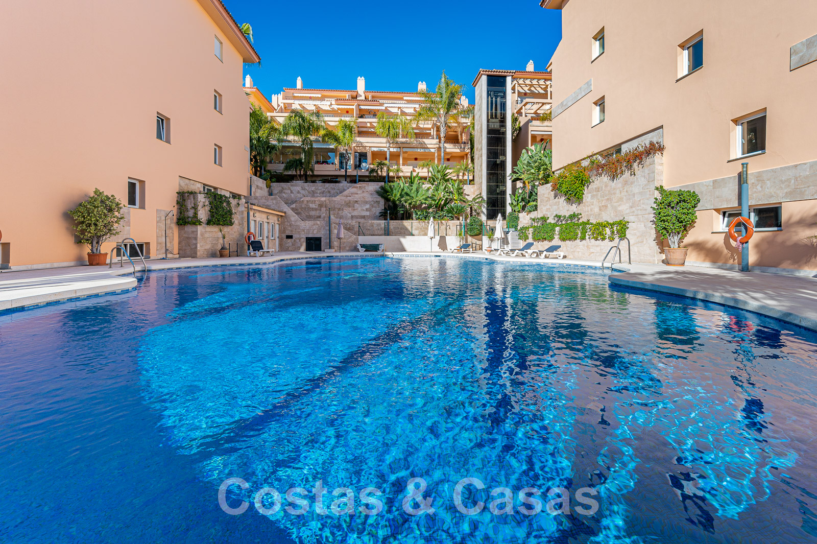 Complexe d'appartements de style architectural méditerranéen.