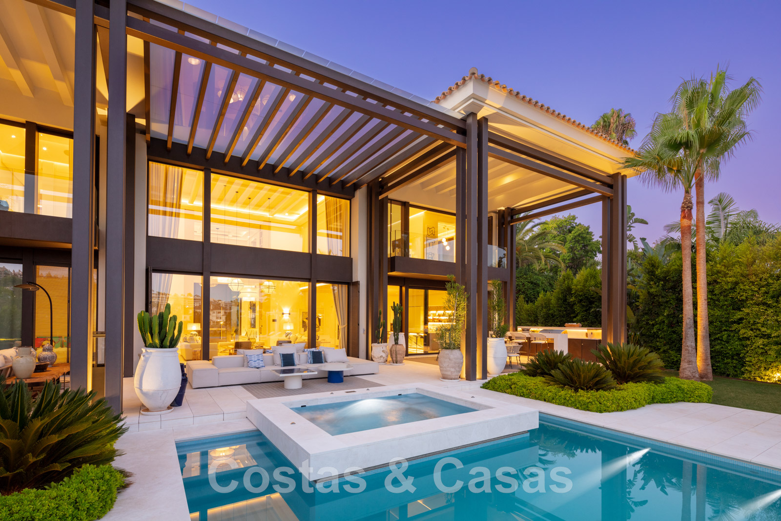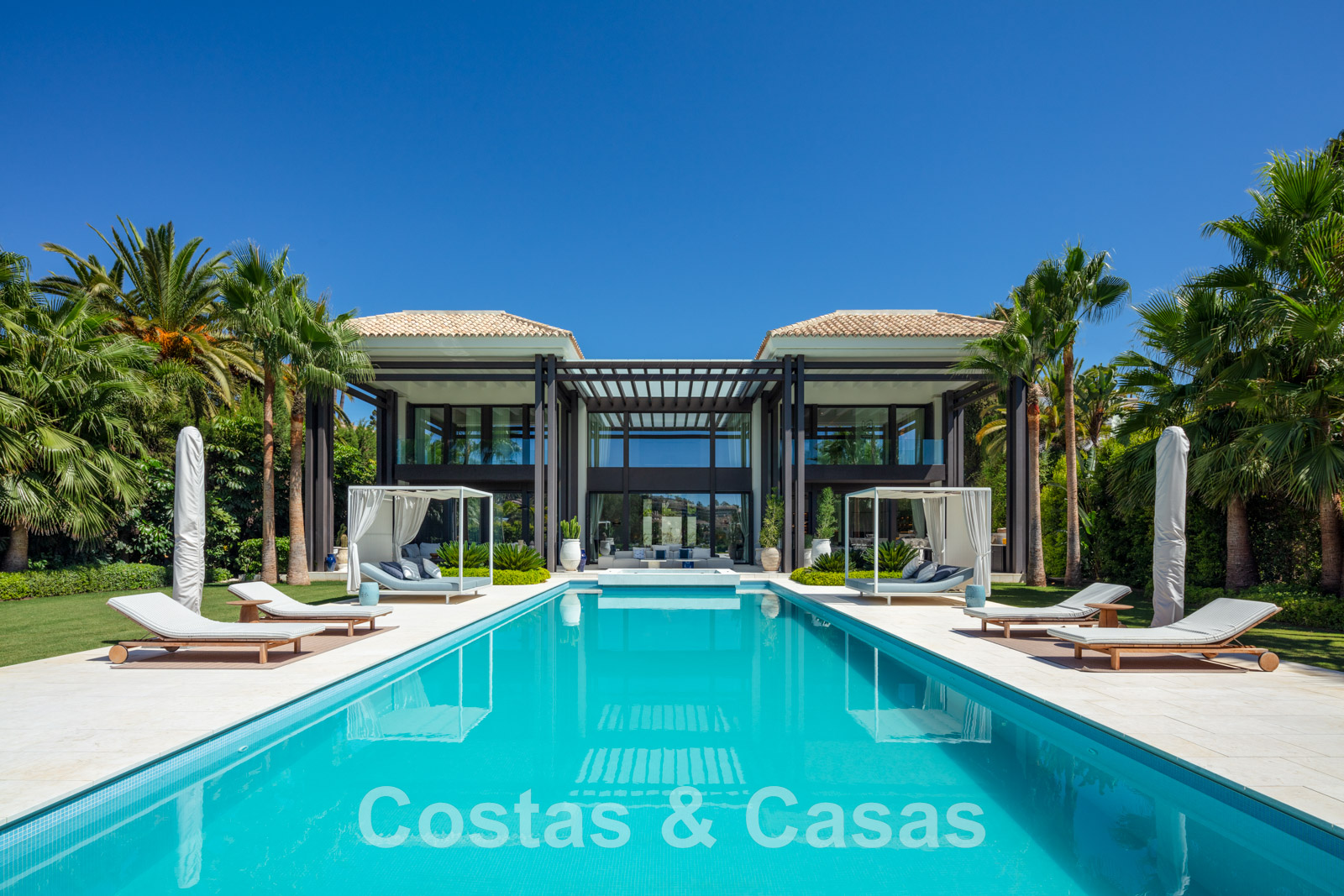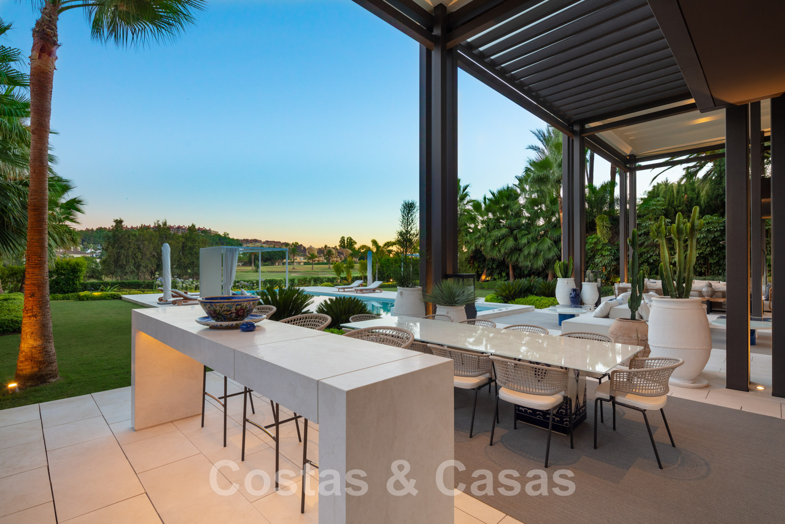 Avant-garde, villa de luxe à vendre avec design architectural, au bord du terrain de golf à Nueva Andalucia, Marbella