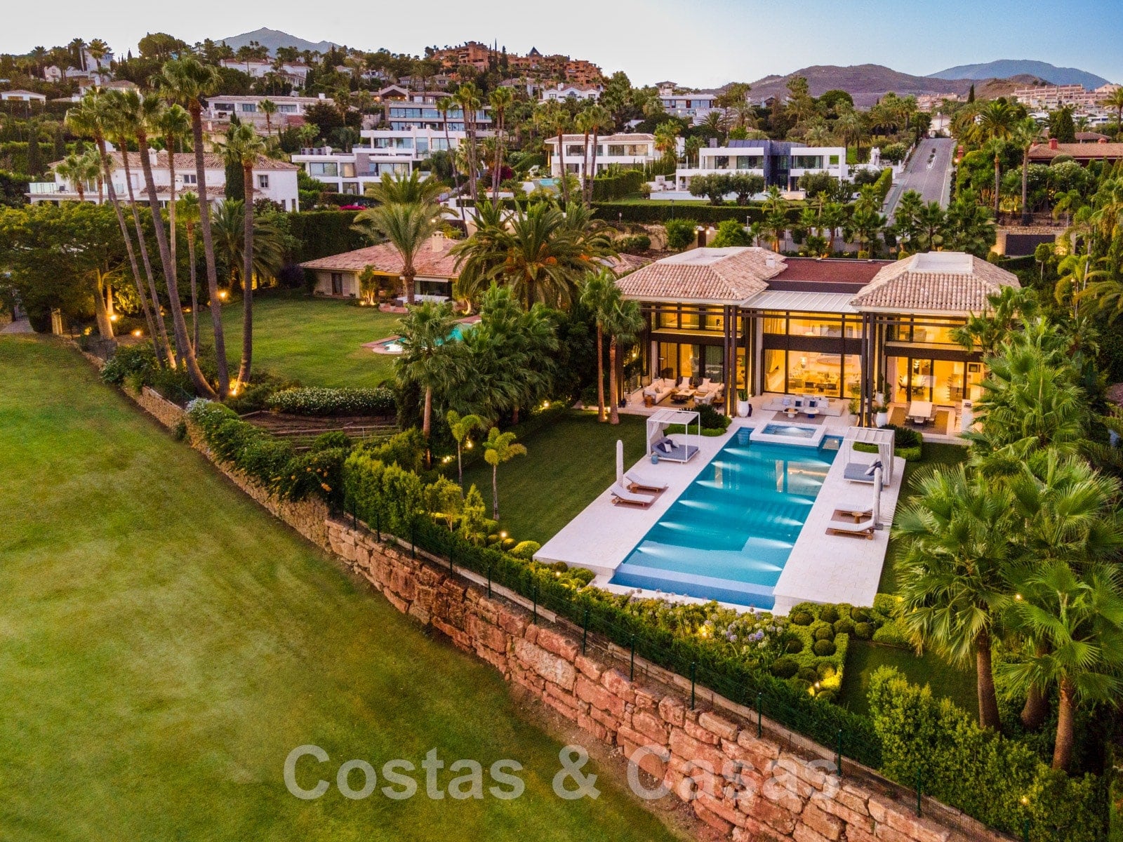 6 chambres à coucher et 7 salles de bain.