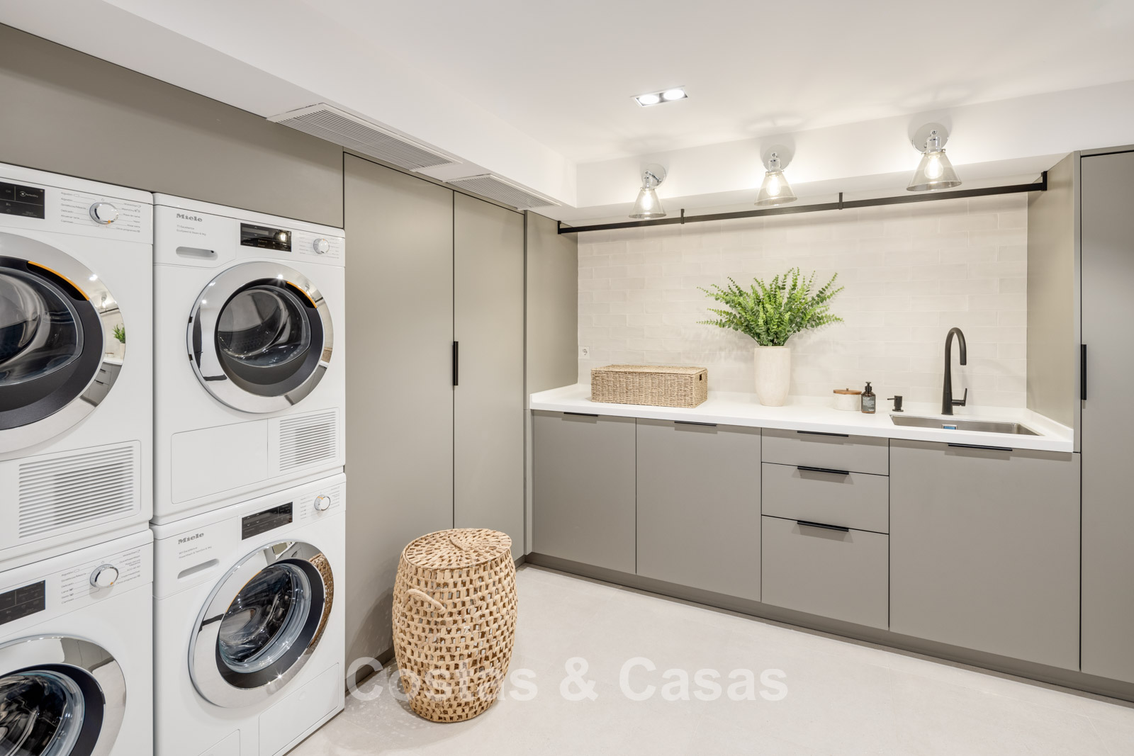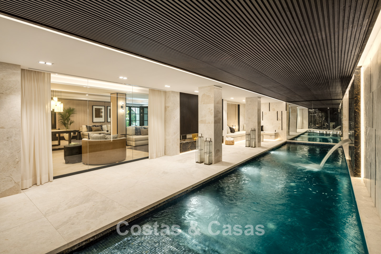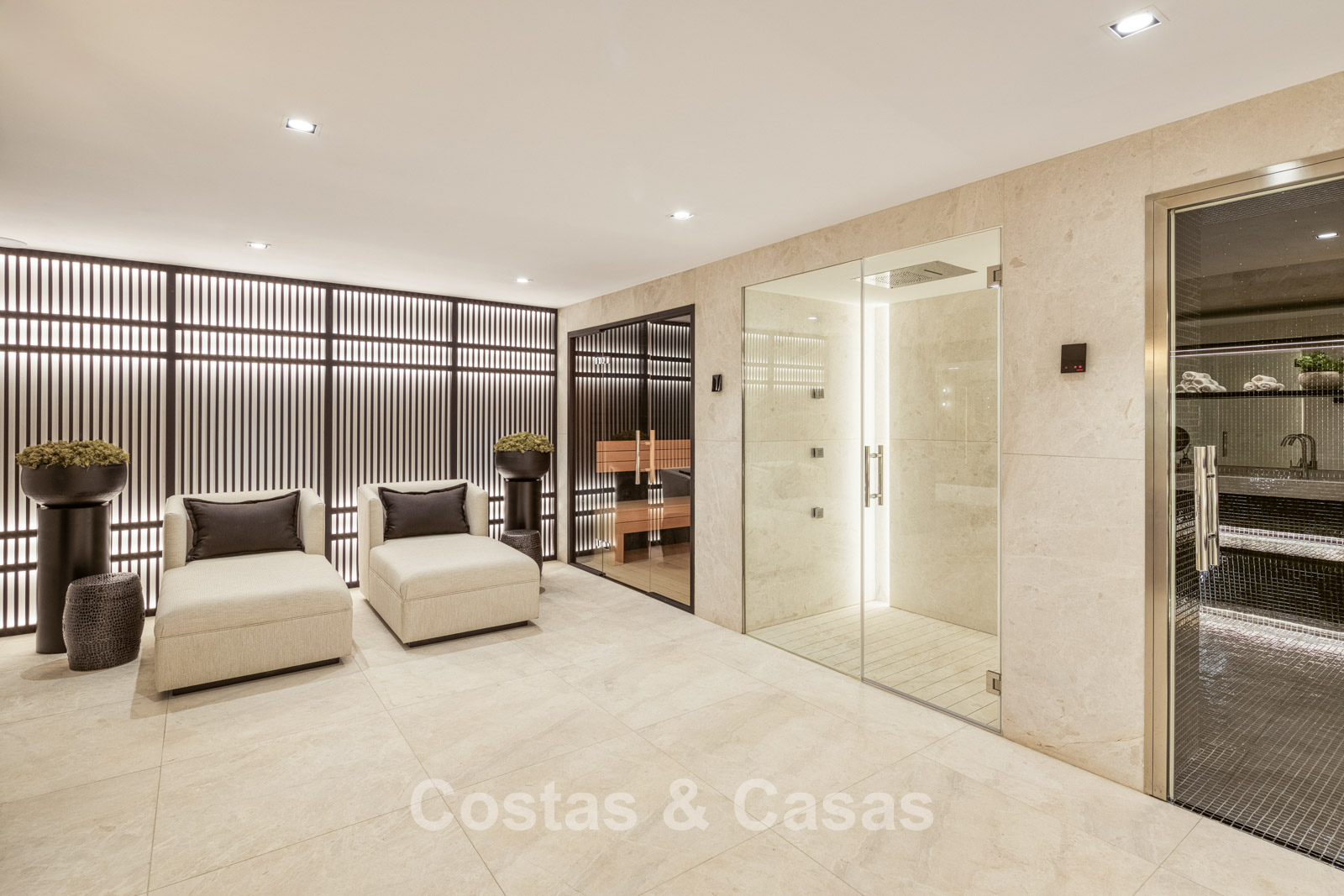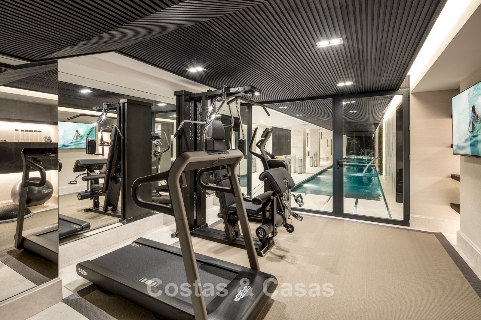 Autres prestations : Ascenseur privé. Climatisation réversible. Cheminées modernes (plusieurs). Double vitrage. Balustrades en verre autour des terrasses. Électroménagers Gaggenau et Miele. Système domotique complet, intérieur et extérieur. Chauffage au sol autour de la piscine intérieure. Armoires intégrées sur mesure. Éclairage LED intérieur et extérieur. Système d'arrosage automatique.