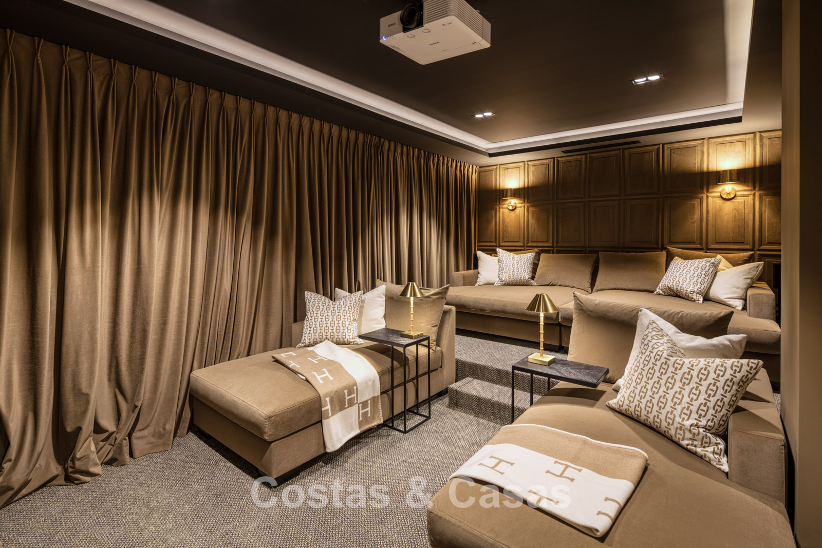Villa de luxe indépendante au design moderne et raffiné. L’intérieur respire l’élégance grâce à des finitions soignées et des détails subtils. Matériaux de la plus haute qualité et marques renommées. Aménagement confortable et ouvert avec un intérieur lumineux. Un espace de vie lumineux et aéré avec un plafond surélevé, des poutres peintes en blanc et de grandes fenêtres offrant une abondante lumière naturelle. Des baies vitrées coulissantes du sol au plafond avec profilés encastrés assurent une connexion harmonieuse entre l'intérieur et l'extérieur. Une magnifique cuisine sur mesure avec des appareils électroménagers haut de gamme, un îlot central et un coin repas intégré. Des portes vitrées sur mesure mènent à une élégante et spacieuse deuxième salle à manger, idéale pour les grands groupes. Espace bureau. 7 chambres, 7 salles de bains. La suite principale, située à l'étage, est un refuge privé exceptionnel aux proportions généreuses, avec un élégant dressing, une somptueuse salle de bains attenante et une terrasse privée offrant une vue imprenable sur le golf. Sols en marbre de qualité dans tous les espaces extérieurs. L’étage inférieur est entièrement dédié à la détente et aux loisirs, avec un home cinéma de luxe, un espace détente chaleureux, un bar avec aire de jeux, une cave à vin, une piscine intérieure chauffée, une salle de fitness, un sauna et un hammam. Buanderie équipée d'appareils Siemens et Miele. Local technique. Garage intérieur pour 3 voitures, accessible par une allée privée.