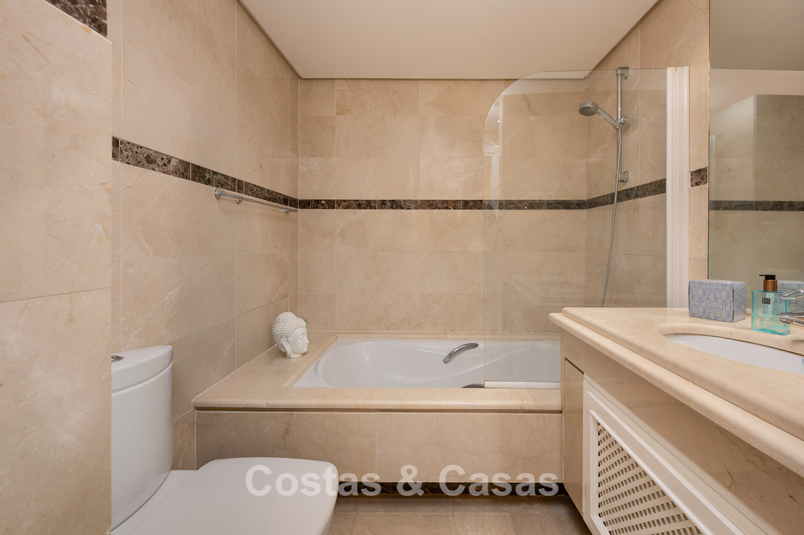 Situé dans un quartier résidentiel de luxe, à quelques pas de Puerto Banús, des plages, des boutiques, des cafés et des restaurants, ainsi que d'un petit centre commercial avec supermarché. Urbanisation exclusive avec sécurité 24h/24 et accès sans obstacle. Les résidents bénéficient de jardins tropicaux arborés, de piscines rénovées au sel ou au chlore, d'une salle de sport et d'un sauna. Un parc à proximité offre des installations de loisirs supplémentaires, notamment une aire de jeux pour enfants, un parc à chiens, un court de paddle-tennis et un terrain de pétanque. À l'entrée de la célèbre vallée du golf de Nueva Andalucia, avec ses parcours prestigieux tels que Las Brisas Golf, Aloha Golf et Los Naranjos Golf, cet appartement est idéal pour les amateurs de golf. Le début du Golden Mile est accessible à pied. Le centre-ville de Marbella est à environ 10 minutes en voiture, et l'aéroport international de Malaga est à 45-50 minutes par l'AP-7 ou la route côtière A7.