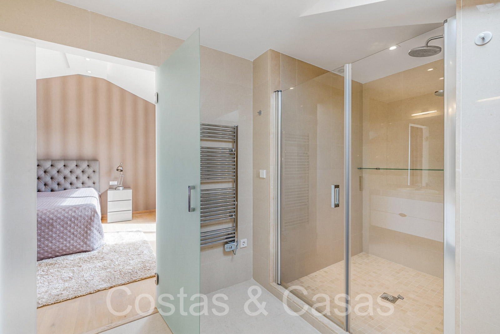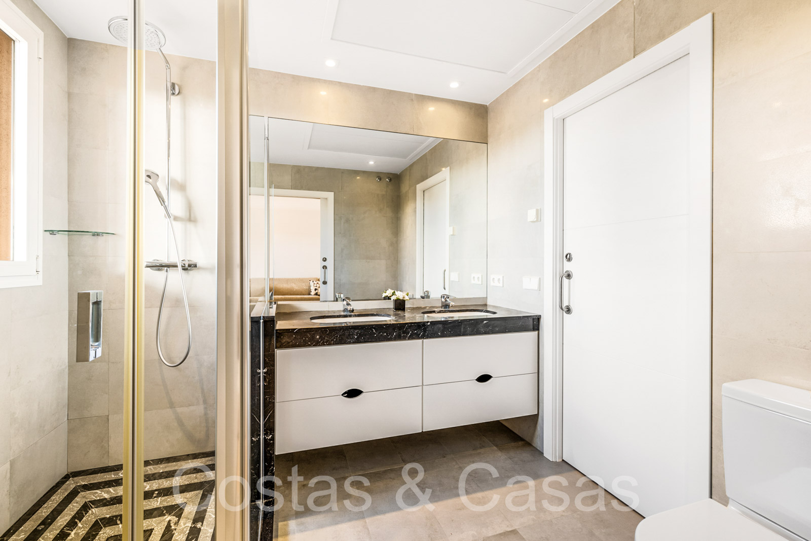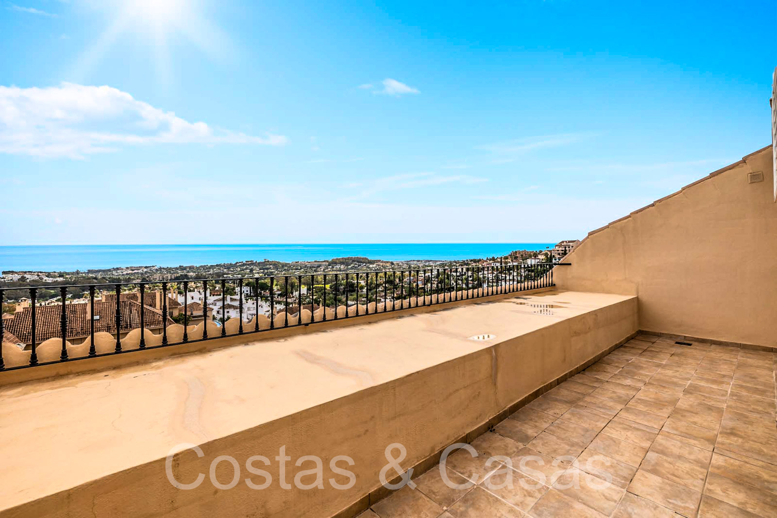Spacieux penthouse en duplex composé de 2 unités résidentielles séparées. Orienté vers le sud-ouest. Vue panoramique vers la mer Méditerranée. Un ascenseur privé s'ouvre directement sur le penthouse. Terrasse ouverte et couverte où vous pourrez profiter de l'agréable climat méditerranéen toute l'année. Intérieur lumineux et aéré avec un agencement ouvert. Grand espace de vie ouvert avec un salon et un coin repas intégré. Cuisine entièrement équipée avec des appareils électroménagers haut de gamme et un bar pour le petit-déjeuner. 4 chambres, 4 salles de bains. 2 suites parentales à l'étage, chacune avec salle de bain privative, dressing et accès à la terrasse. Les hautes fenêtres coulissantes génèrent beaucoup de lumière naturelle et permettent d'accéder à l'espace extérieur. Sols en carrelage grand format de couleur crème. Buanderie. 2 places de parking privées incluses.
