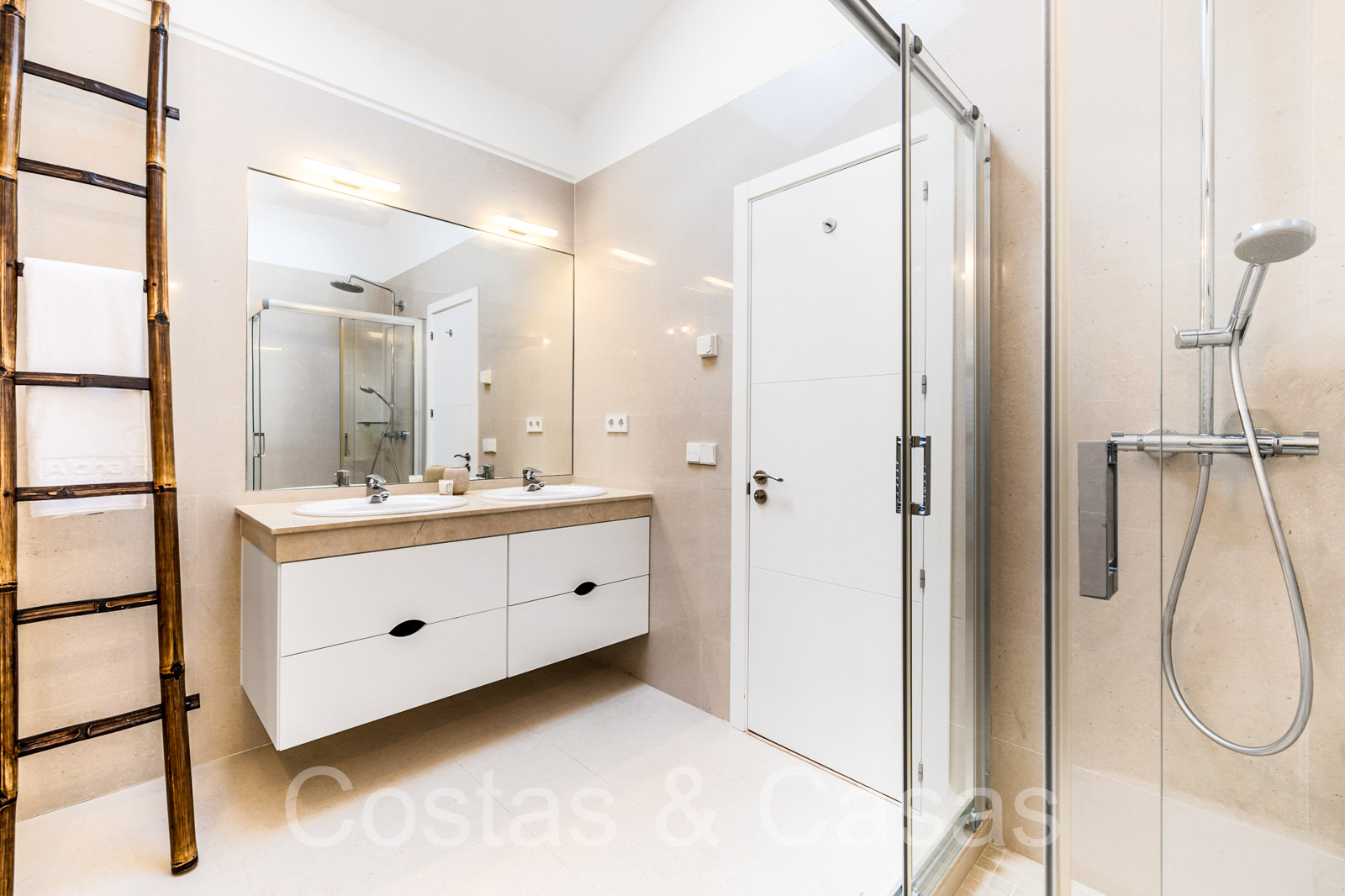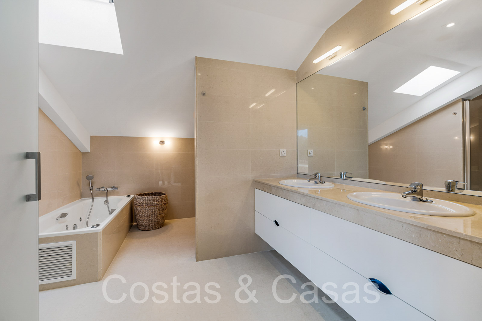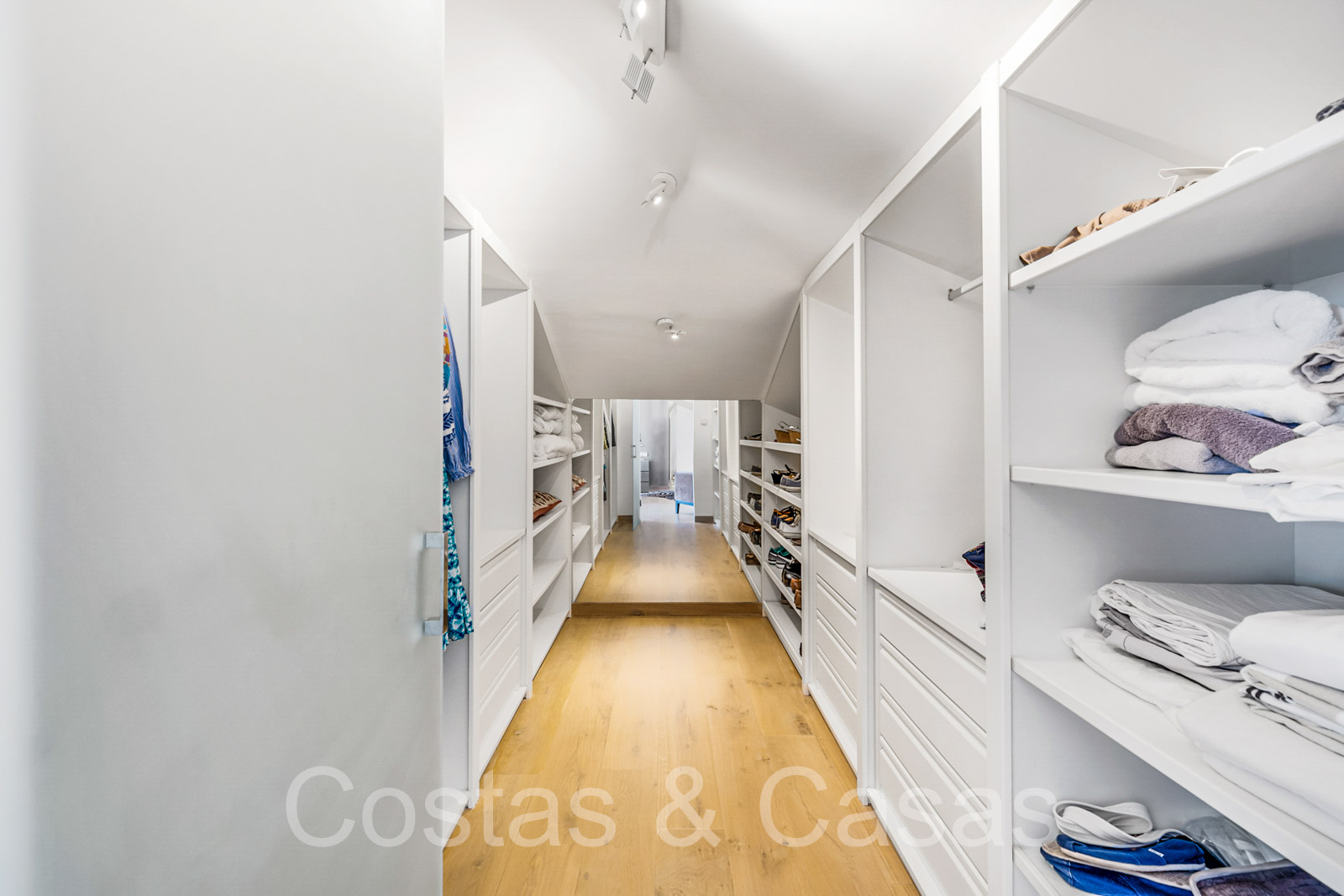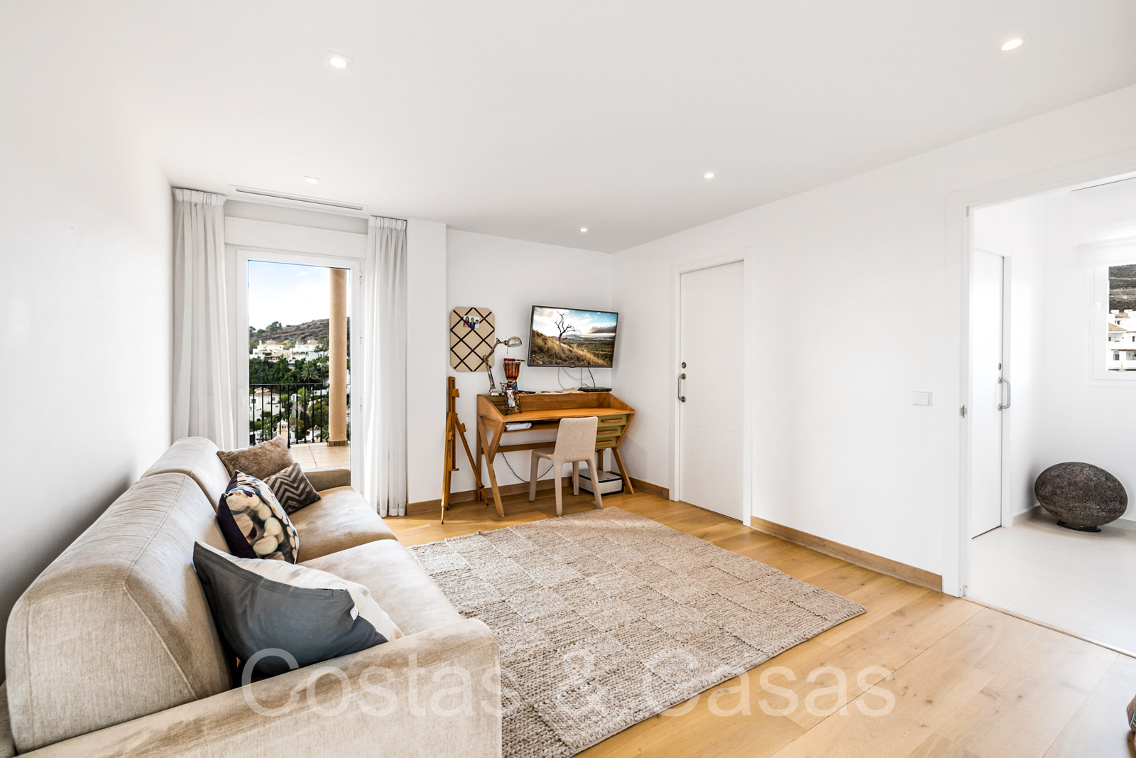 Spacieux penthouse en duplex composé de 2 unités résidentielles séparées. Orienté vers le sud-ouest. Vue panoramique vers la mer Méditerranée. Un ascenseur privé s'ouvre directement sur le penthouse. Terrasse ouverte et couverte où vous pourrez profiter de l'agréable climat méditerranéen toute l'année. Intérieur lumineux et aéré avec un agencement ouvert. Grand espace de vie ouvert avec un salon et un coin repas intégré. Cuisine entièrement équipée avec des appareils électroménagers haut de gamme et un bar pour le petit-déjeuner. 4 chambres, 4 salles de bains. 2 suites parentales à l'étage, chacune avec salle de bain privative, dressing et accès à la terrasse. Les hautes fenêtres coulissantes génèrent beaucoup de lumière naturelle et permettent d'accéder à l'espace extérieur. Sols en carrelage grand format de couleur crème. Buanderie. 2 places de parking privées incluses.