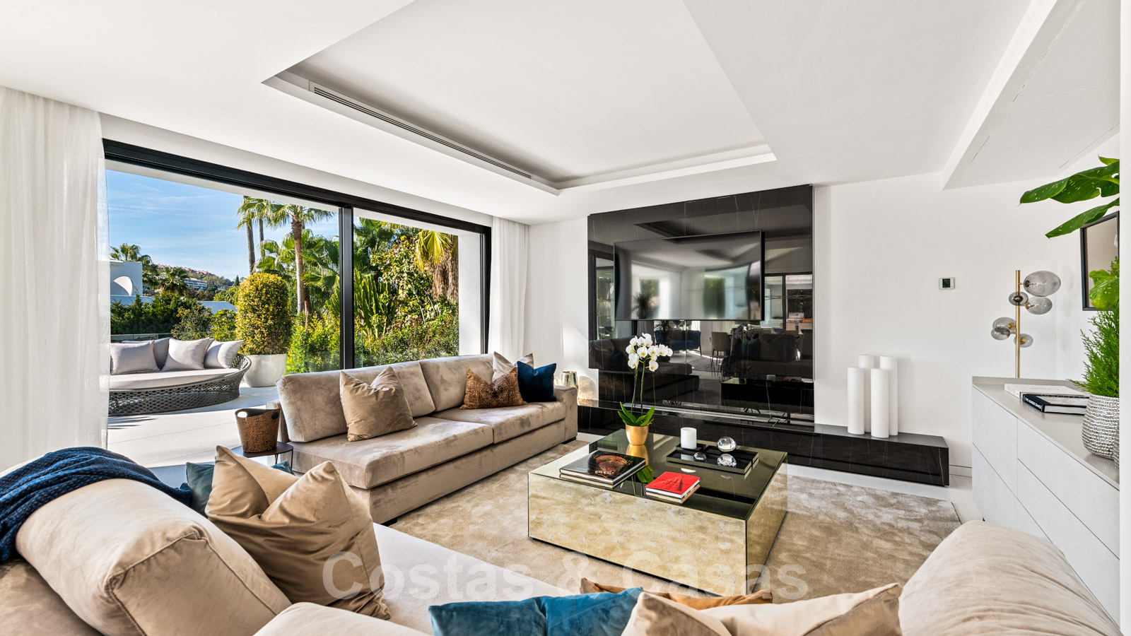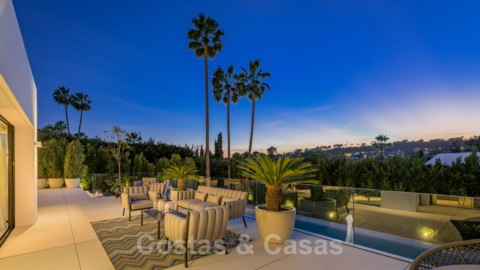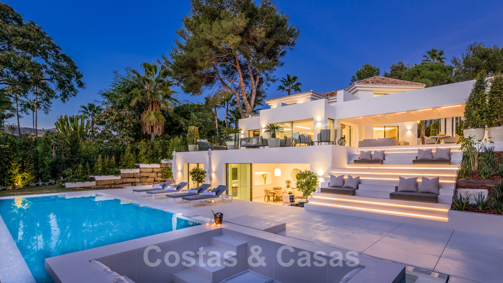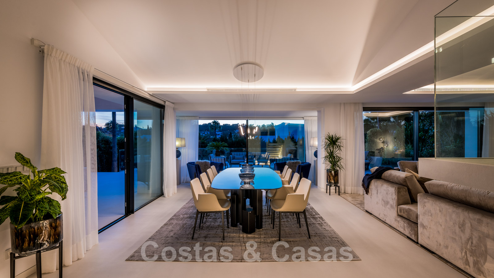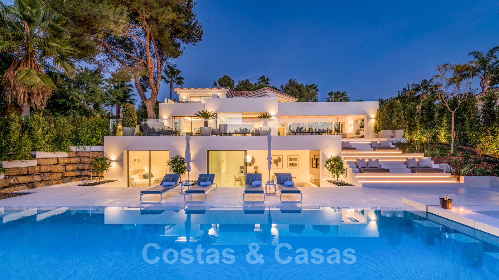 La vie à l'intérieur et à l'extérieur est mise en valeur. Il y a de grandes terrasses ouvertes et couvertes, y compris un coin chill-out, une cuisine extérieure et une salle à manger. Un coin salon supplémentaire est attenant à la magnifique piscine à débordement.