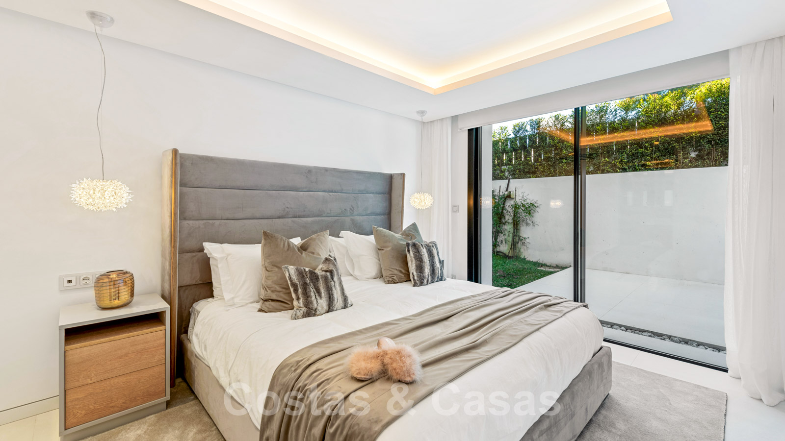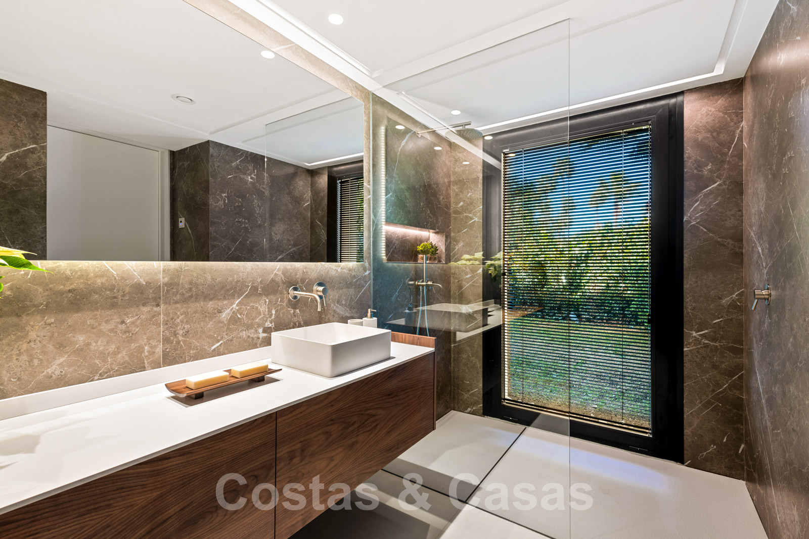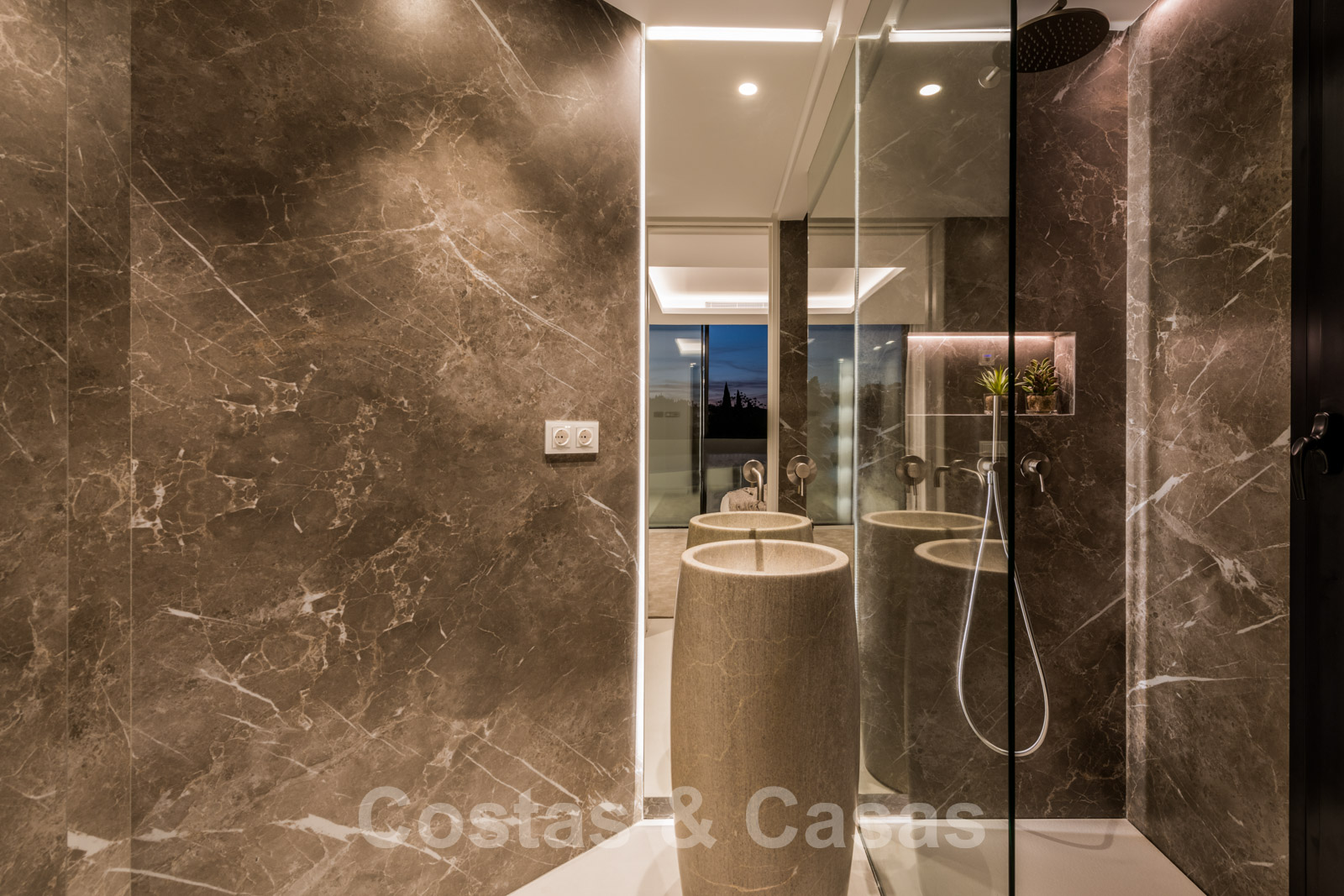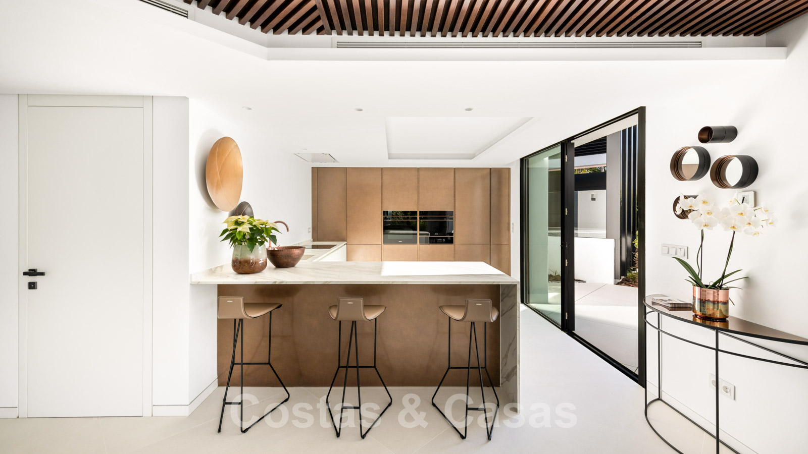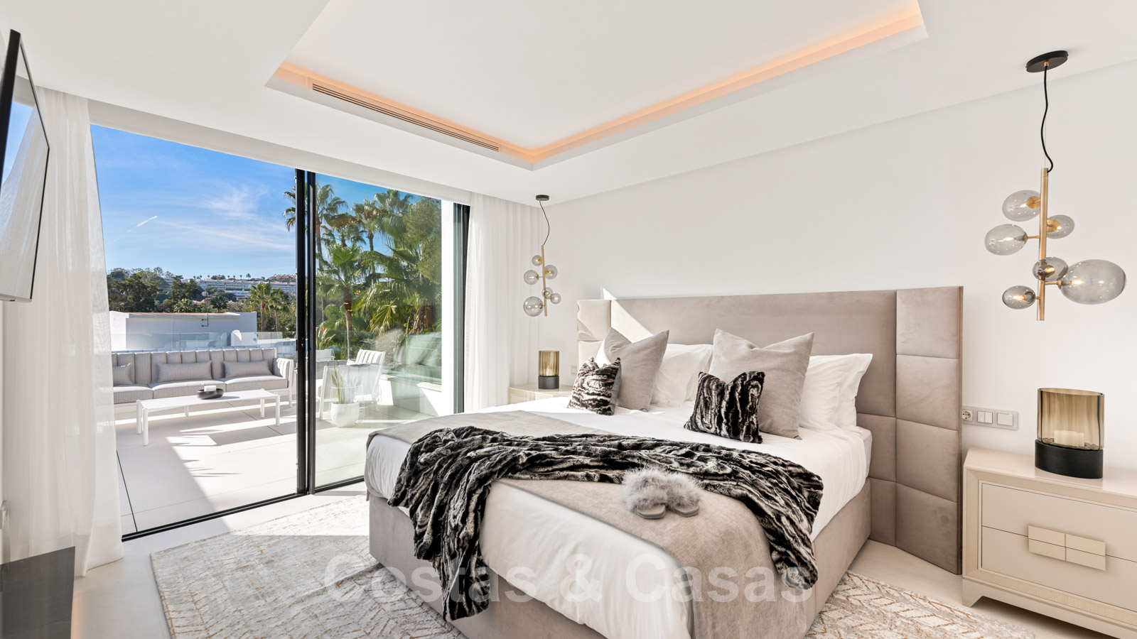 La vie à l'intérieur et à l'extérieur est mise en valeur. Il y a de grandes terrasses ouvertes et couvertes, y compris un coin chill-out, une cuisine extérieure et une salle à manger. Un coin salon supplémentaire est attenant à la magnifique piscine à débordement.