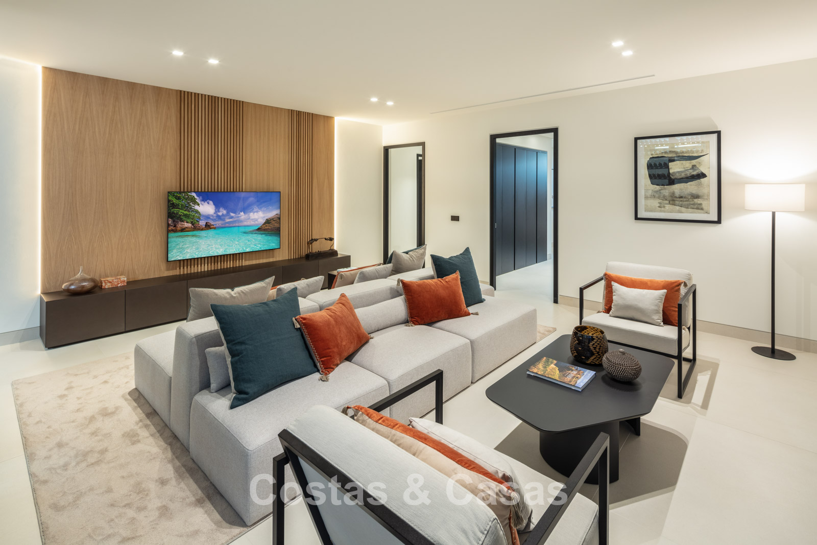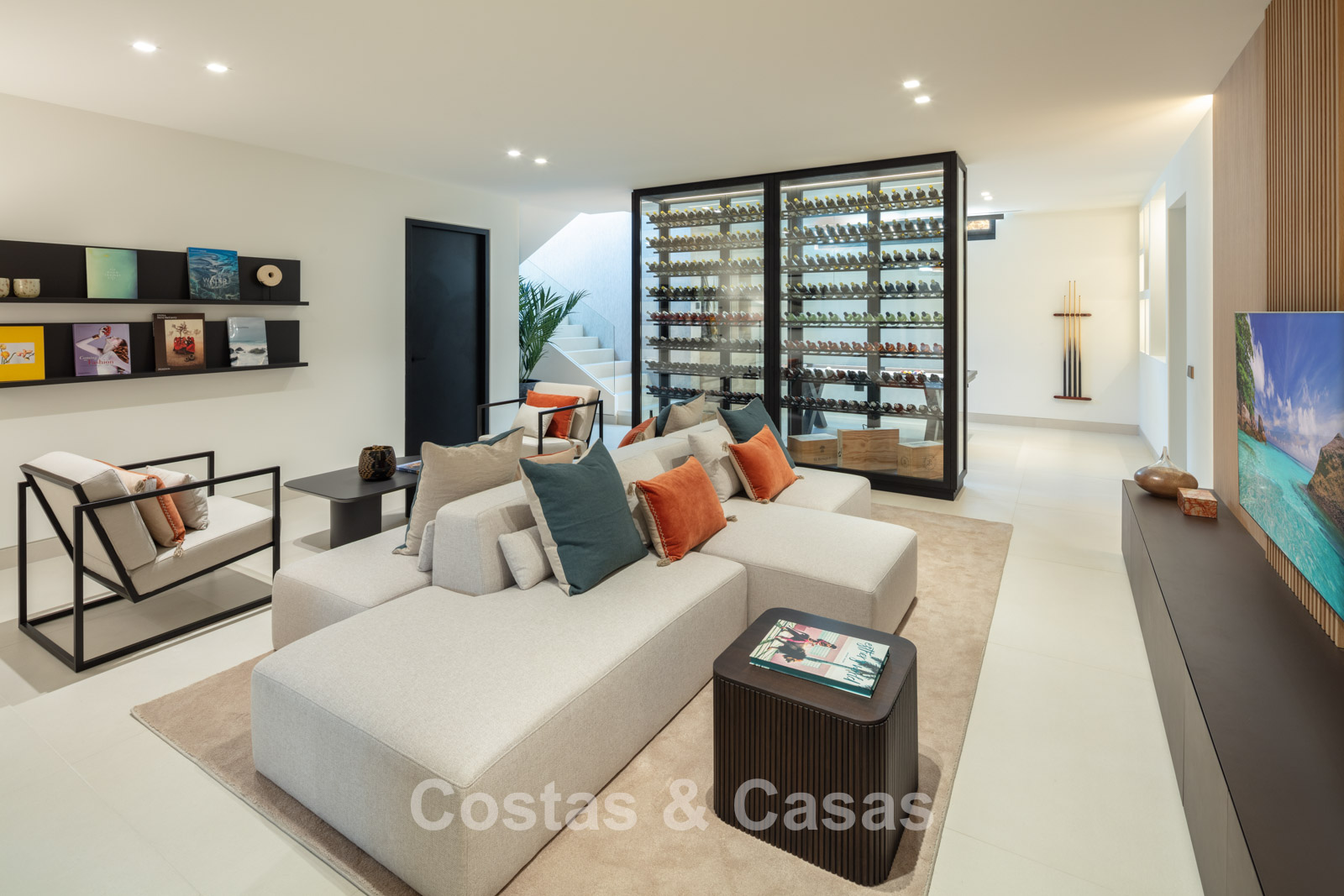 Villa de luxe individuelle au look ultra-moderne. Utilisant des matériaux de haute qualité et équipé des dernières technologies. De grandes sections vitrées dans toute la villa offrent beaucoup de lumière et une ventilation supplémentaire. Plan ouvert. Espace de vie aéré et lumineux avec un salon TV et un coin repas. Le salon TV dispose d'un plafond à double hauteur, ce qui crée une sensation d'espace et une apparence luxueuse. La cuisine est parfaitement reliée au salon et est équipée de nombreux espaces de rangement et d'un îlot de cuisson central avec sièges. 5 chambres, 6 salles de bain. La suite principale dispose d'un dressing et d'une salle de bain attenante avec des finitions de haute qualité. A l’étage inférieur se trouve un espace de divertissement avec un billard, un sauna et une salle de fitness/salle de yoga. Cave à vin. 4 places de parking.
