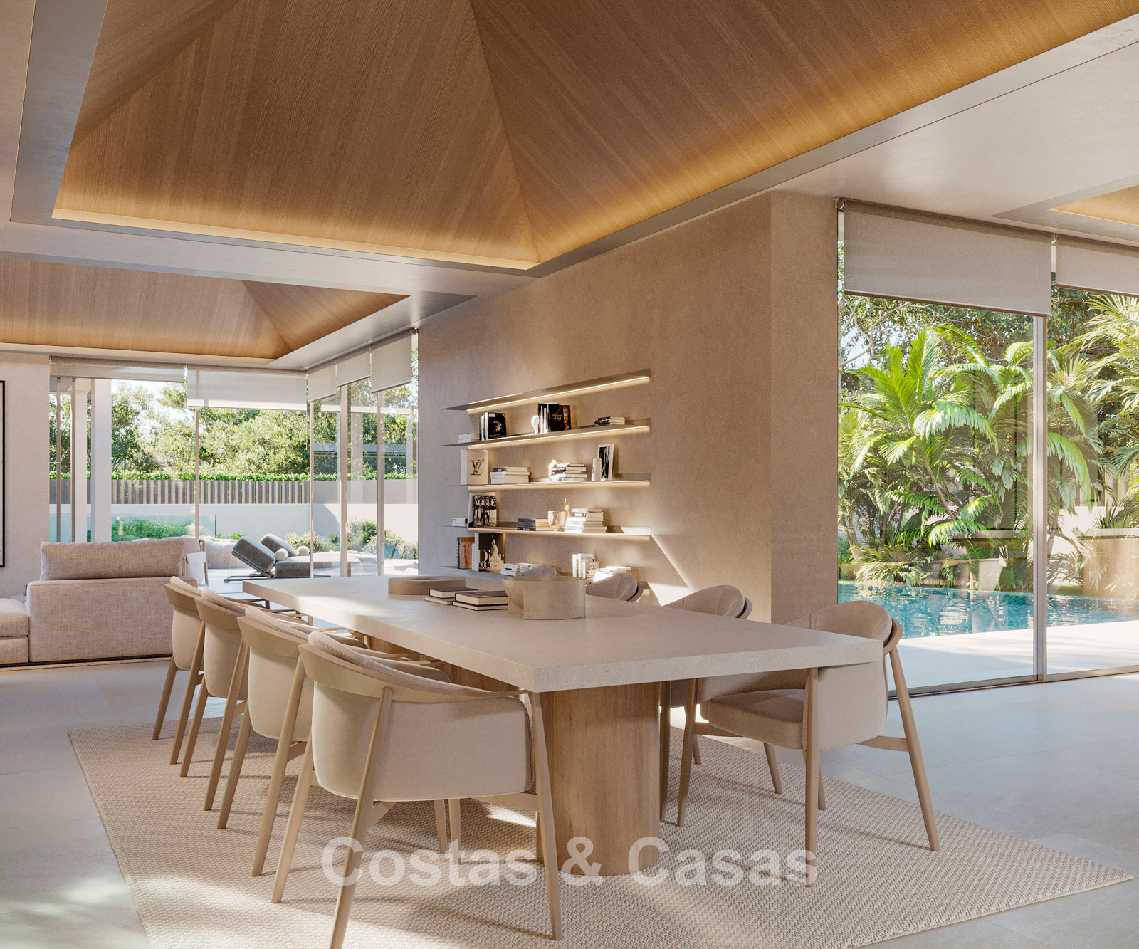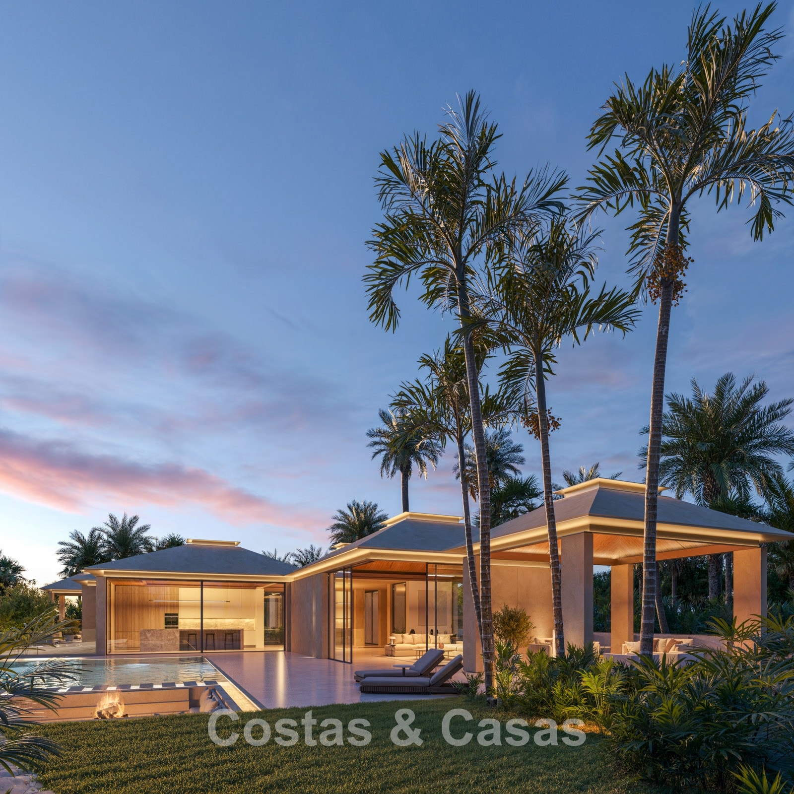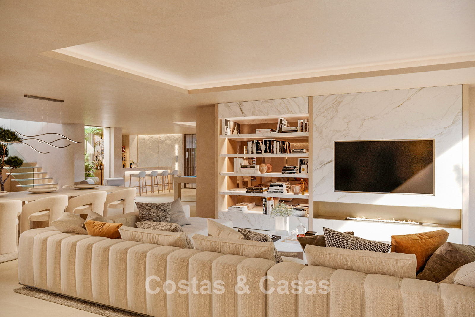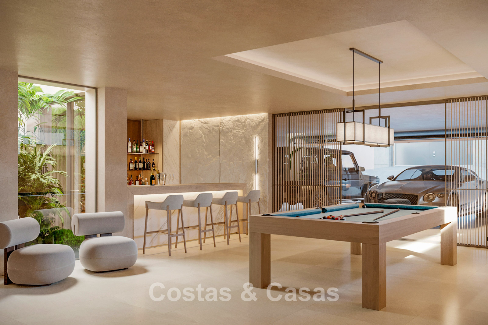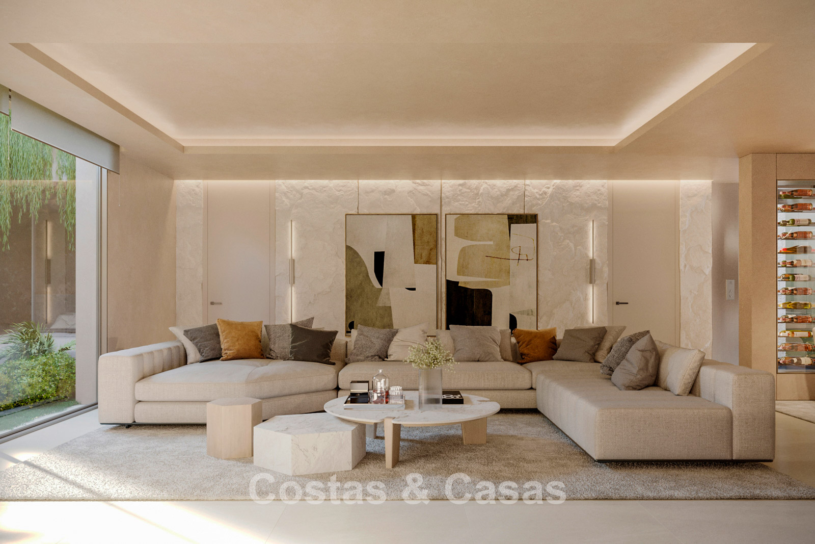 Cette villa présente une architecture moderne de style pavillon, caractérisée par des lignes épurées, de grandes baies vitrées et des volumes distincts entourant la terrasse. Entièrement de plain-pied, elle offre une transition harmonieuse entre l'intérieur et l'extérieur. Conçue avec un savoir-faire exceptionnel, des matériaux durables et un concept d'aménagement intérieur sur mesure. L'intérieur se pare d'une palette de couleurs chaudes et naturelles, dans les tons sable et beige, rehaussée de bois clair et de touches subtiles. Un espace de vie lumineux et ouvert. Une cuisine design minimaliste équipée d'appareils haut de gamme et d'un îlot central avec des places assises. 5 chambres, 6 salles de bains et 2 toilettes invités. L'espace central de l’étage inférieur réunit un salon moderne, une salle de jeux et un bar luxueux, créant un lieu idéal pour la détente et les moments de convivialité. Un espace bien-être exclusif avec une salle de fitness ultramoderne, une salle de massage privée et un sauna attenant. Un espace bureau. Buanderie. Local technique. Garage intérieur pour 2 voitures. Parking supplémentaire pour 2 voitures.