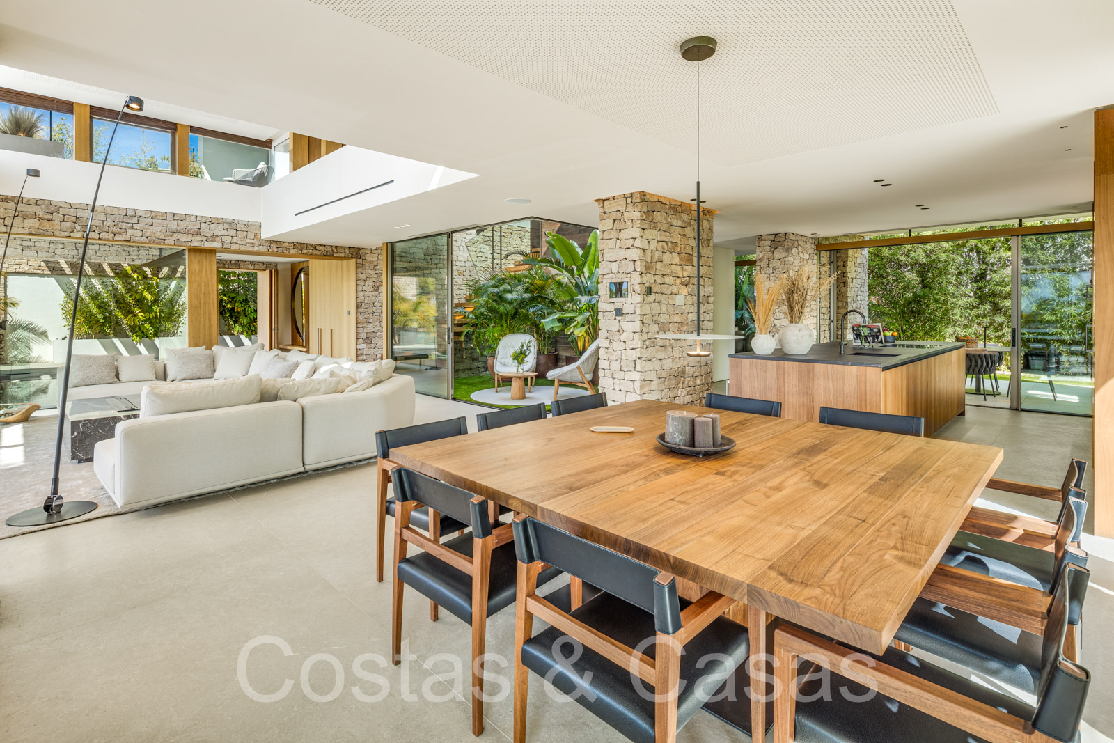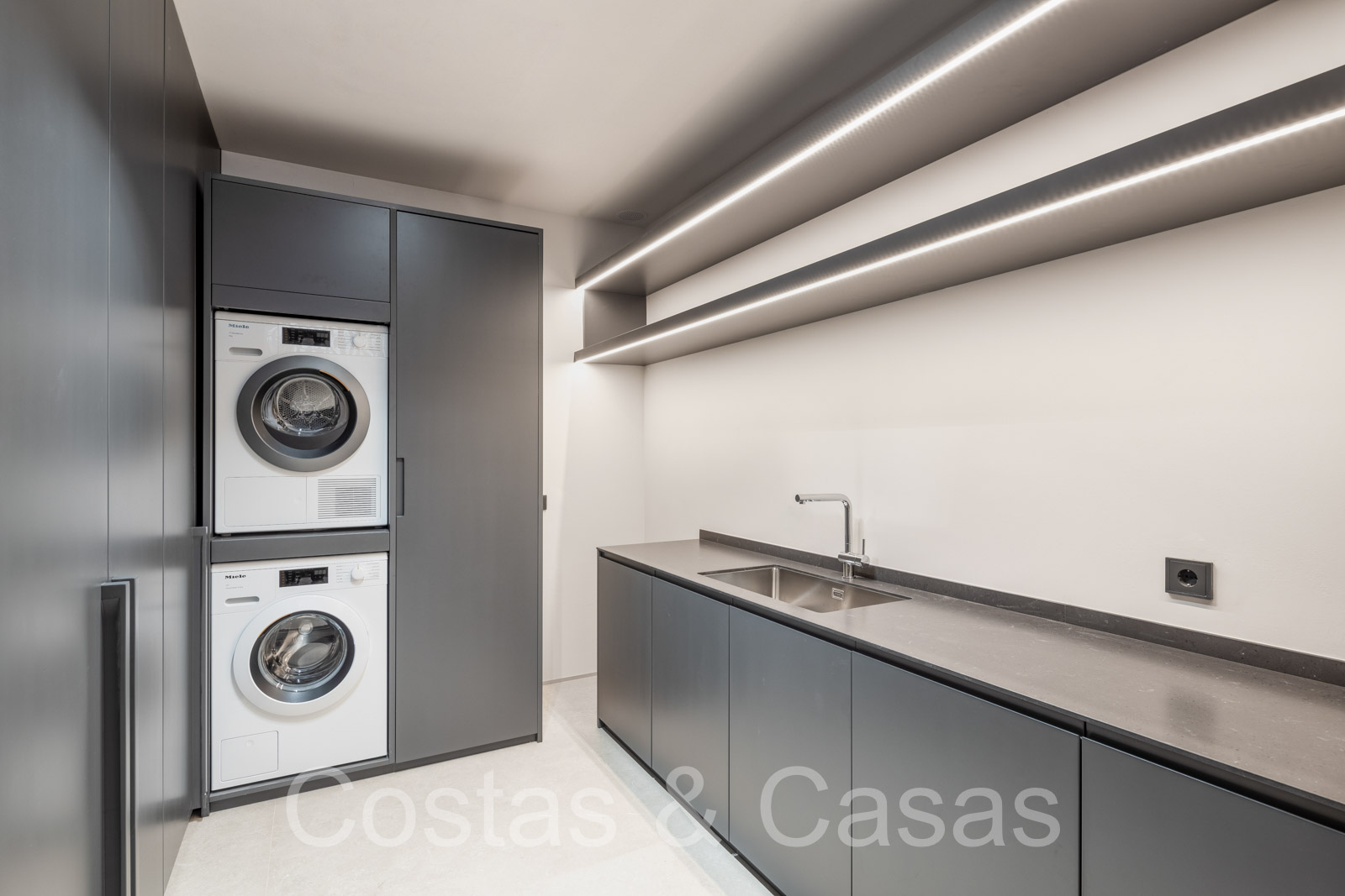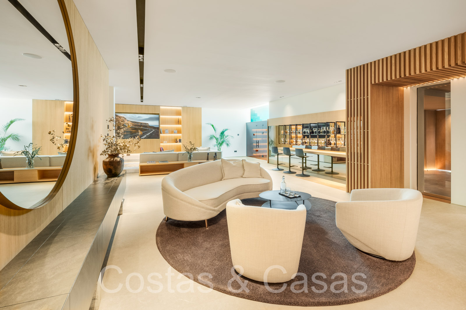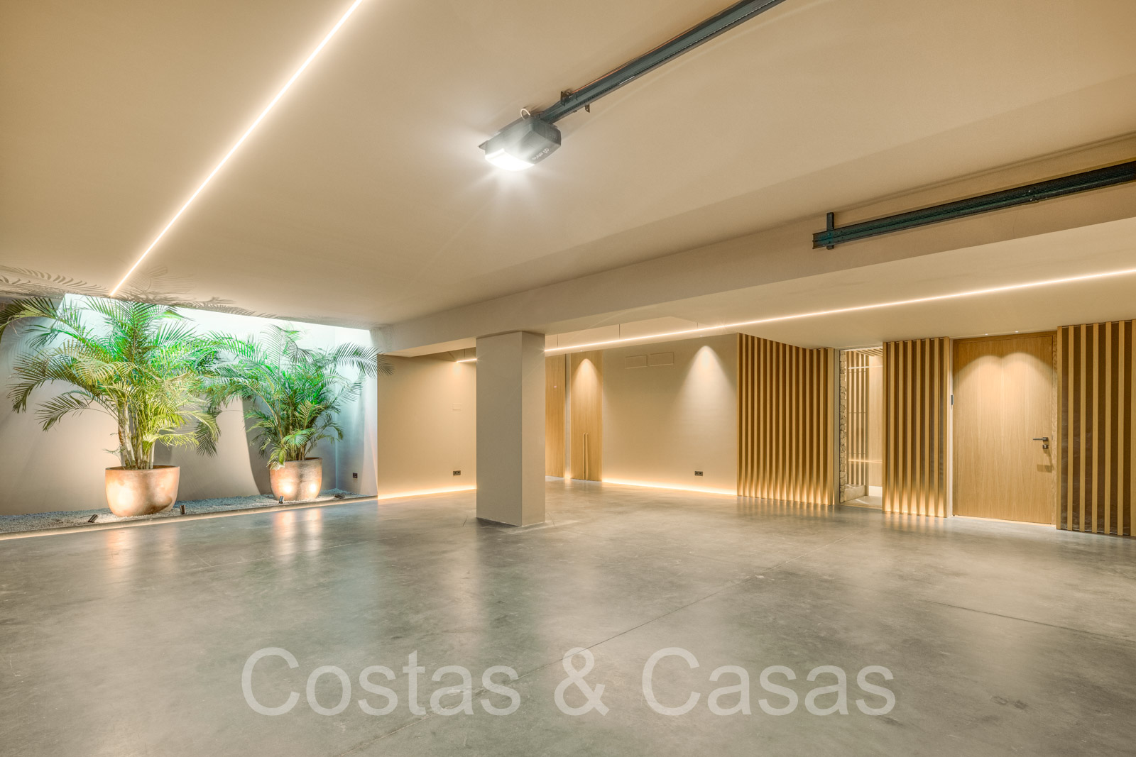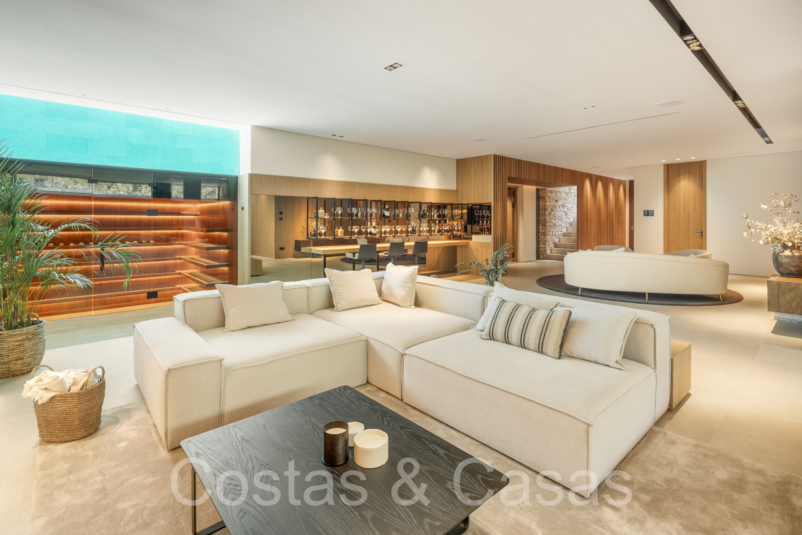 Villa individuelle au design ultramoderne. Utilisant les technologies les plus avancées et construit avec une attention aux détails. La villa est accessible via une allée privée qui mène à un garage privé intérieur. Un design intérieur ouvert et minimaliste, avec des éléments de construction naturels, des espaces à double hauteur et des patios verts qui donnent toujours un aspect créatif. L'espace de vie présente de magnifiques murs en pierre Travertino Tajal, qui imitent l'extérieur de la villa. Le salon dispose d'un plafond à double hauteur enrichi de structures de fenêtres, qui offrent une ventilation et une lumière supplémentaires. Les portes coulissantes du sol au plafond avec profilés encastrés assurent une connexion fluide entre l'intérieur et l'extérieur et offrent également des pièces très lumineuses. Grande cuisine ouverte avec appareils Gaggenau, accents naturels et beaucoup d'espace de rangement. 5 chambres, 5 salles de bains et 2 toilettes séparées. L’étage inférieur est dédié au divertissement et propose un bar personnalisé, une bodega à vin, un espace chillout et TV. Un aspect attrayant de cet espace est que vous avez une vue sur la piscine depuis ce niveau. Buanderie équipée de machines Miele et de nombreux rangements. Garage intérieur pour 4 voitures.