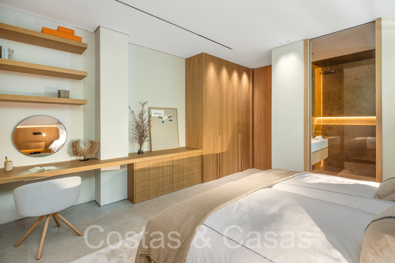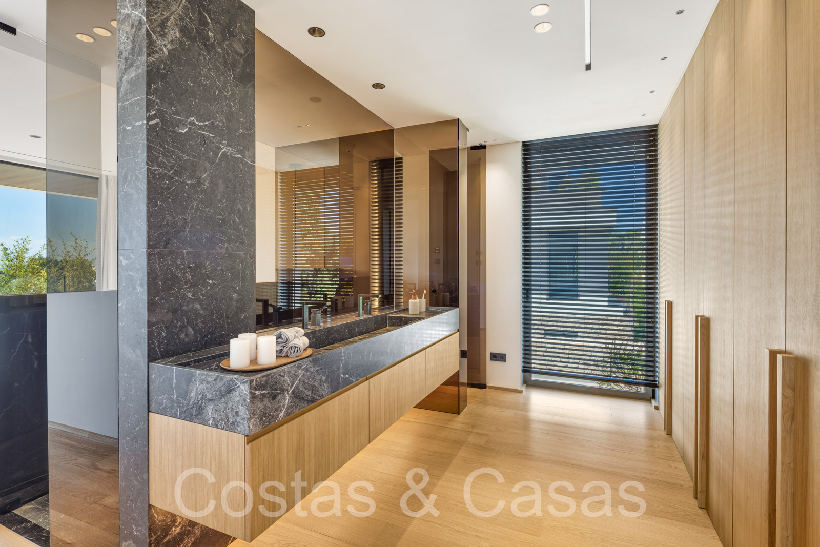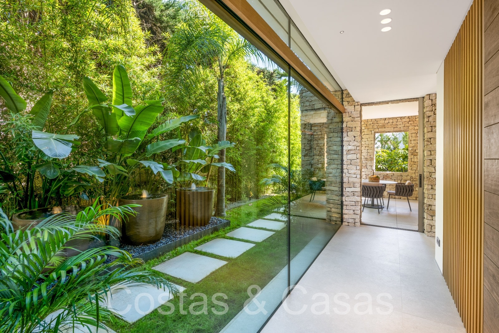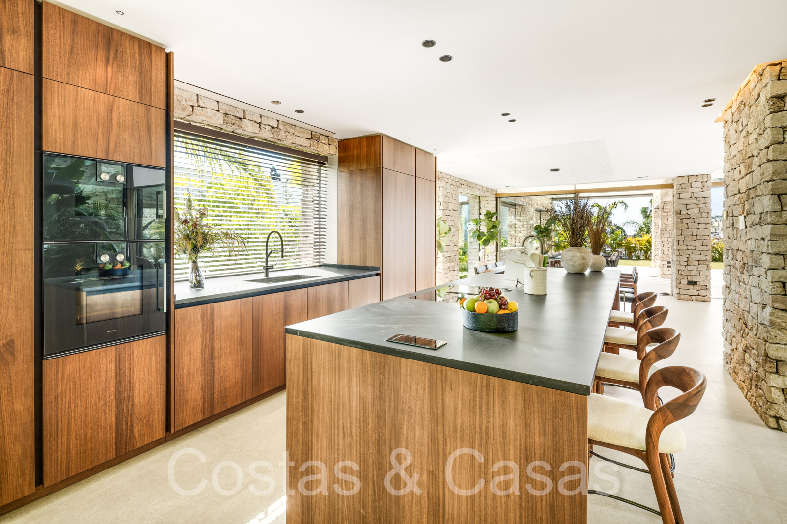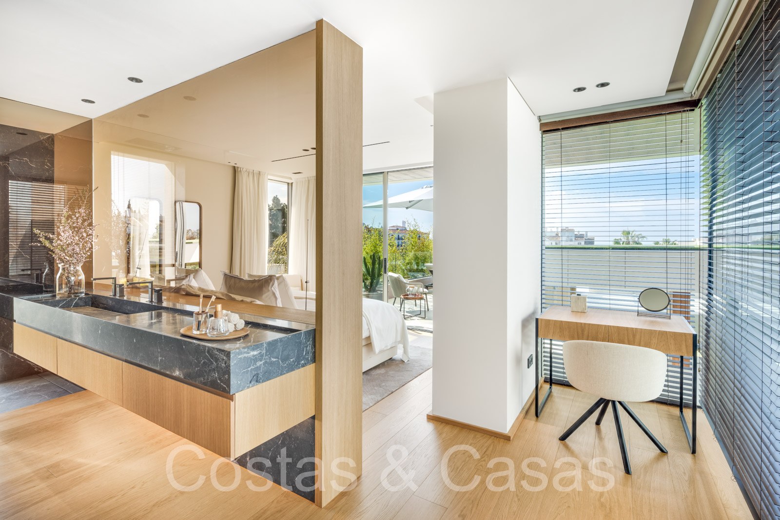 Villa individuelle au design ultramoderne. Utilisant les technologies les plus avancées et construit avec une attention aux détails. La villa est accessible via une allée privée qui mène à un garage privé intérieur. Un design intérieur ouvert et minimaliste, avec des éléments de construction naturels, des espaces à double hauteur et des patios verts qui donnent toujours un aspect créatif. L'espace de vie présente de magnifiques murs en pierre Travertino Tajal, qui imitent l'extérieur de la villa. Le salon dispose d'un plafond à double hauteur enrichi de structures de fenêtres, qui offrent une ventilation et une lumière supplémentaires. Les portes coulissantes du sol au plafond avec profilés encastrés assurent une connexion fluide entre l'intérieur et l'extérieur et offrent également des pièces très lumineuses. Grande cuisine ouverte avec appareils Gaggenau, accents naturels et beaucoup d'espace de rangement. 5 chambres, 5 salles de bains et 2 toilettes séparées. L’étage inférieur est dédié au divertissement et propose un bar personnalisé, une bodega à vin, un espace chillout et TV. Un aspect attrayant de cet espace est que vous avez une vue sur la piscine depuis ce niveau. Buanderie équipée de machines Miele et de nombreux rangements. Garage intérieur pour 4 voitures.