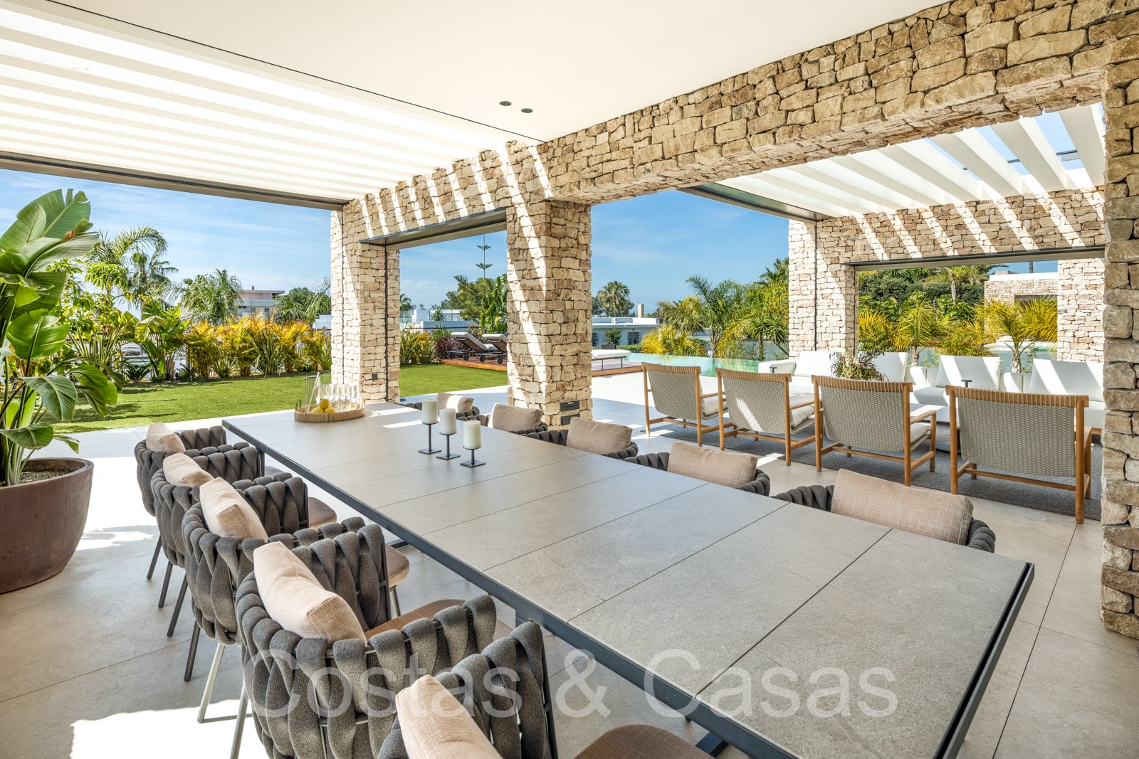 Situé sur un terrain entièrement clôturé en position surélevée. Jardin magnifiquement aménagé avec beaucoup de verdure tropicale qui offre l'intimité nécessaire. Grande piscine avec jacuzzi intégré, qui s'étend en toute transparence du jardin à l'intérieur. De spacieuses terrasses ensoleillées et couvertes offrent plusieurs options de détente et des espaces repas en plein air. Un solarium offre une vue à 360° sur la montagne de La Concha et la mer Méditerranée. Exposition sud.