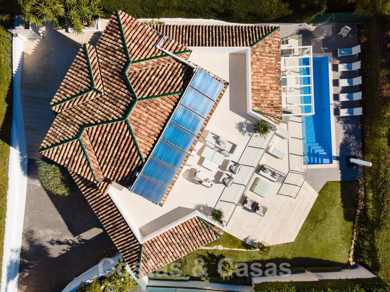 Située au calme dans une zone de villas résidentielles dans l'un des quartiers les plus recherchés de Marbella, Nueva Andalucia.