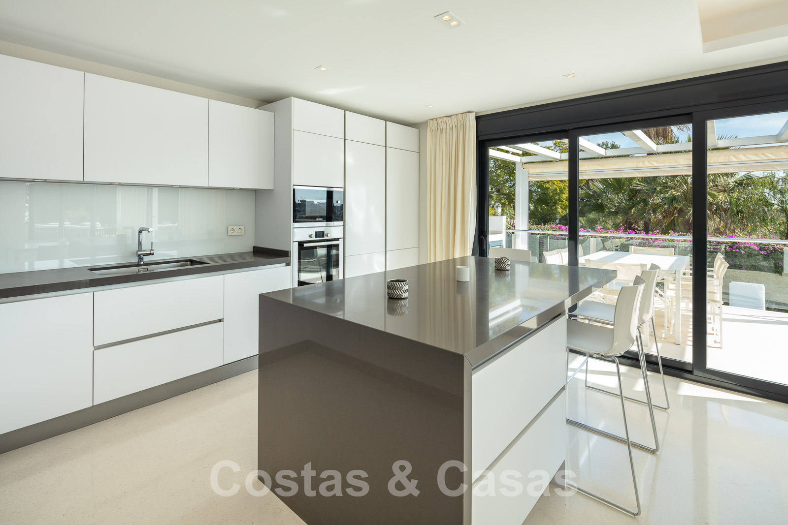 Double vitrage. Balustrades en verre. Climatisation Daikin pour le refroidissement et le chauffage. Panneaux solaires. Système de musique intégré. Armoires encastrées. Système d'alarme. Système d'interphone. Eclairage extérieur.