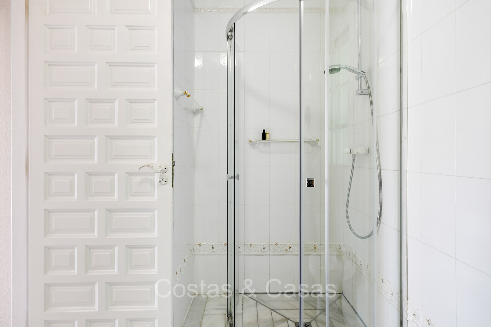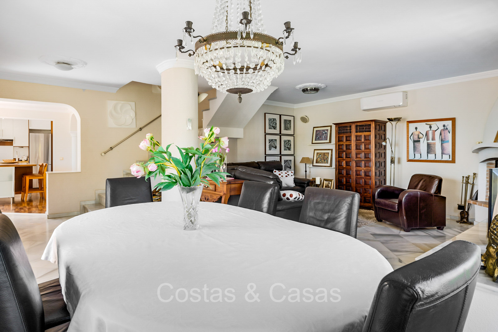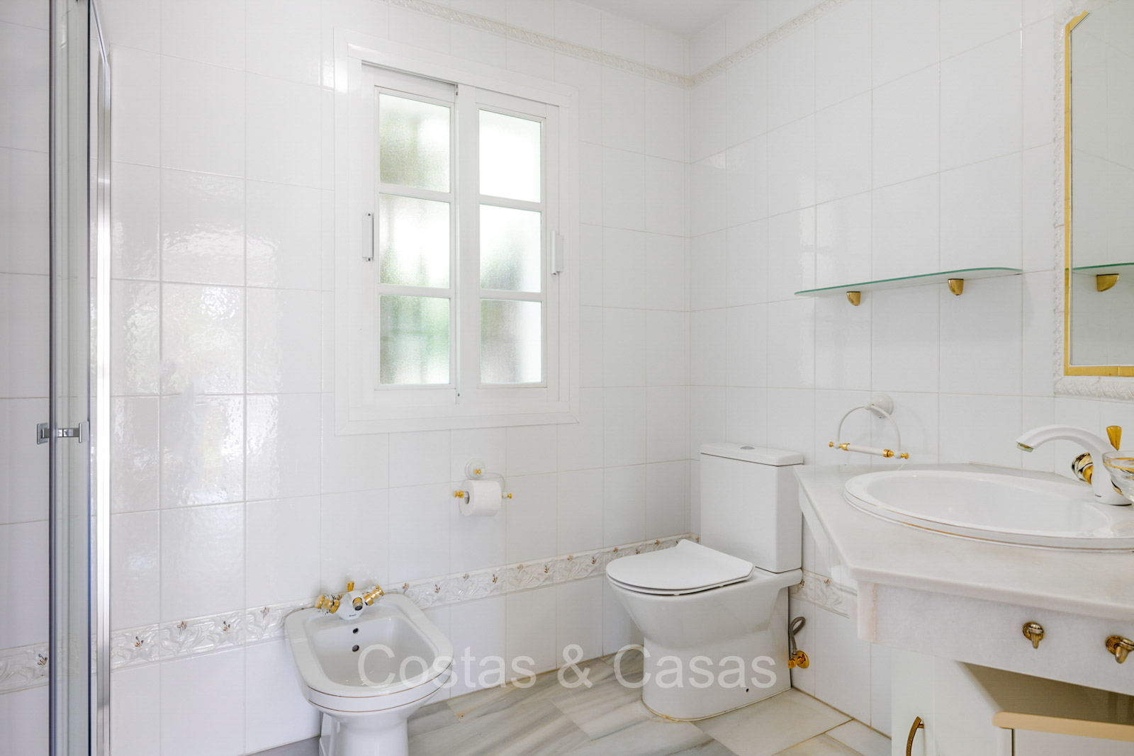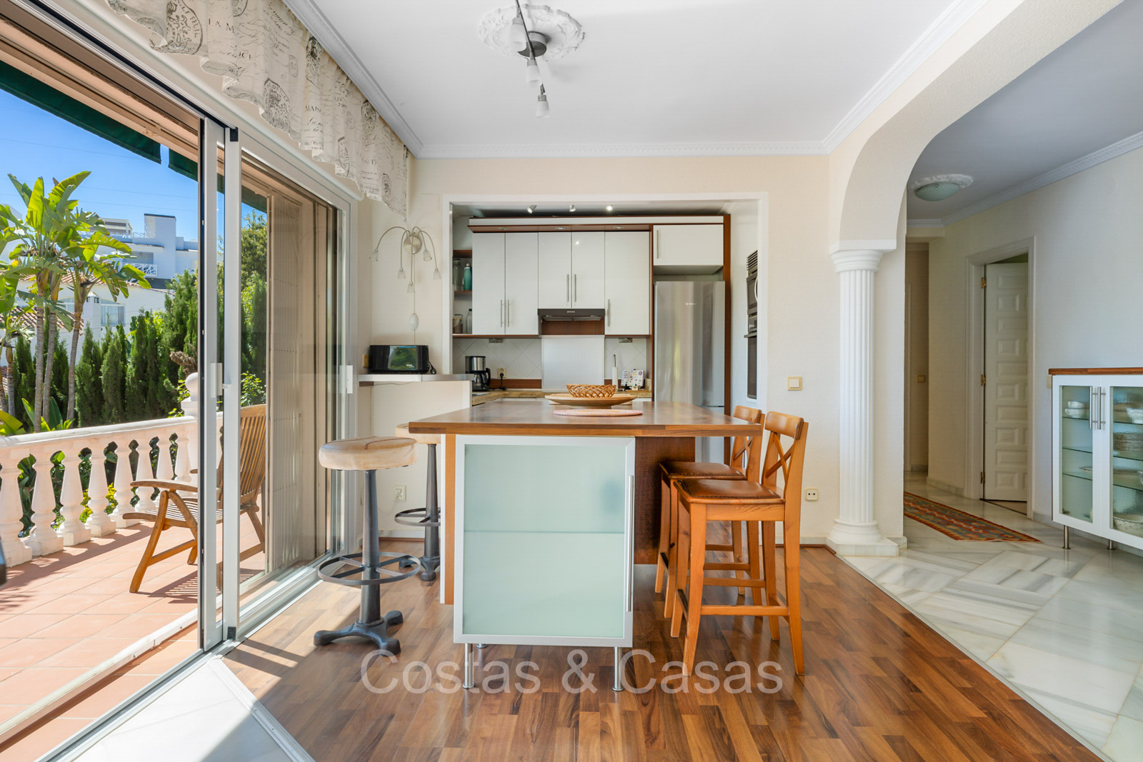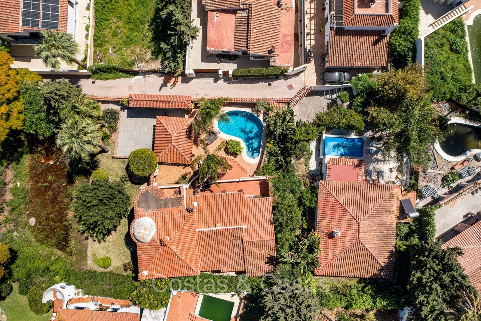 Villa individuelle de style architectural andalou traditionnel. De hautes fenêtres coulissantes offrent un intérieur aéré et très lumineux. Séjour spacieux avec un salon TV avec cheminée. Cuisine ouverte entièrement équipée avec un îlot. Coin repas intégré. 5 chambres, 4 salles de bains et une toilette séparée. La suite principale dispose d'un jacuzzi et d'un accès à une terrasse privée. Sols en marbre. L’étage inférieur en rez-de-jardin abrite une chambre d'amis avec salle de bains, sauna et buanderie. Débarras. Garage intérieur pour 1 voiture. Parking supplémentaire pour 2 voitures.