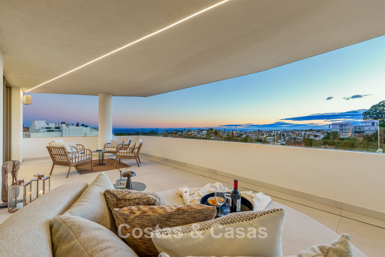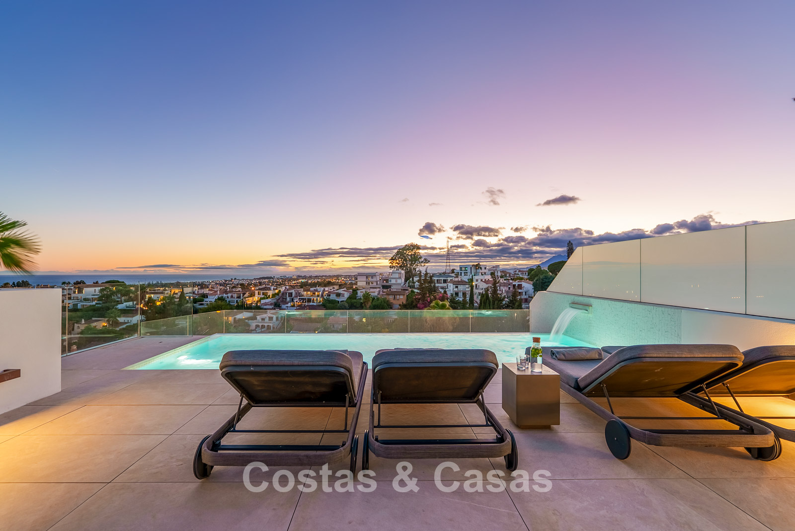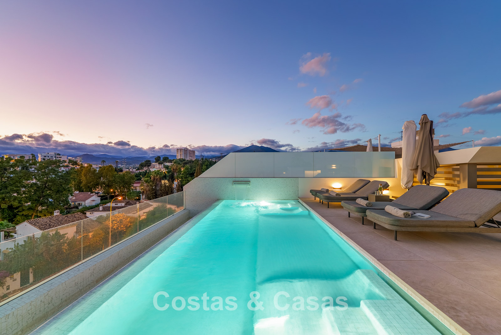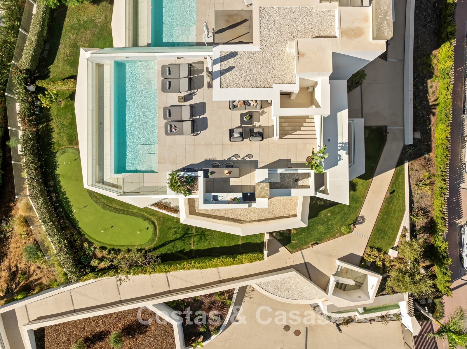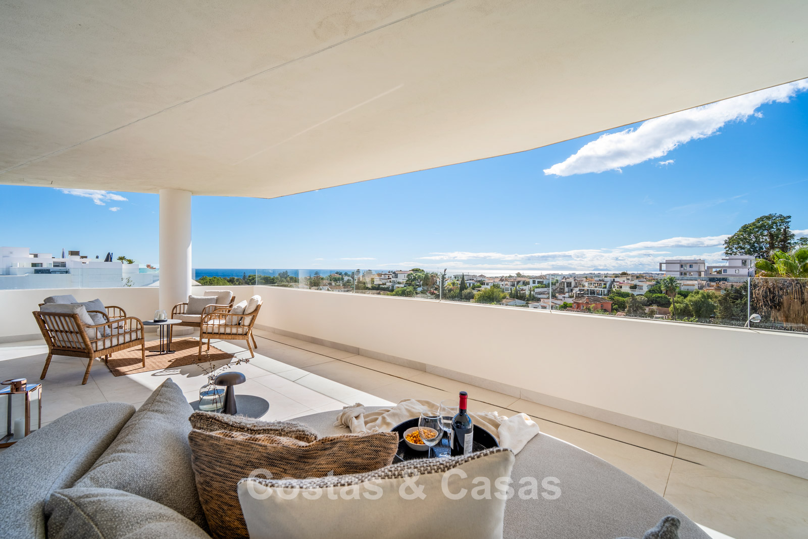 Jardin privé entièrement clos avec son propre putting green. Plusieurs terrasses spacieuses optimisent l'ensoleillement, l'intimité et les vues. La vaste terrasse sur le toit est conçue pour un confort et une détente absolue. Elle comprend une élégante cuisine d'été, une piscine et divers espaces de détente offrant une vue panoramique. Orientation sud-ouest. Vue sur le sommet du mont La Concha, la mer Méditerranée et le détroit de Gibraltar.