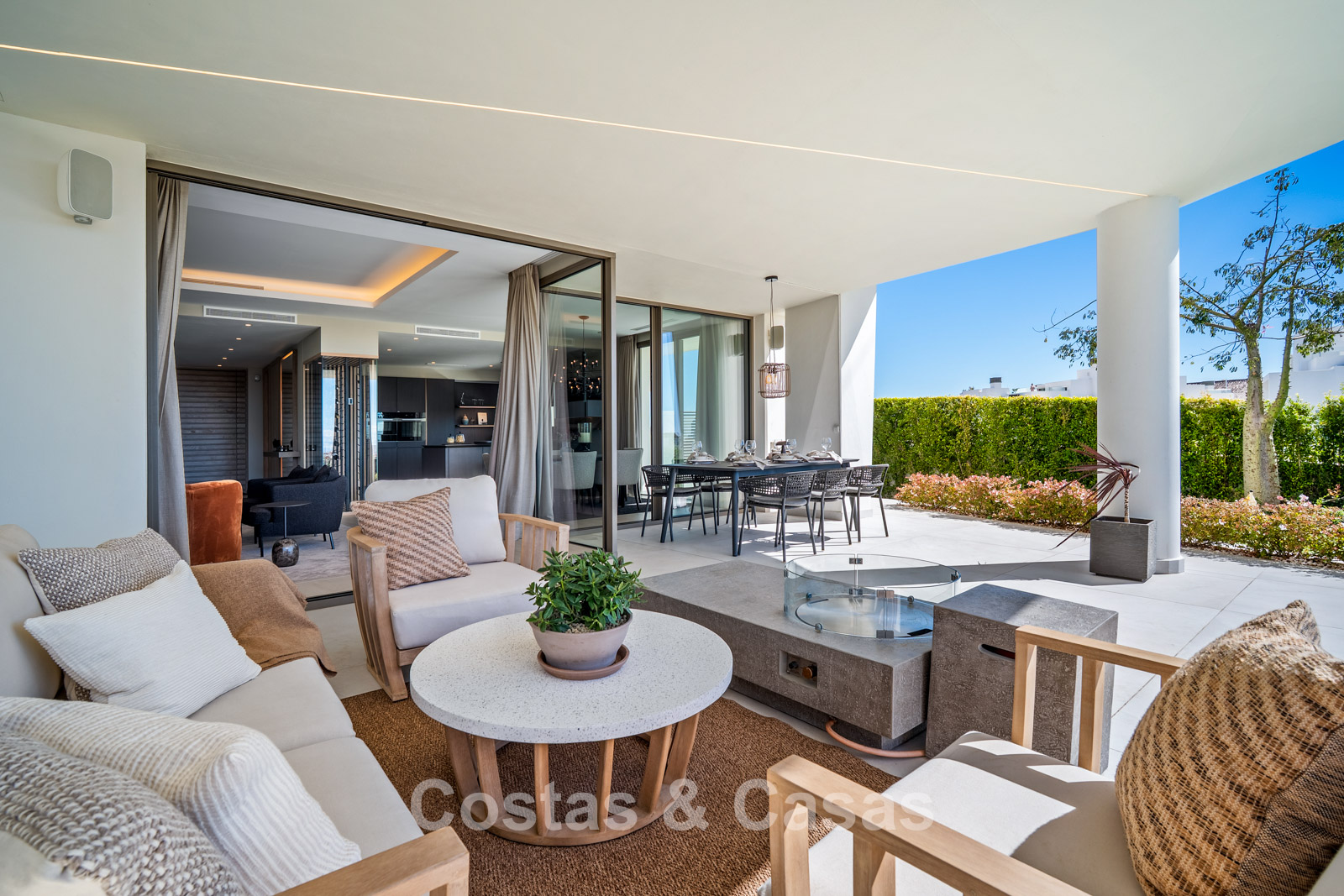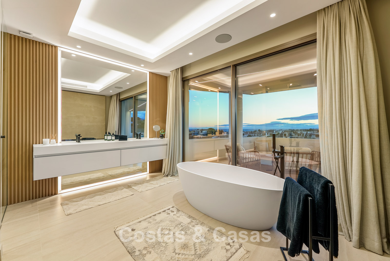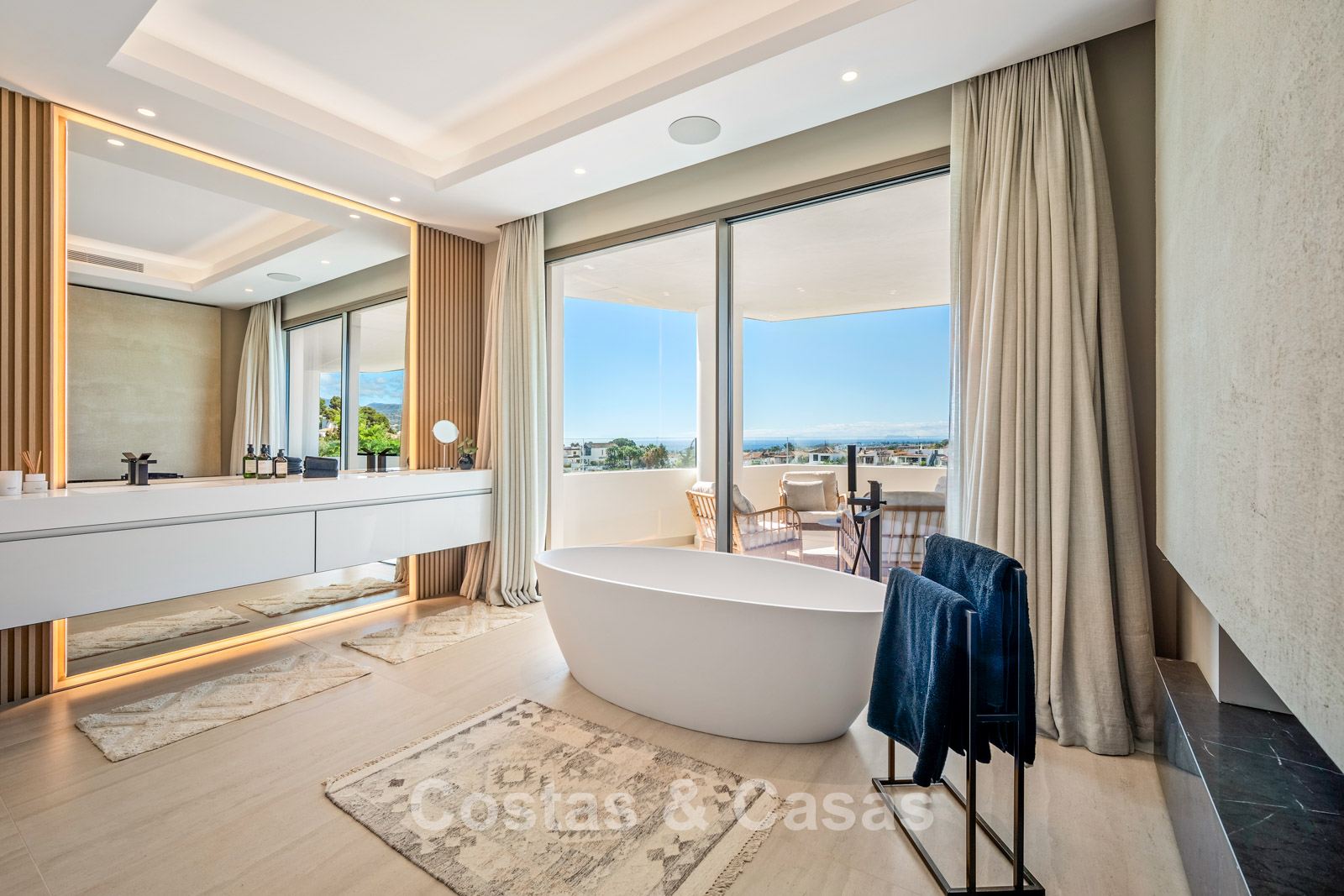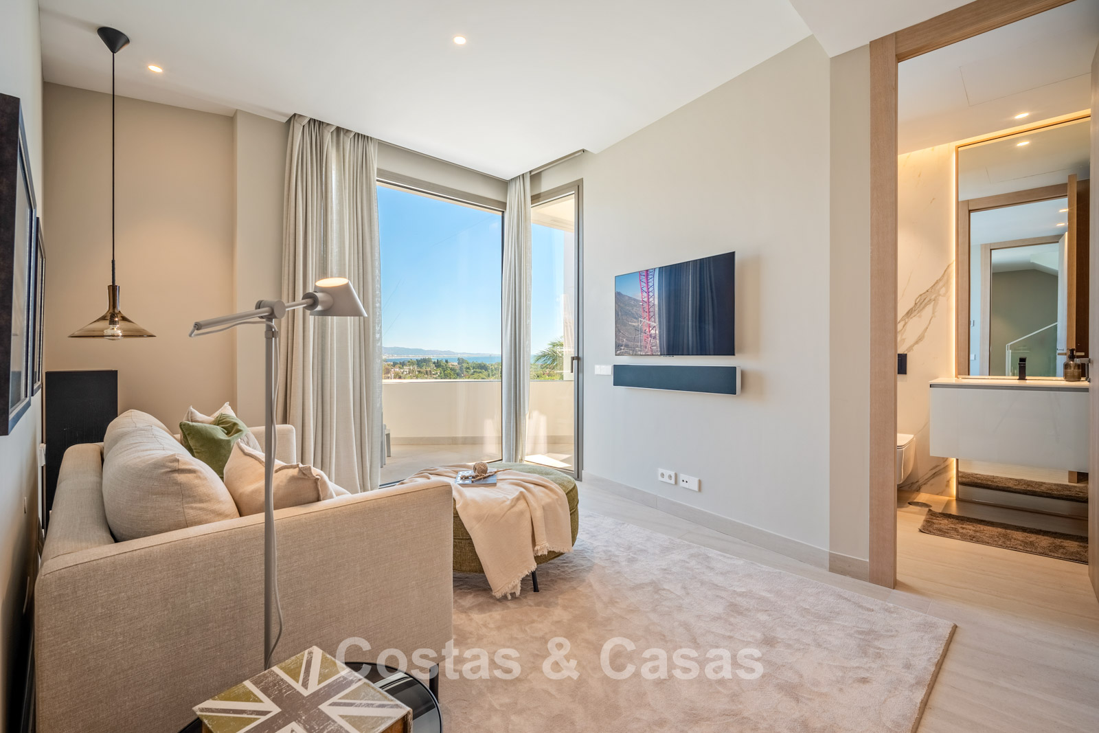 Jardin privé entièrement clos avec son propre putting green. Plusieurs terrasses spacieuses optimisent l'ensoleillement, l'intimité et les vues. La vaste terrasse sur le toit est conçue pour un confort et une détente absolue. Elle comprend une élégante cuisine d'été, une piscine et divers espaces de détente offrant une vue panoramique. Orientation sud-ouest. Vue sur le sommet du mont La Concha, la mer Méditerranée et le détroit de Gibraltar.