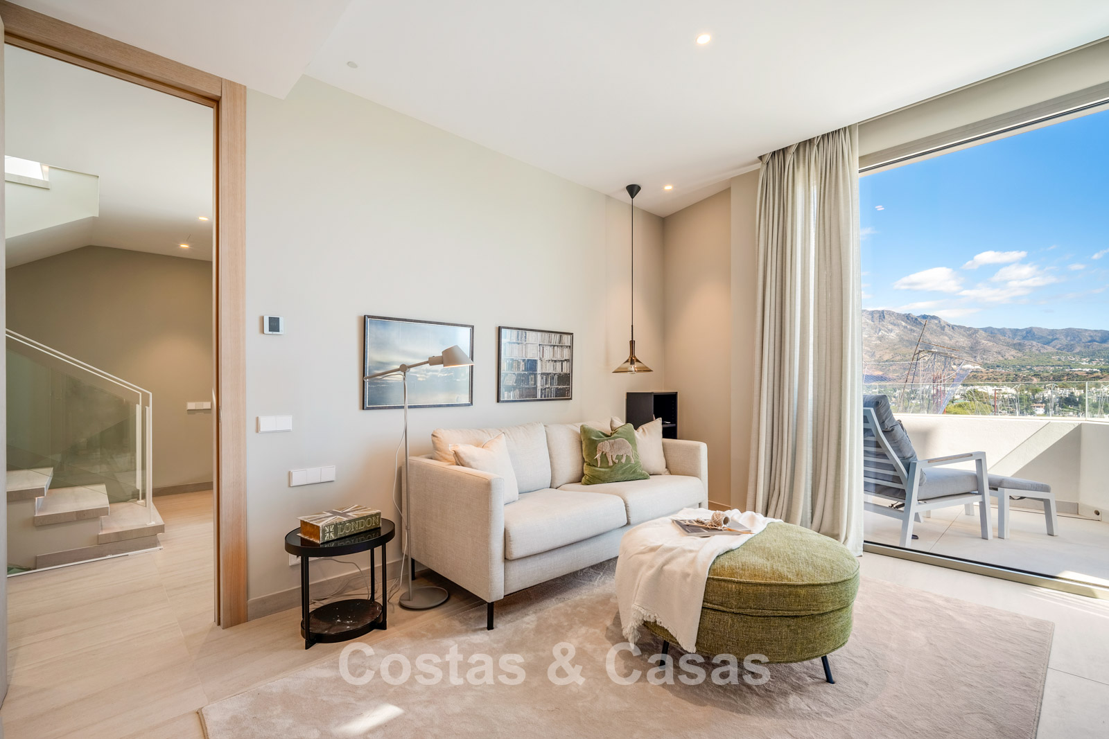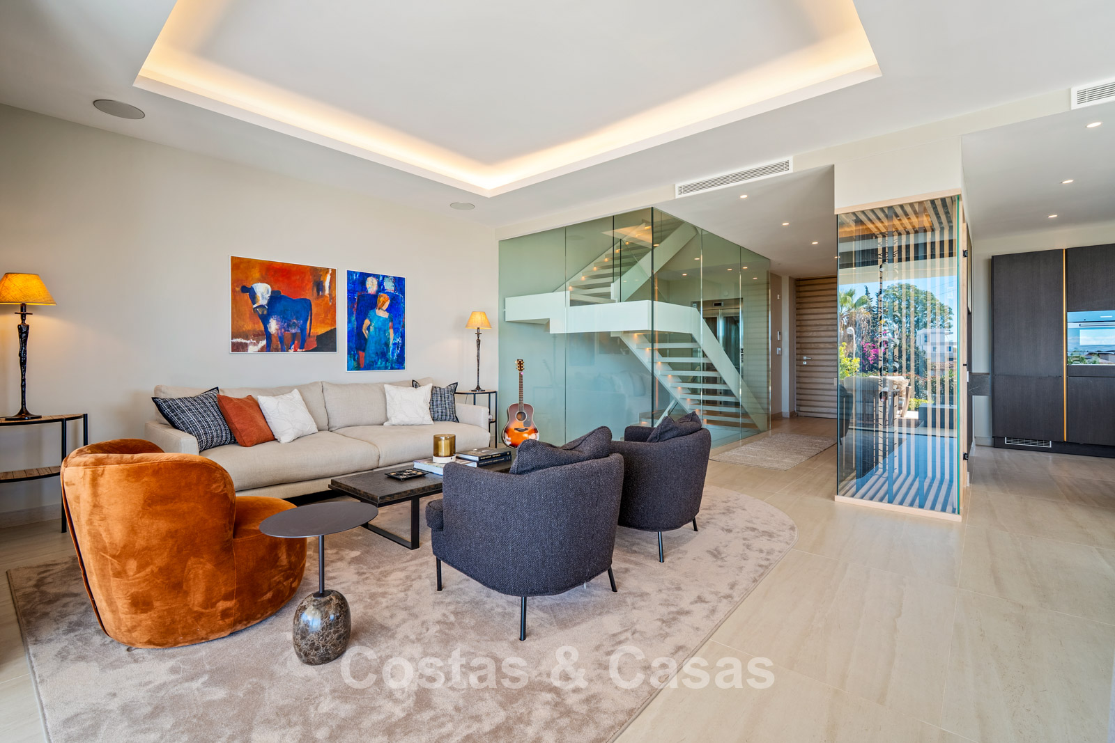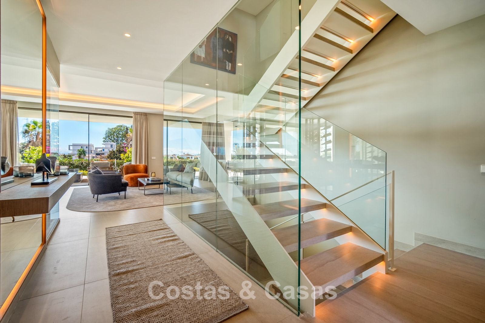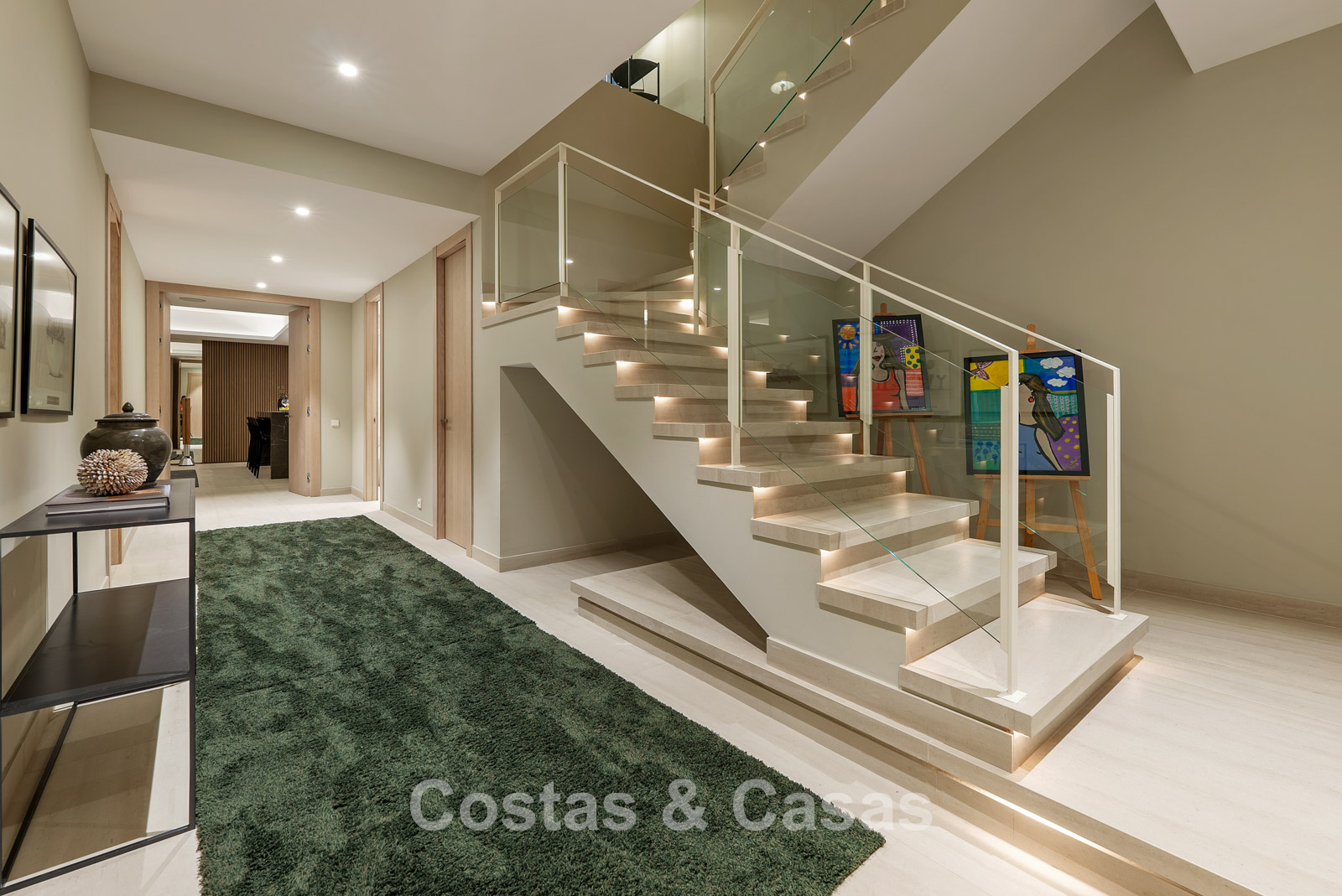 Autres caractéristiques: Ascenseur à tous les étages. Climatisation réversible. Système audio et TV Bang & Olufsen intégré. Chauffage au sol. Cheminée moderne. Armoires intégrées. Balustrades en verre. Éclairage LED intérieur et extérieur.