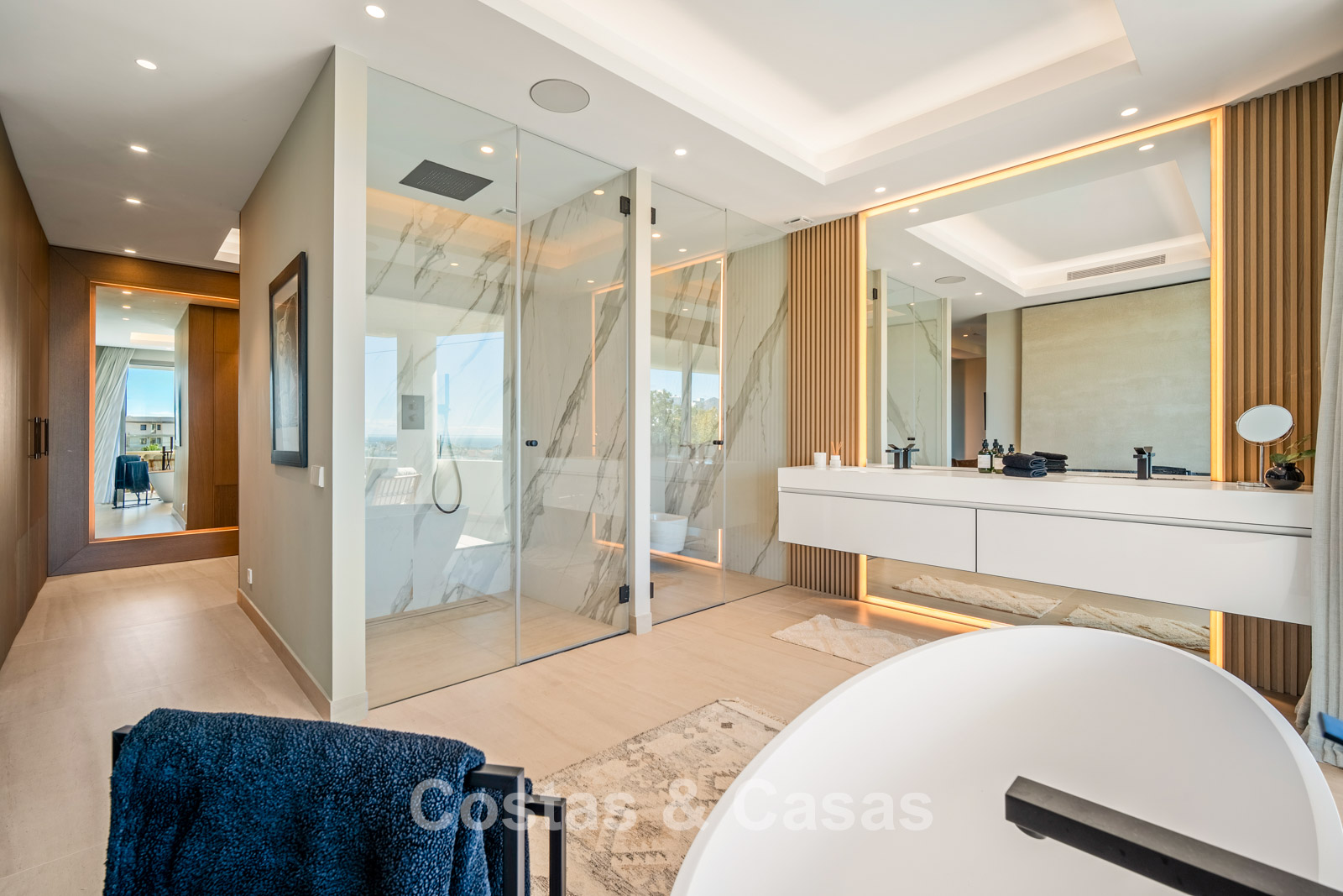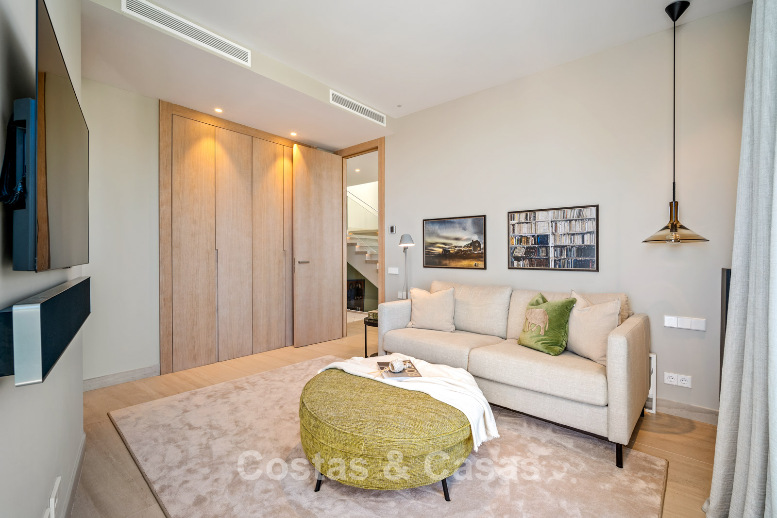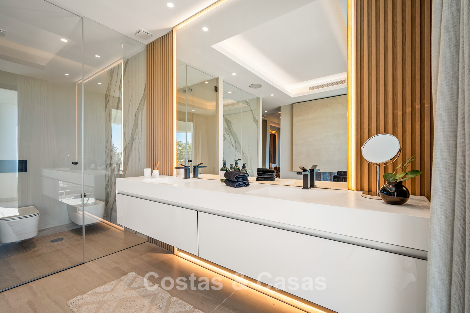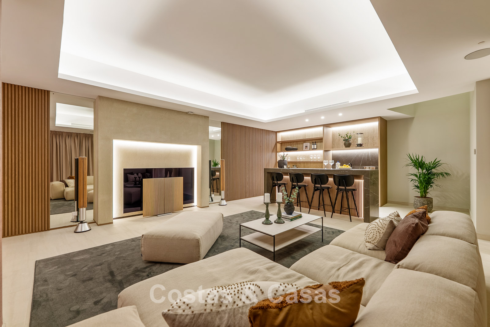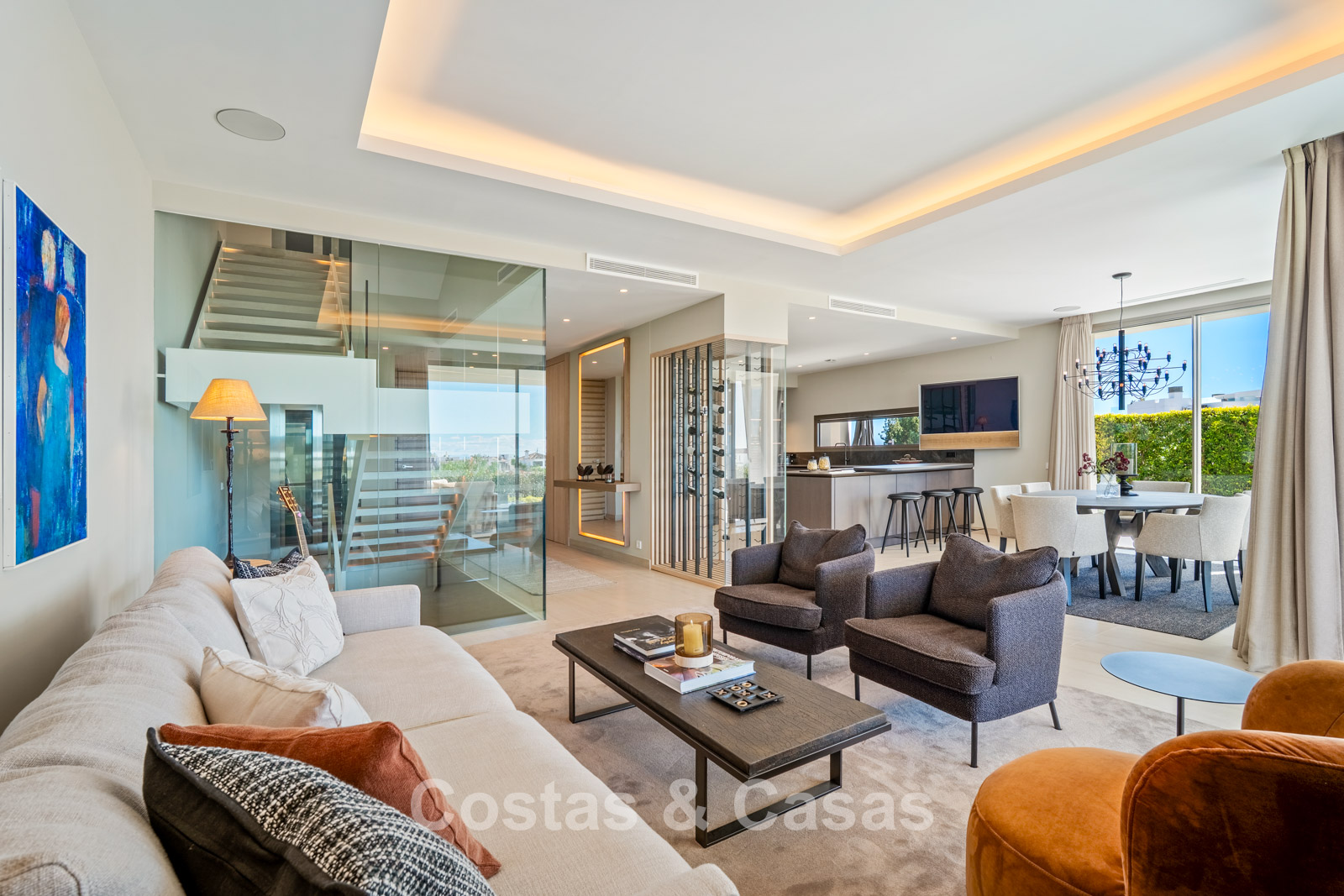 Autres caractéristiques: Ascenseur à tous les étages. Climatisation réversible. Système audio et TV Bang & Olufsen intégré. Chauffage au sol. Cheminée moderne. Armoires intégrées. Balustrades en verre. Éclairage LED intérieur et extérieur.