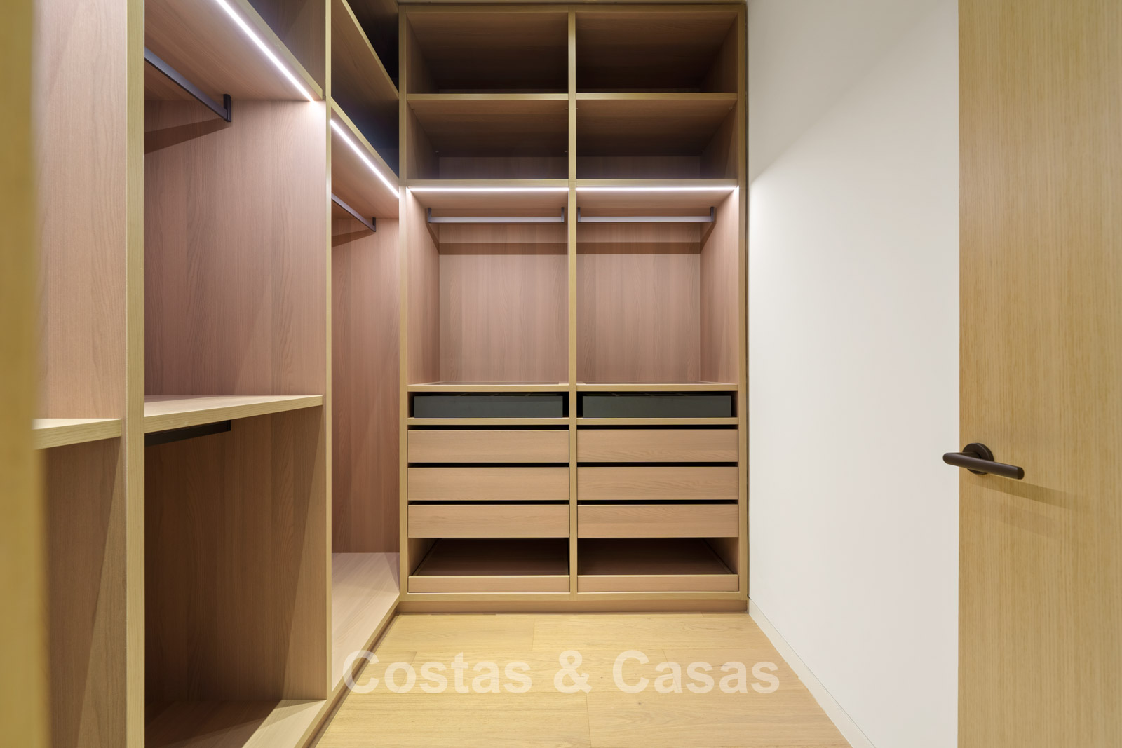 Nouvelle villa individuelle à l'architecture ultramoderne. En utilisant les technologies les plus avancées. Un design intérieur ouvert et sophistiqué, avec des éléments de construction naturels apportant toujours un aspect créatif. L'intérieur est en parfaite harmonie avec les espaces extérieurs, grâce aux fenêtres coulissantes de grande hauteur qui peuvent être entièrement ouvertes. Carport pour 3 voitures. Entrée couverte agrémentée d'un magnifique bonsaï. 2 toilettes pour invités. Espace de vie spacieux et ouvert avec un salon TV confortable avec cheminée. De l'autre côté d'une cloison centrale, un deuxième salon, ainsi que la salle à manger, sont reliés de manière transparente à la terrasse. Cuisine chic, entièrement équipée avec des appareils de qualité et un îlot avec un bar pour le petit-déjeuner en pierre naturelle. Carrelage de couleur crème à l'intérieur et à l'extérieur. 6 chambres et 7 bains. La chambre principale est dotée d'une salle de bain avec dressing sur mesure et d'une terrasse privée, équipée d'un jacuzzi. Etage inférieur :