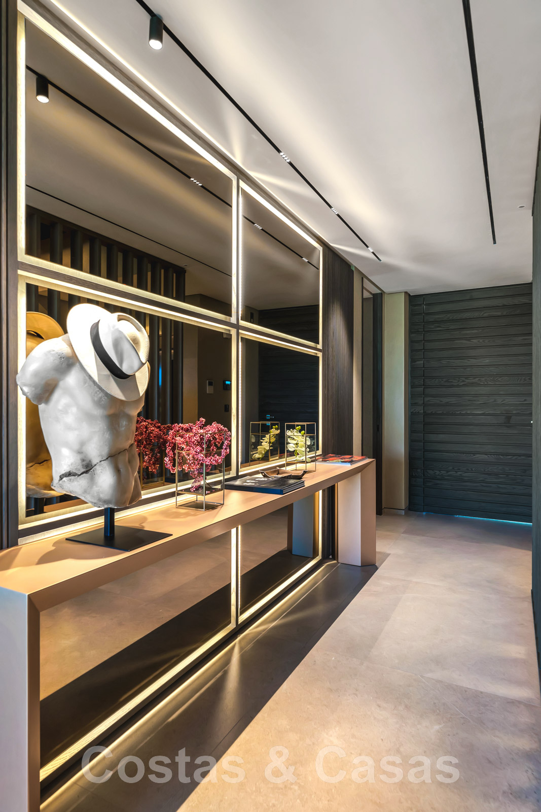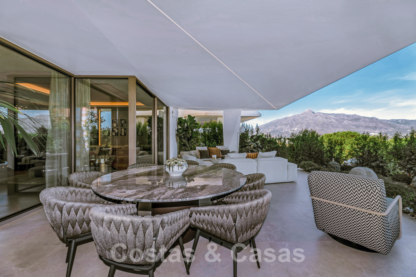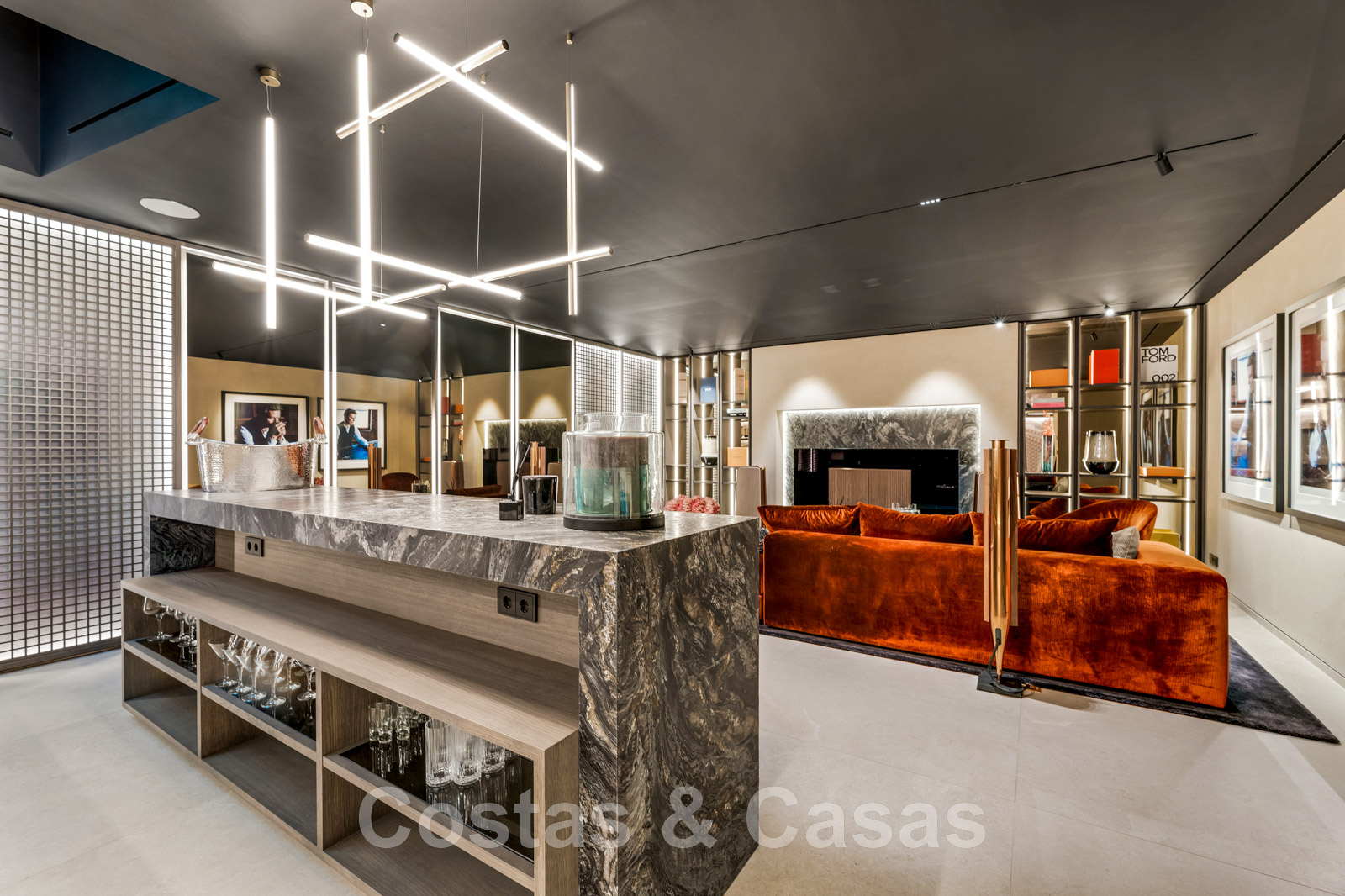 Villa moderne à vendre, prête à être emménagée, décorée par Tom Ford, avec vue panoramique sur la mer, proche de toutes les commodités, au cœur de Nueva Andalucia, Marbella