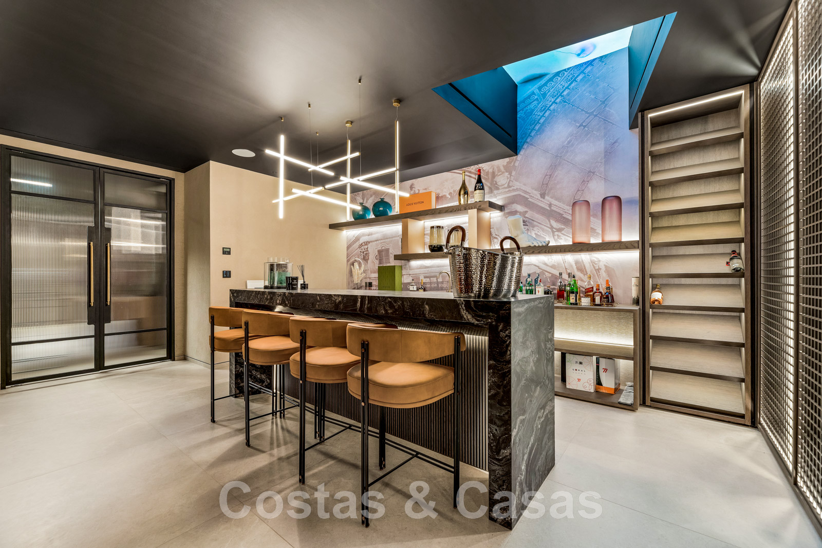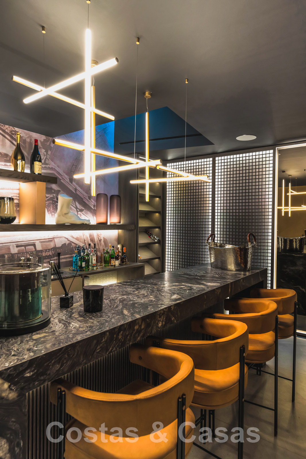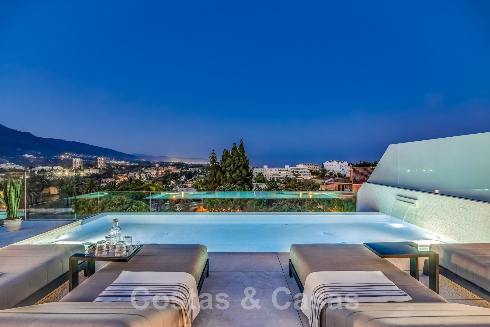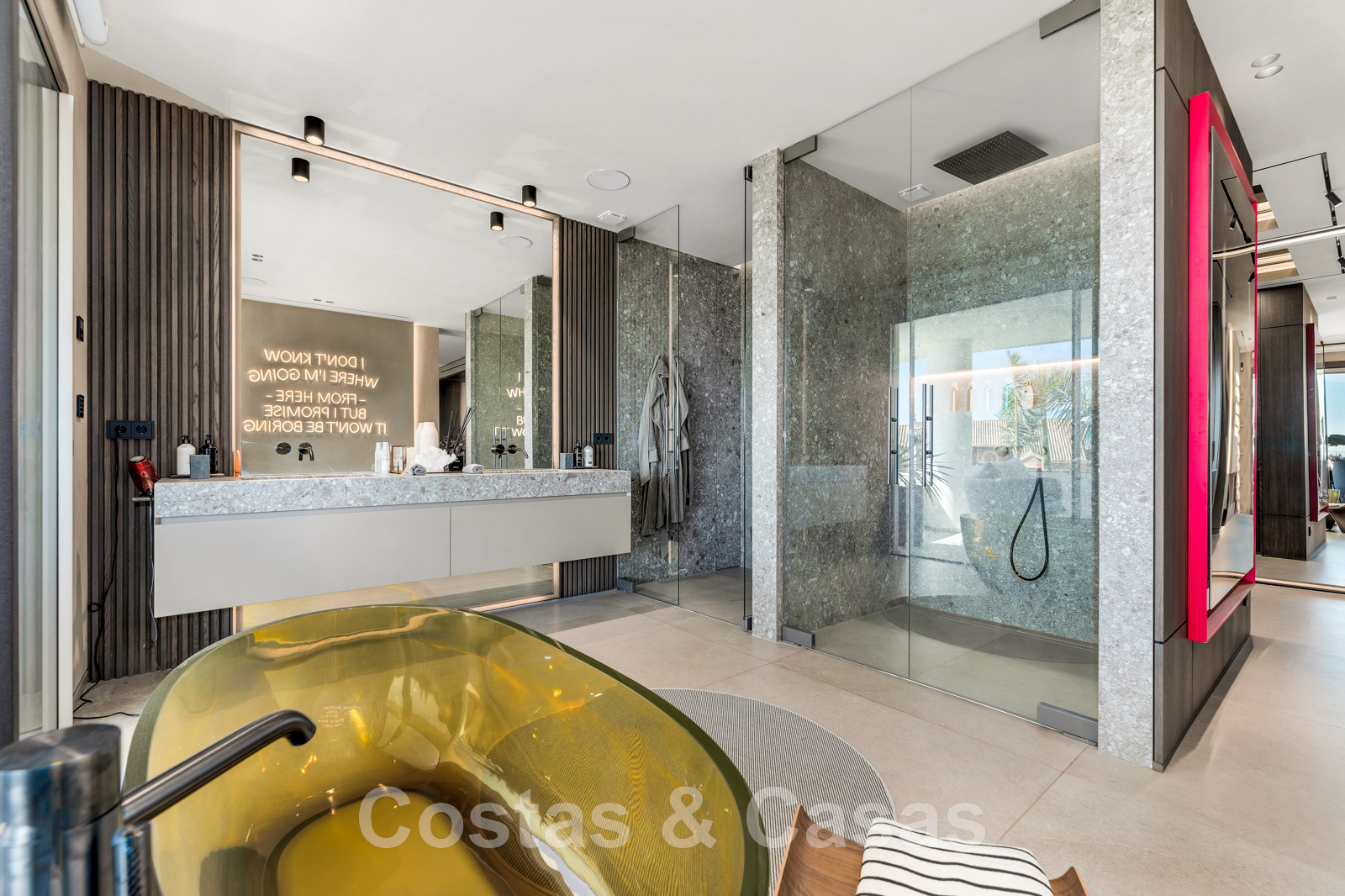 Villa moderne à vendre, prête à être emménagée, décorée par Tom Ford, avec vue panoramique sur la mer, proche de toutes les commodités, au cœur de Nueva Andalucia, Marbella