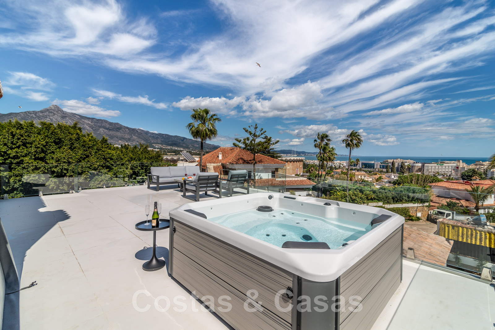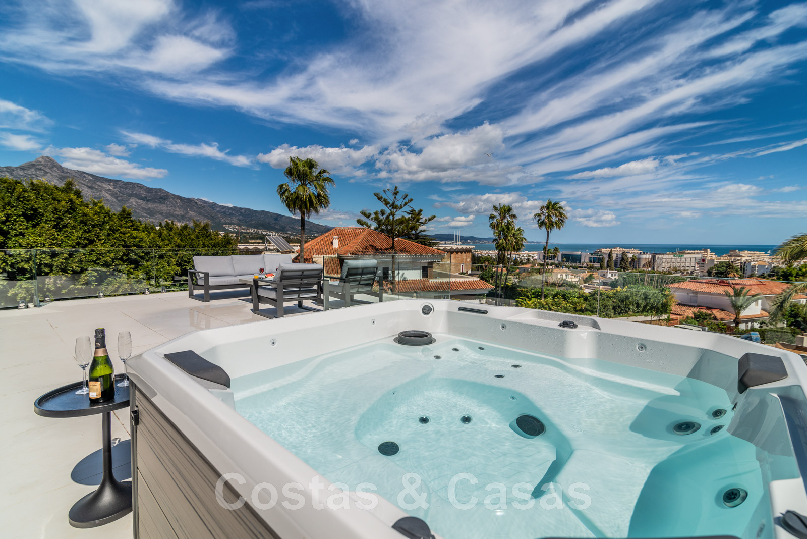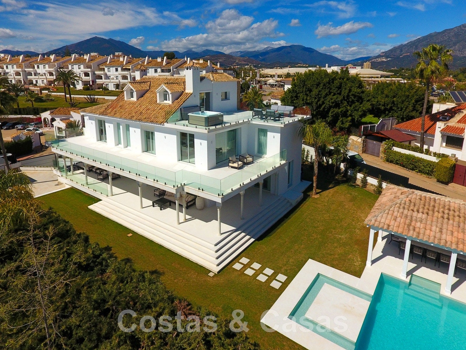 Impressionnante villa de luxe à vendre avec de vastes espaces extérieurs, à quelques minutes de marche de Puerto Banus, Marbella