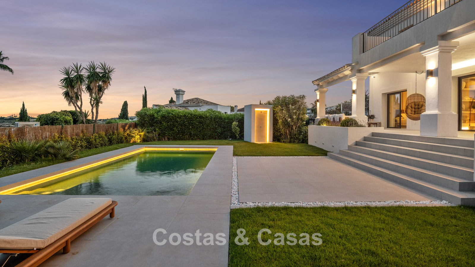 Autres caractéristiques : Climatisation pour le refroidissement et le chauffage. Chauffage au sol. Cheminée moderne. Armoires intégrées sur mesure. Éclairage LED intérieur et extérieur. Double vitrage. Système d'alarme. Douche extérieure.