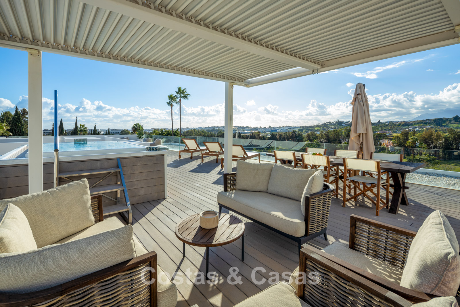 Une vaste terrasse sur le toit dispose d'un jacuzzi et de diverses options de détente.