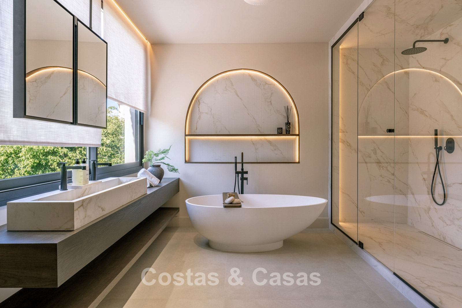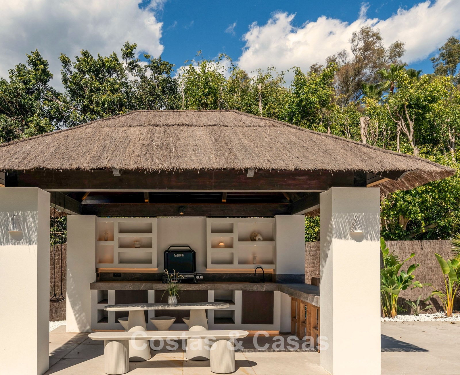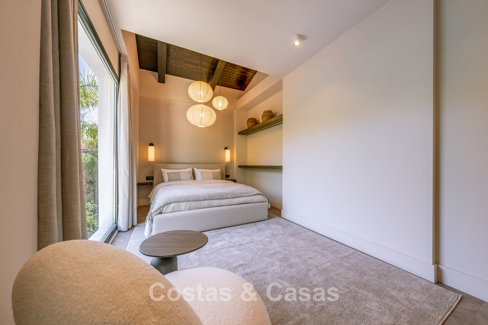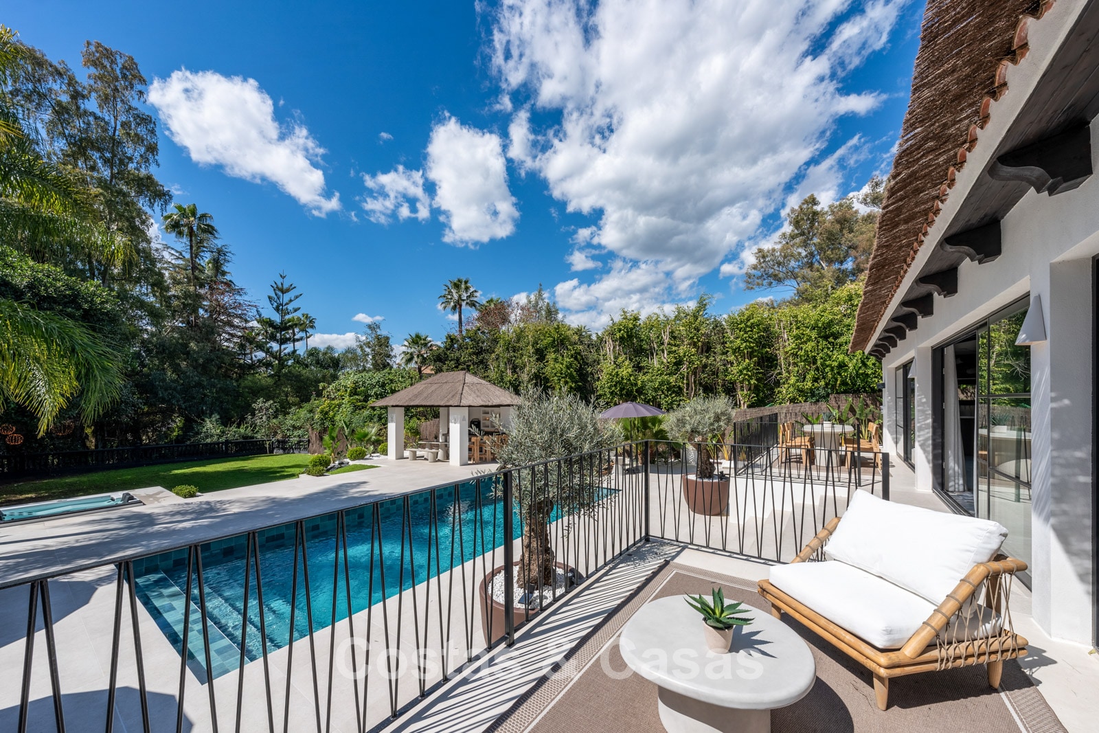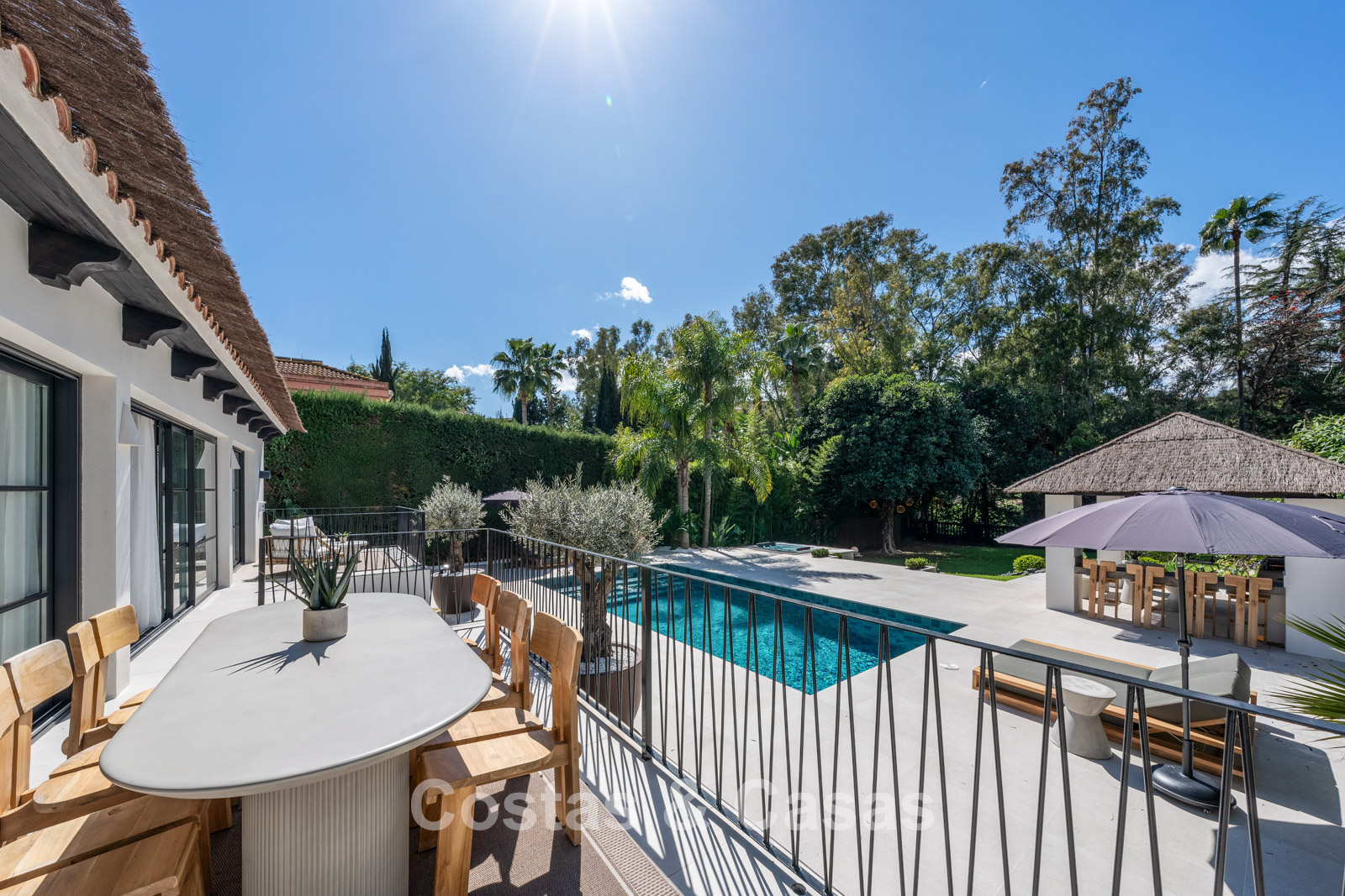 Autres caractéristiques : Climatisation pour le refroidissement et le chauffage. Cheminée. Double vitrage. Armoires encastrées sur mesure. Plafonds surélevés. Télévision par satellite. Système domotique sophistiqué. Espace barbecue. Éclairage LED.