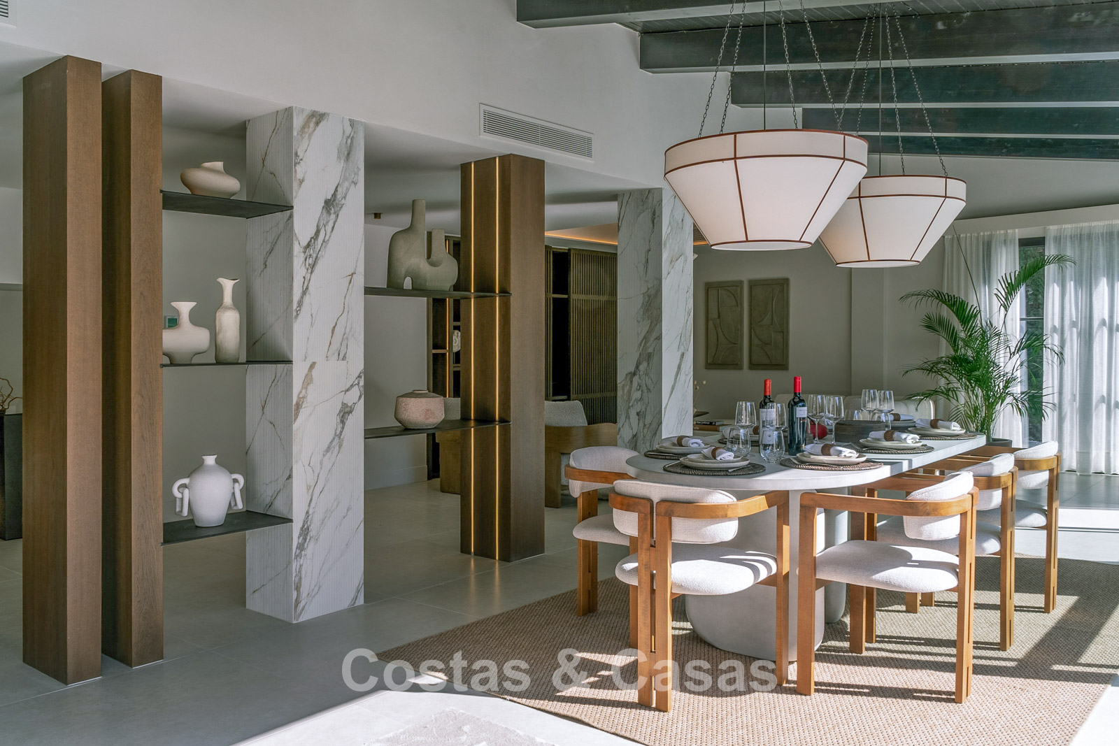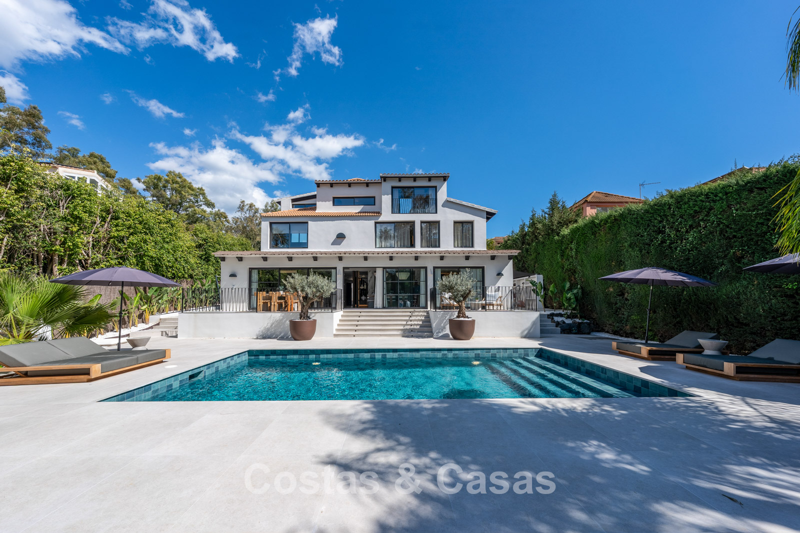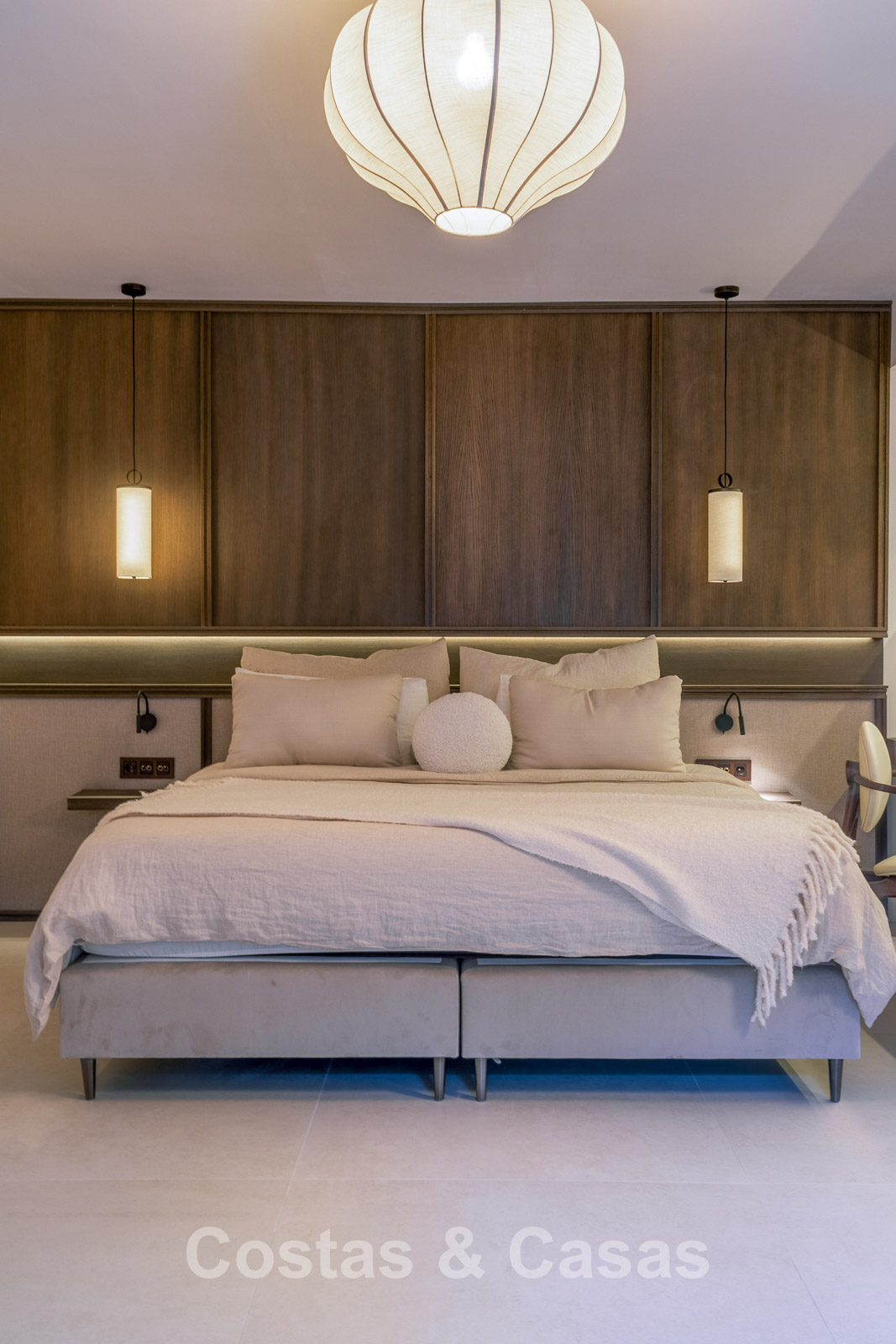 Villa individuelle au style architectural méditerranéen luxueux. Cette villa récemment rénovée respire la tranquillité et le raffinement grâce au style scandinave-japonais serein, où minimalisme et élégance chaleureuse se marient harmonieusement. À l'intérieur, des matériaux naturels et des tons doux et apaisants créent une atmosphère harmonieuse qui invite à la détente ultime. Fini avec des matériaux de haute qualité. Les grandes fenêtres maximisent la lumière naturelle et assurent une transition harmonieuse entre l'intérieur et l'extérieur. Séjour ouvert avec salon TV et salle à manger intégrée. La cuisine sera équipée d'appareils Bosch de haute qualité et d'un îlot de cuisson en marbre avec bar à petit-déjeuner. 5 chambres magnifiquement conçues et 6 salles de bains modernes. Carreaux de céramique grand format. Parking privé couvert.