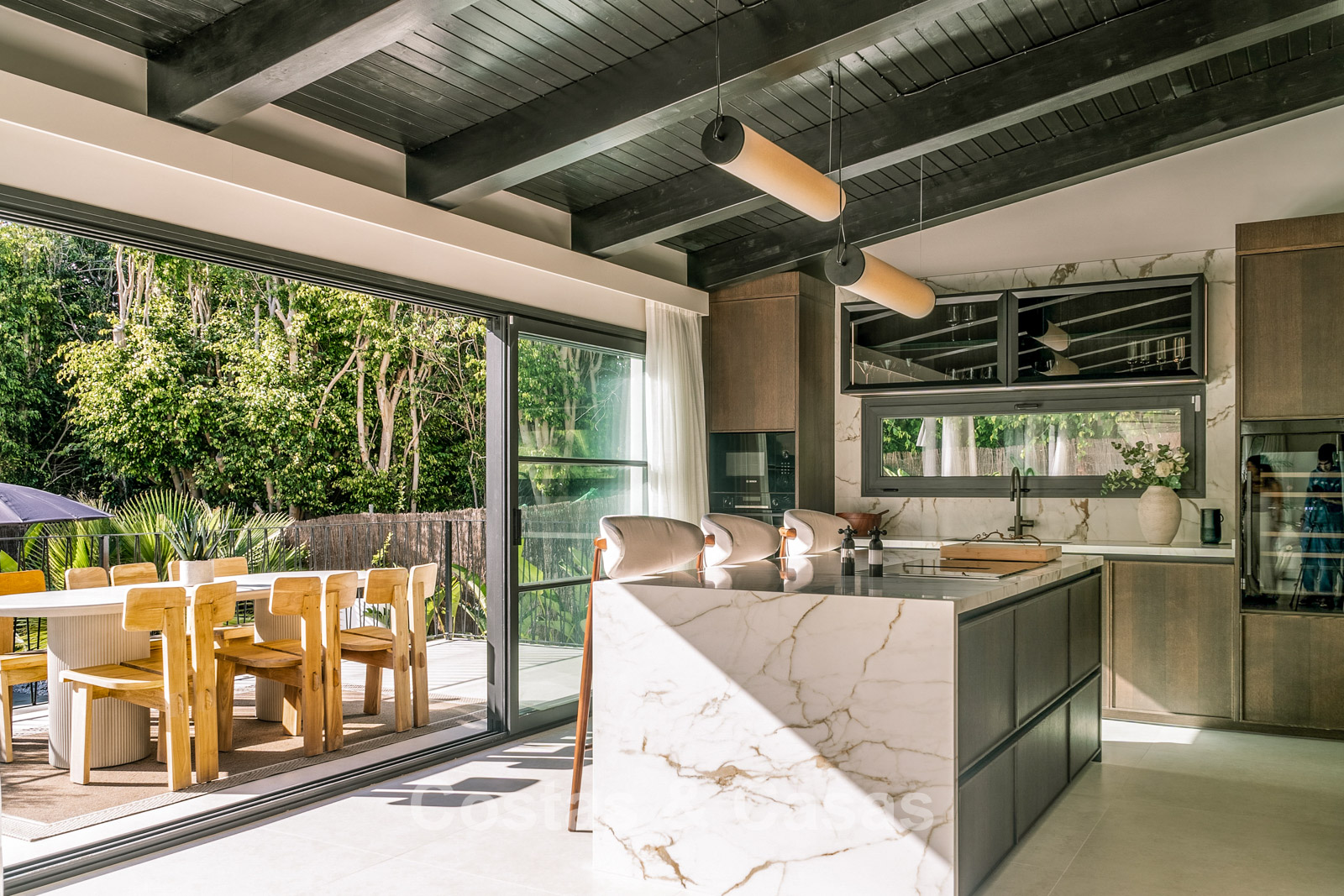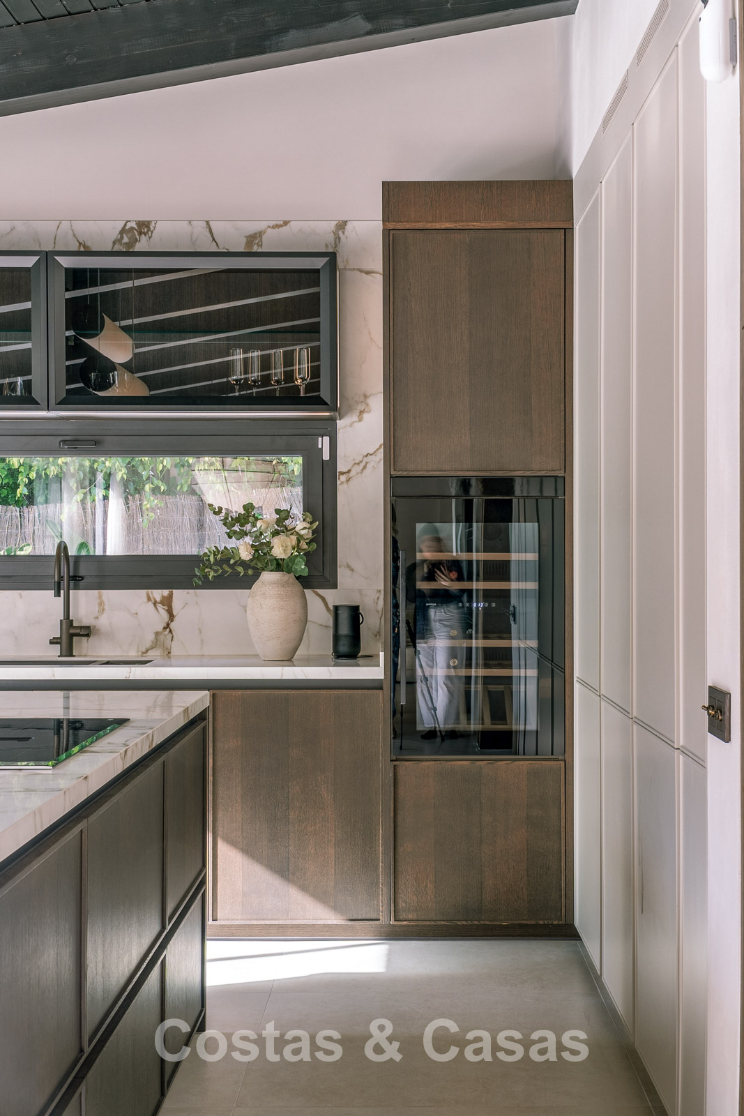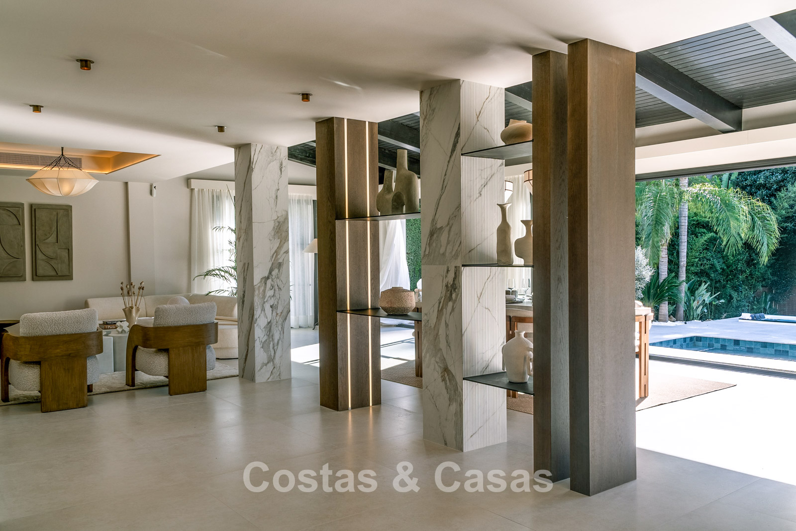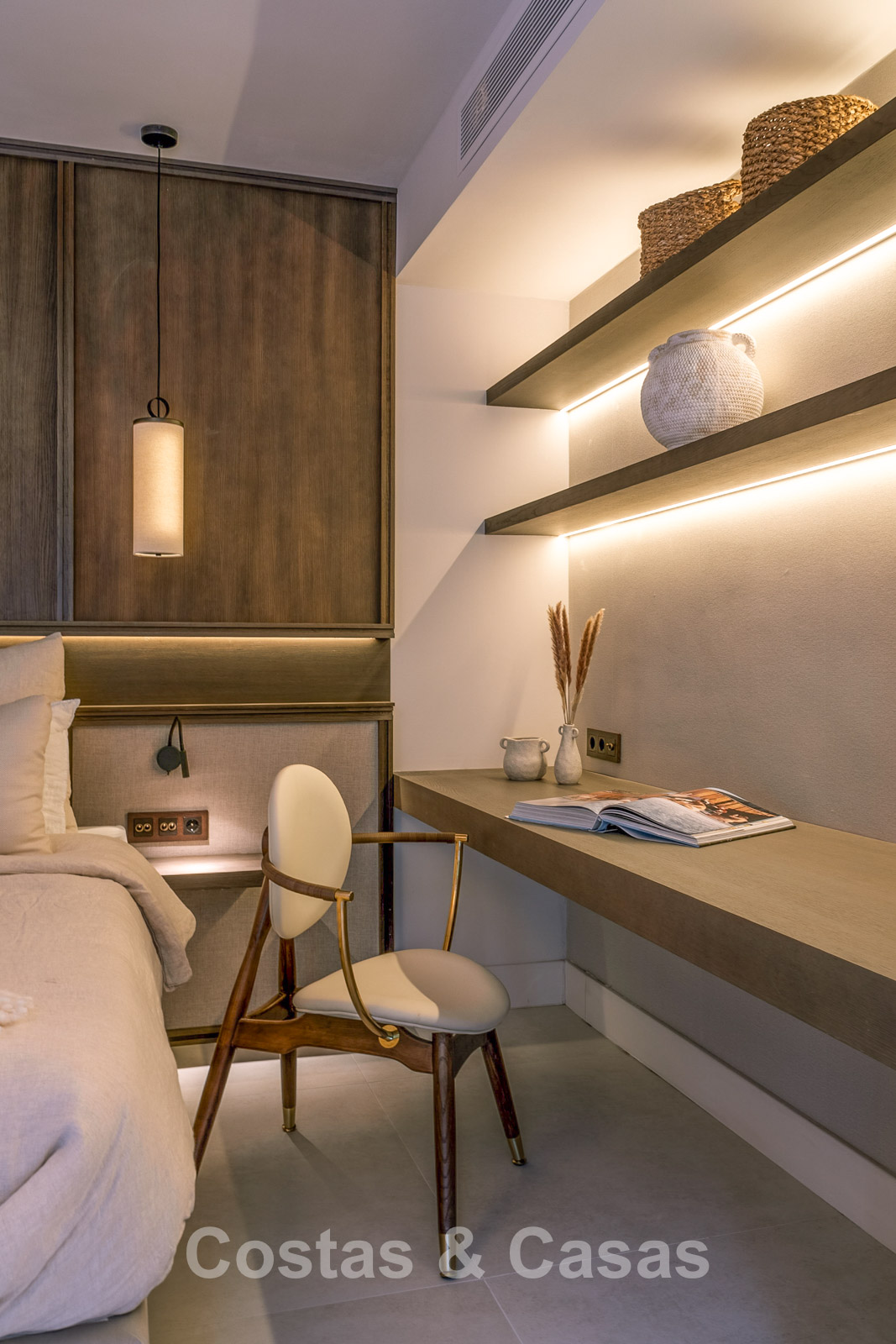 Villa individuelle au style architectural méditerranéen luxueux. Cette villa récemment rénovée respire la tranquillité et le raffinement grâce au style scandinave-japonais serein, où minimalisme et élégance chaleureuse se marient harmonieusement. À l'intérieur, des matériaux naturels et des tons doux et apaisants créent une atmosphère harmonieuse qui invite à la détente ultime. Fini avec des matériaux de haute qualité. Les grandes fenêtres maximisent la lumière naturelle et assurent une transition harmonieuse entre l'intérieur et l'extérieur. Séjour ouvert avec salon TV et salle à manger intégrée. La cuisine sera équipée d'appareils Bosch de haute qualité et d'un îlot de cuisson en marbre avec bar à petit-déjeuner. 5 chambres magnifiquement conçues et 6 salles de bains modernes. Carreaux de céramique grand format. Parking privé couvert.