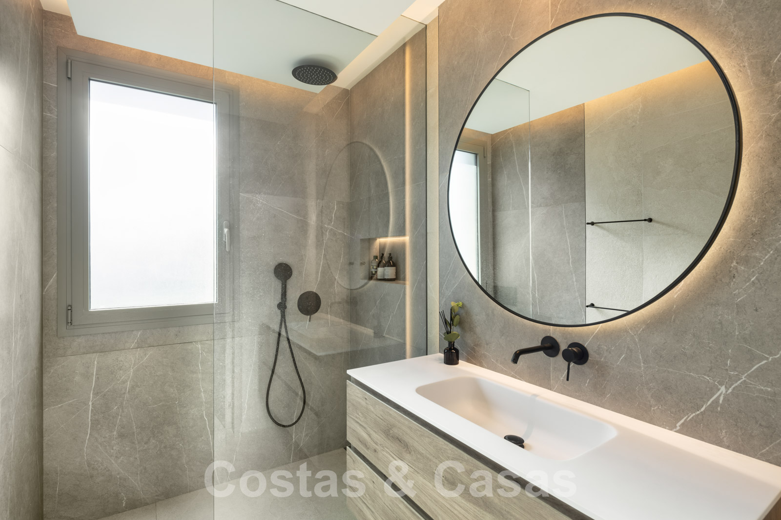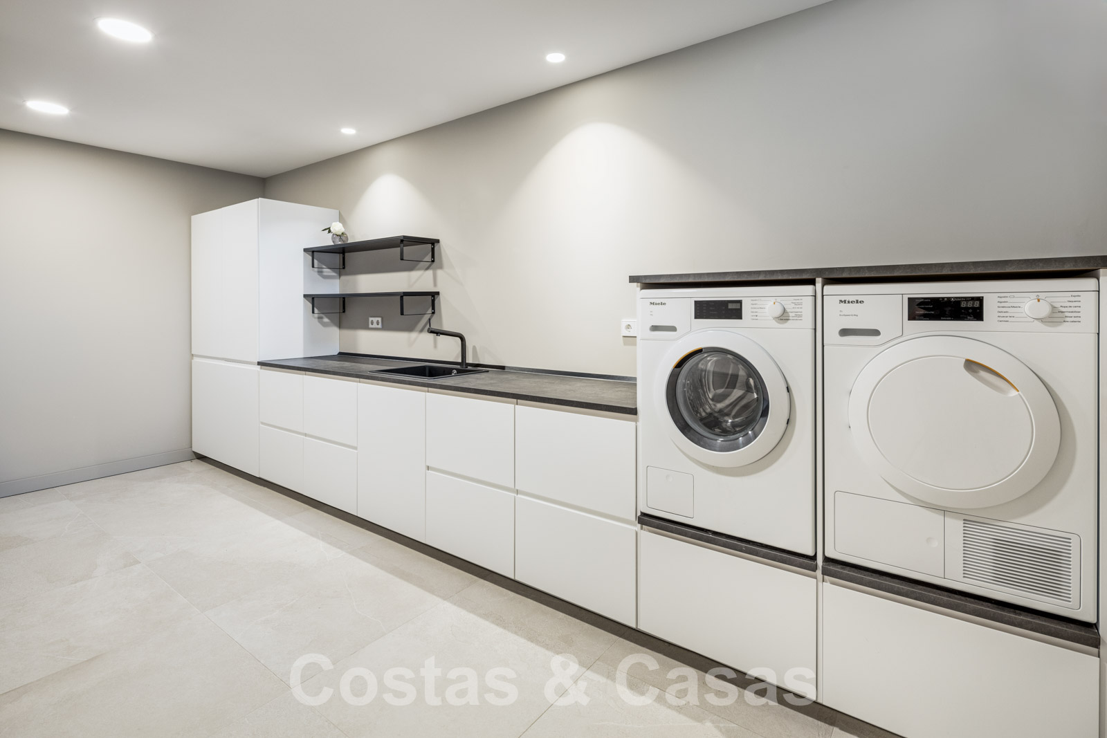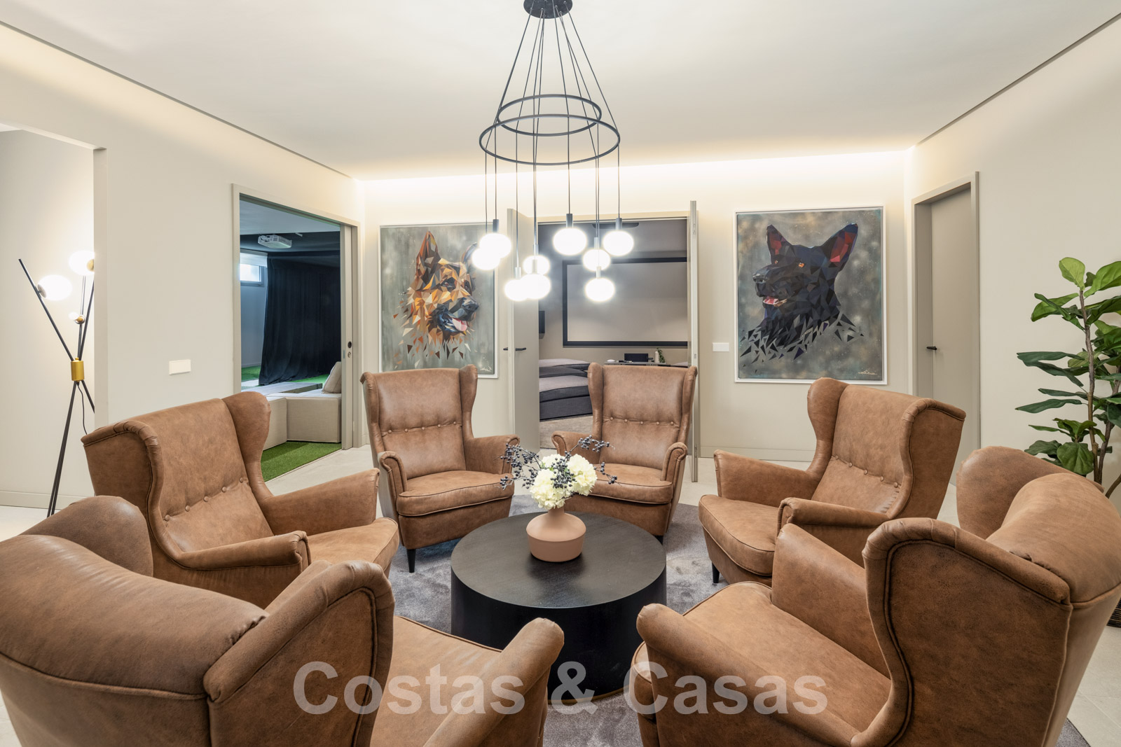 Ascenseur à tous les étages. Balustrades en verre autour de la terrasse. Climatisation Daikin pour le refroidissement et le chauffage. Contrôle indépendant du chauffage et de la climatisation par pièce. Chauffage au sol à eau dans toute la maison. Sols en porcelaine grise. Menuiserie sur mesure. Eclairage LED intérieur et extérieur. Pré-installation audio Sonos dans les zones principales. Panneaux solaires. Pré-installation pour le chauffage de la piscine.