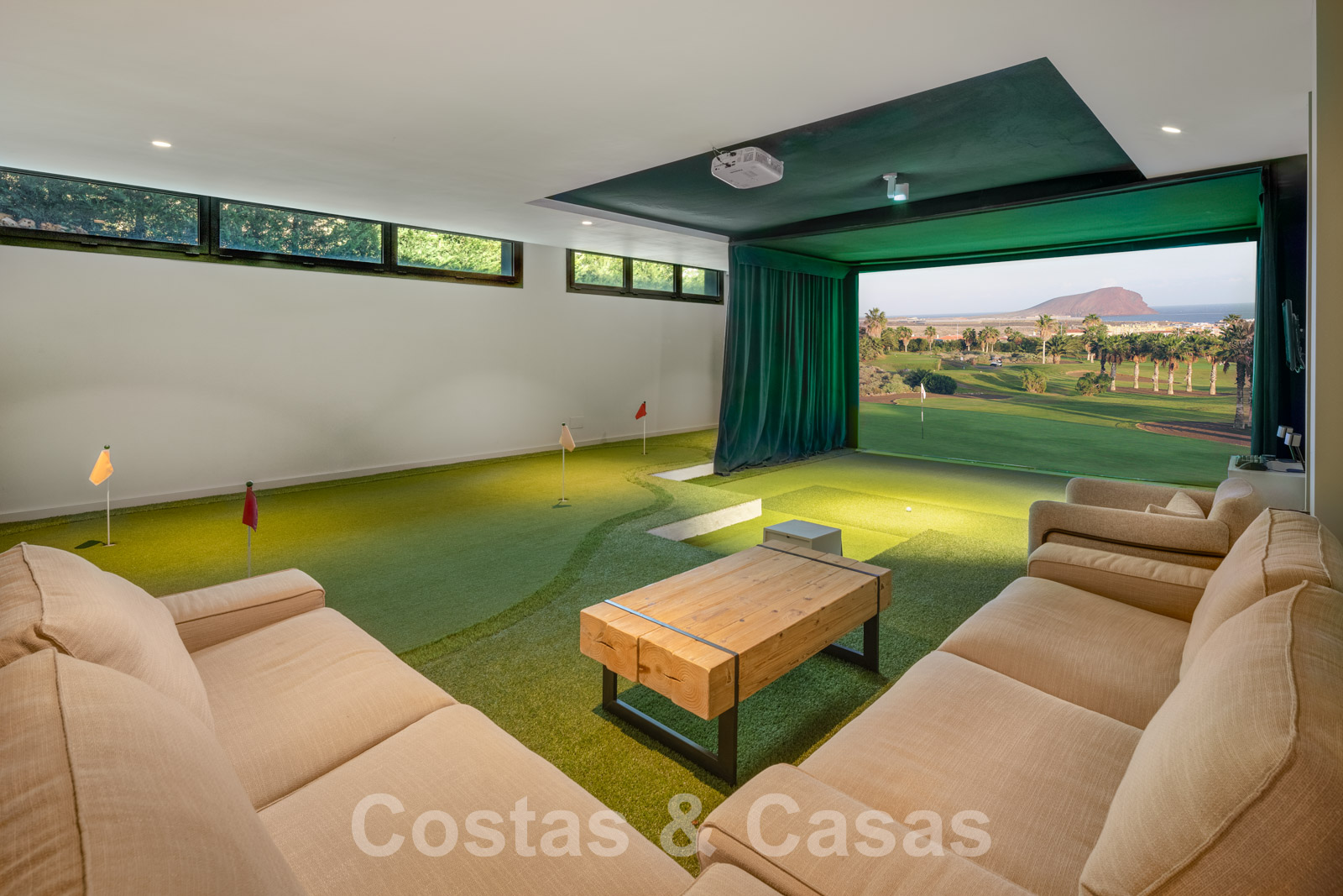 Salle de simulation de golf, gym extérieur, cinéma maison.