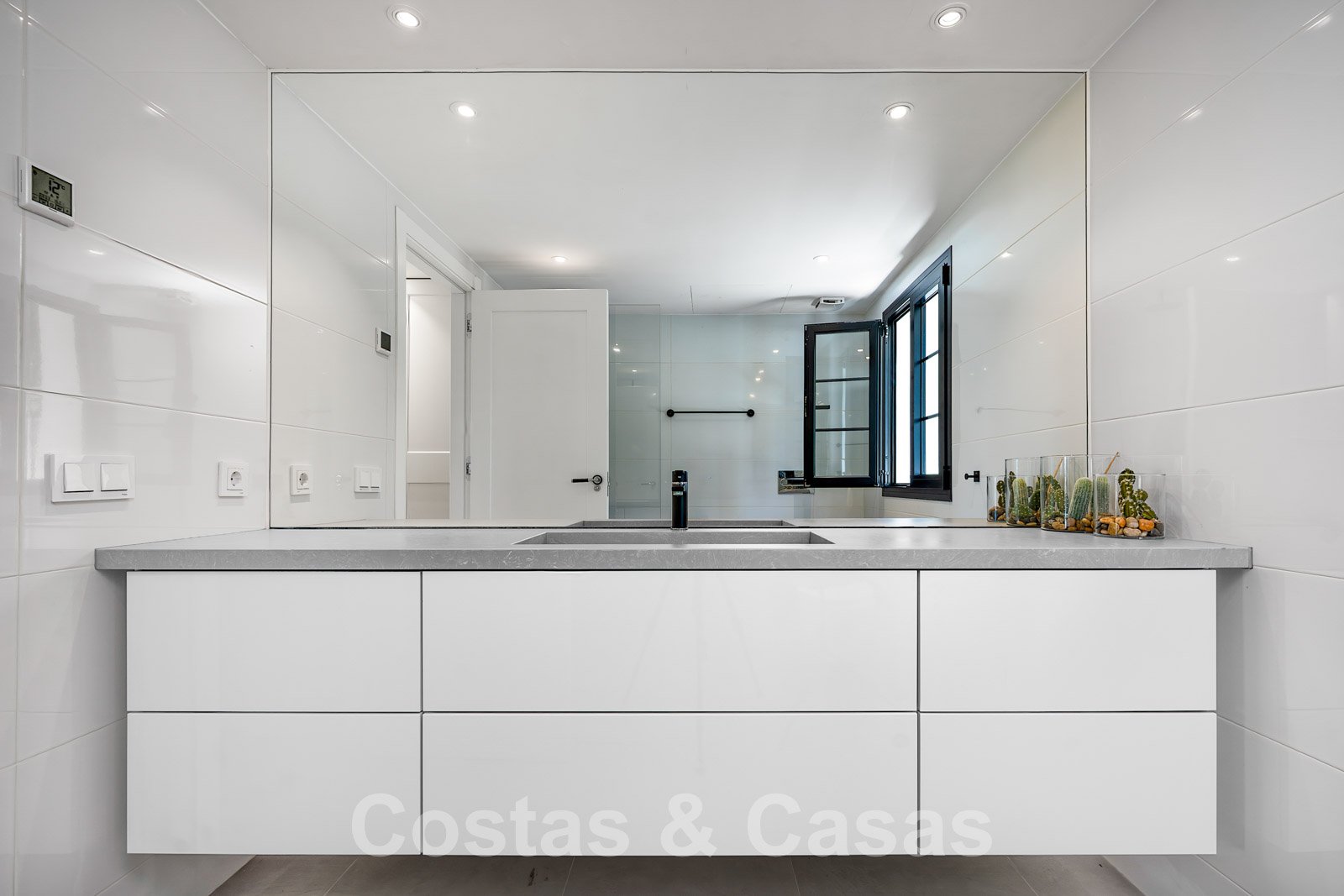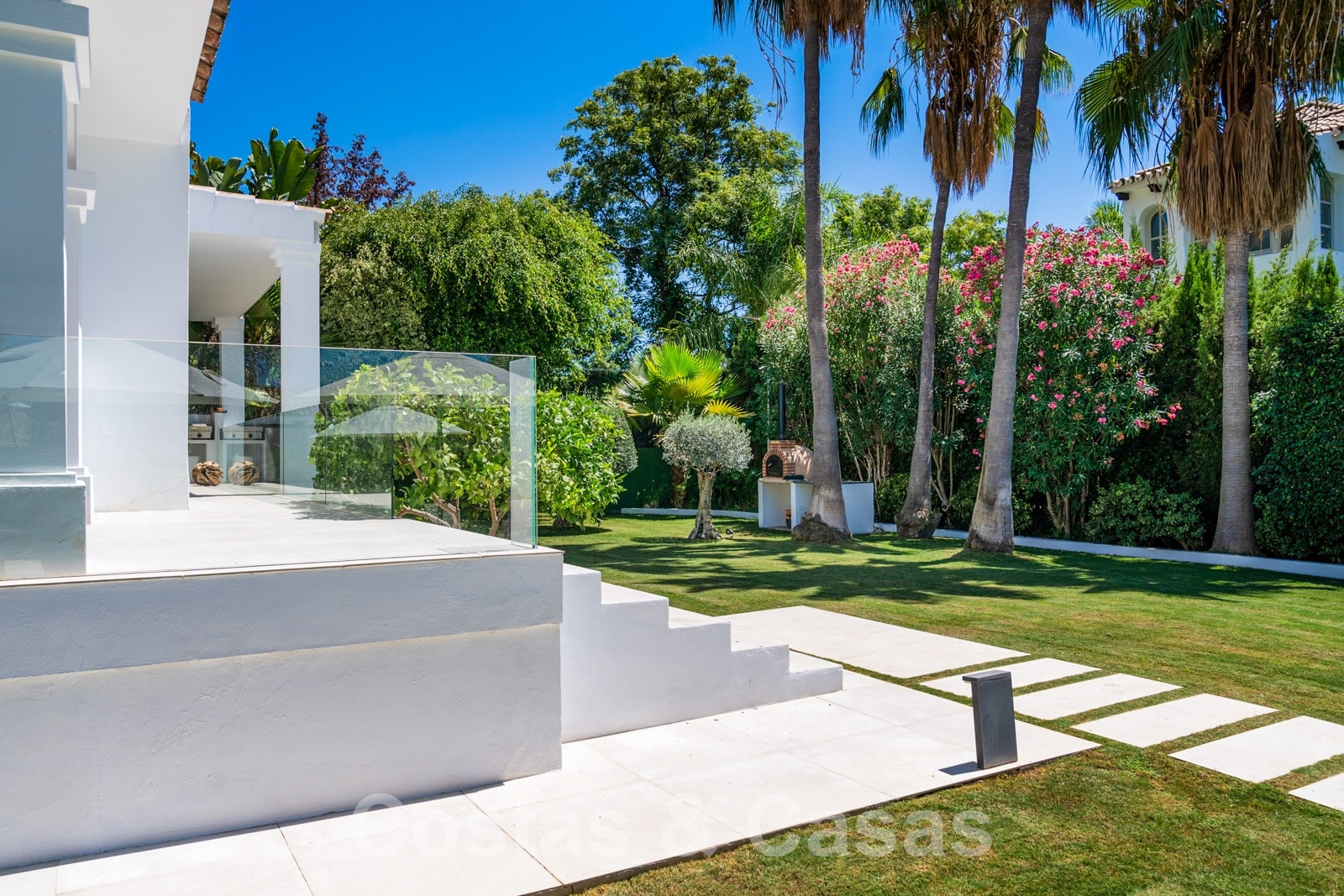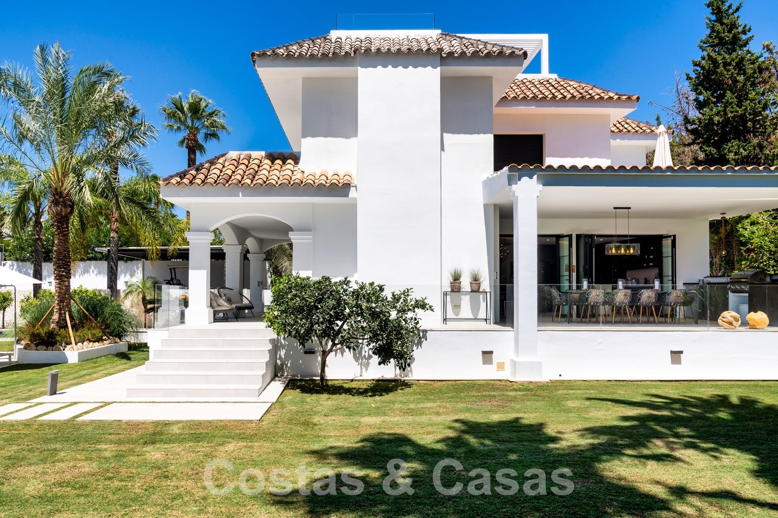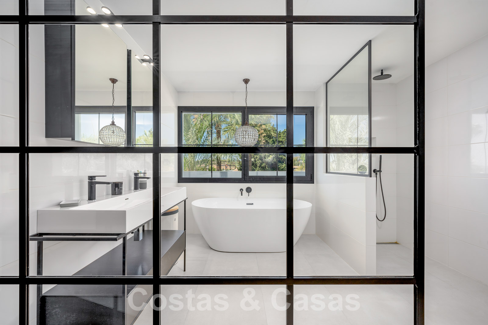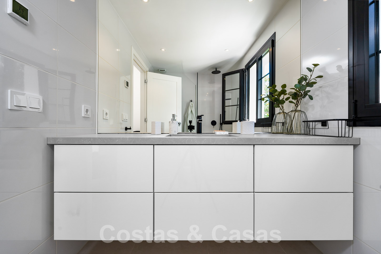Balustrades en verre autour des terrasses. Climatisation. Armoires encastrées. Eclairage extérieur. Douche extérieure.