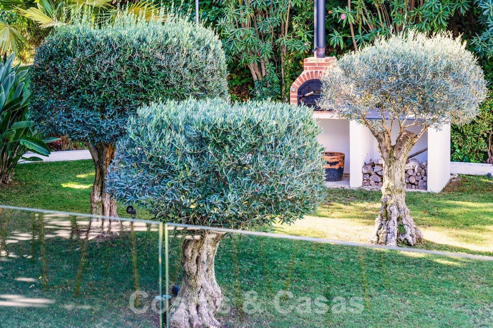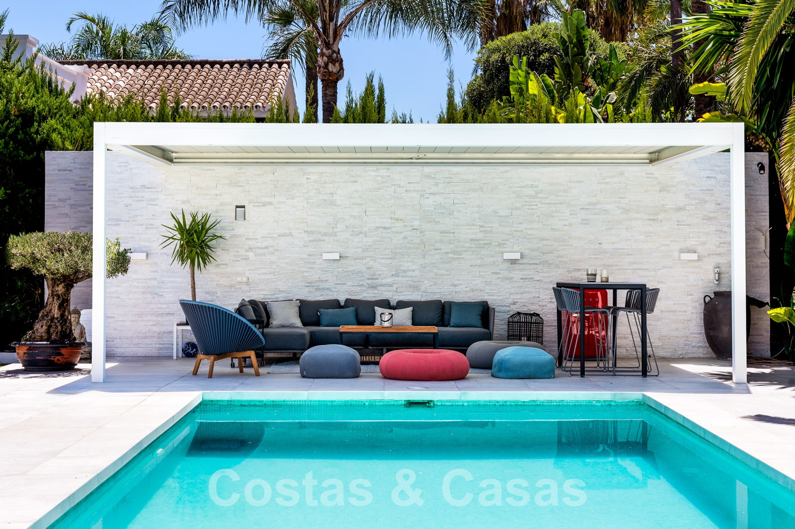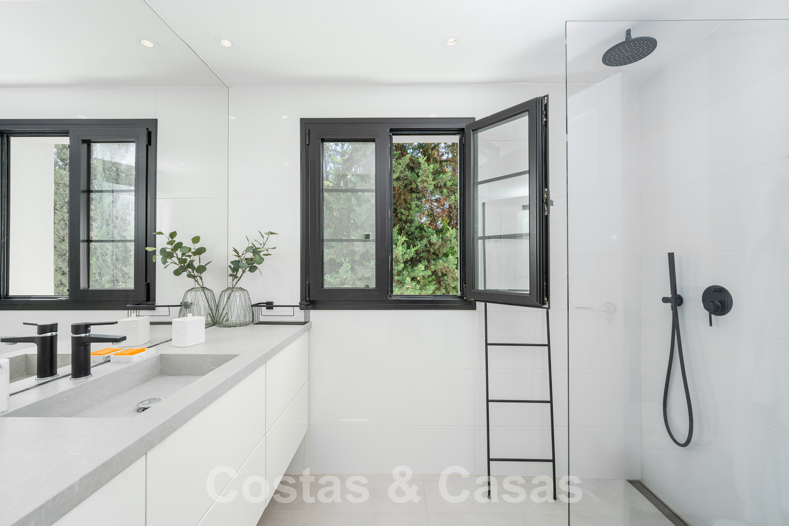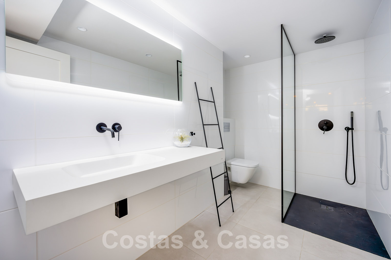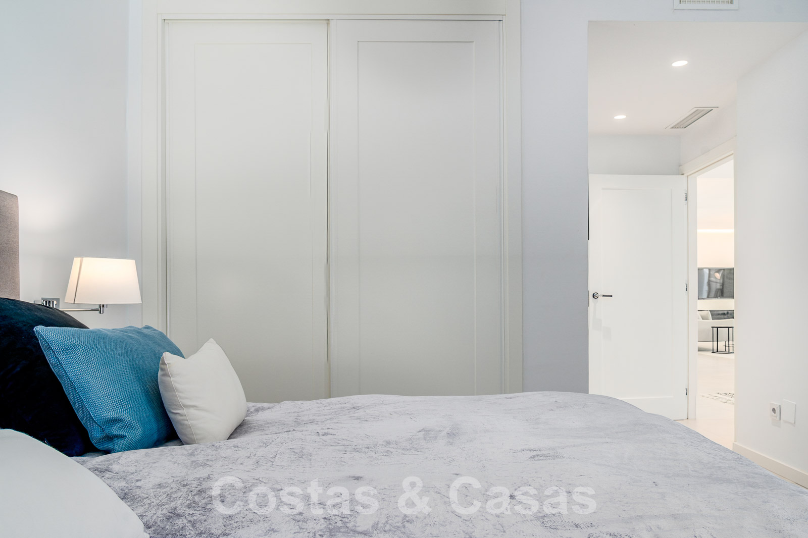 Balustrades en verre autour des terrasses. Climatisation. Armoires encastrées. Eclairage extérieur. Douche extérieure.