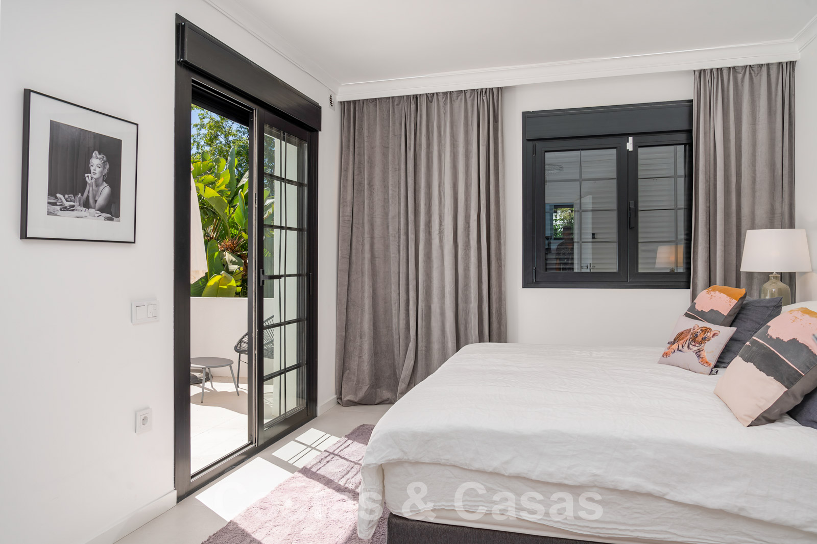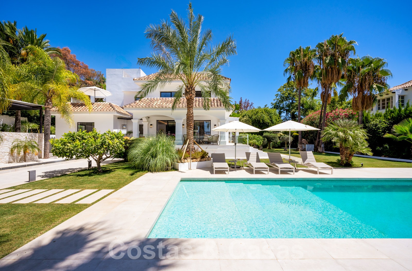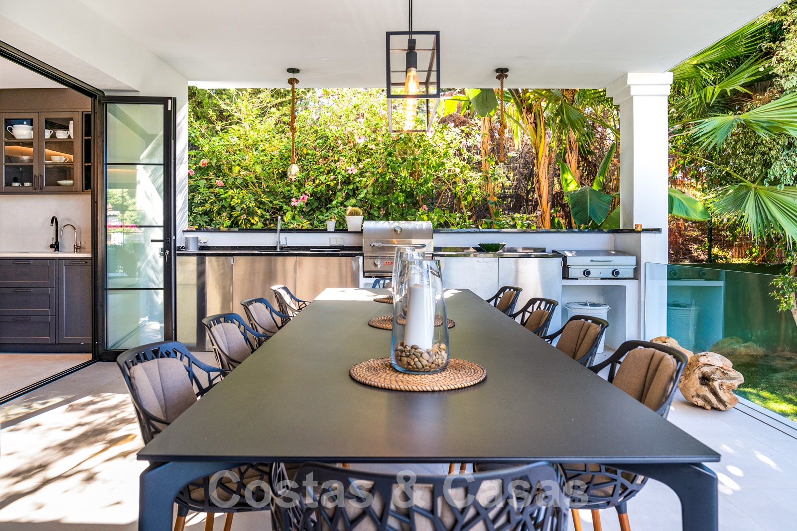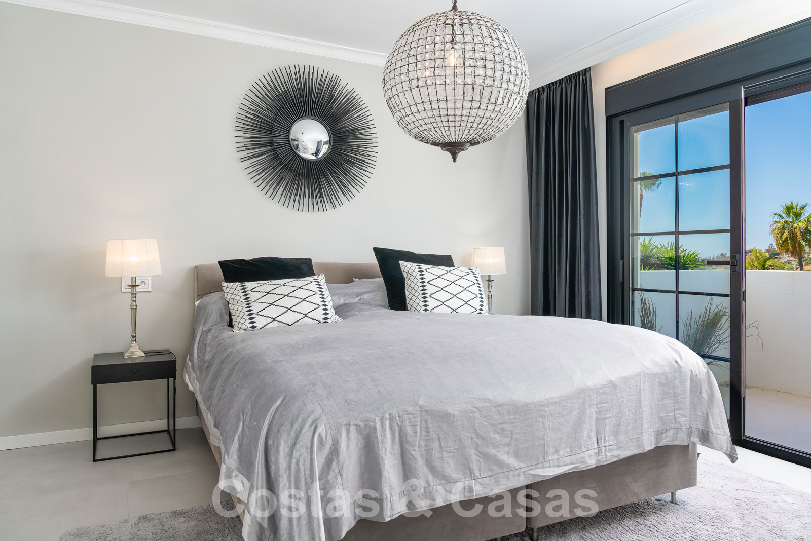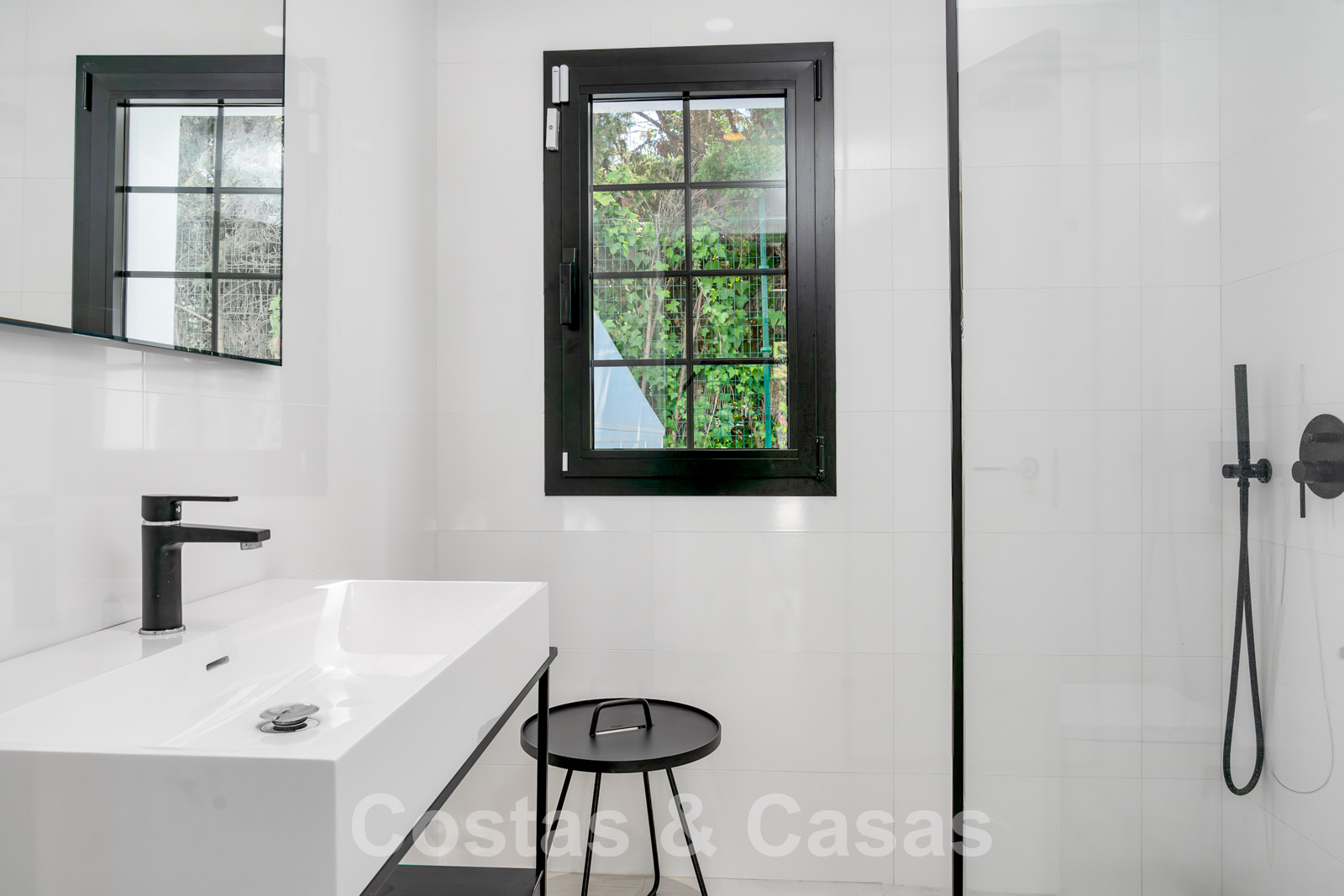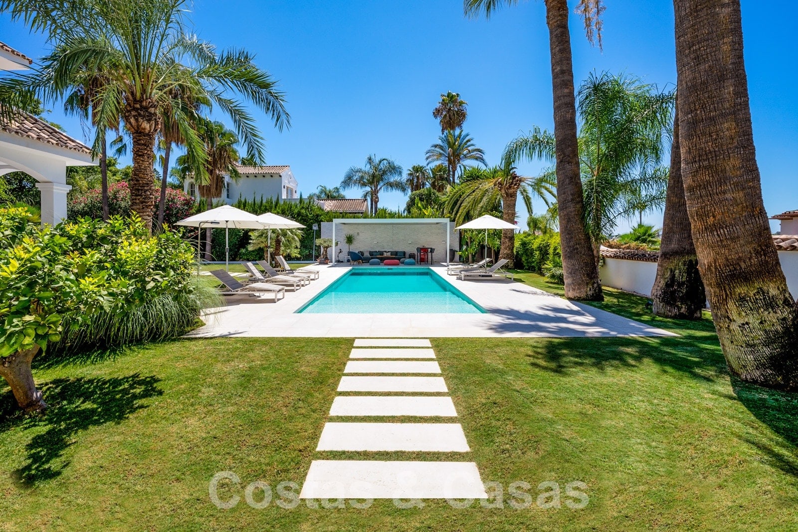 Balustrades en verre autour des terrasses. Climatisation. Armoires encastrées. Eclairage extérieur. Douche extérieure.