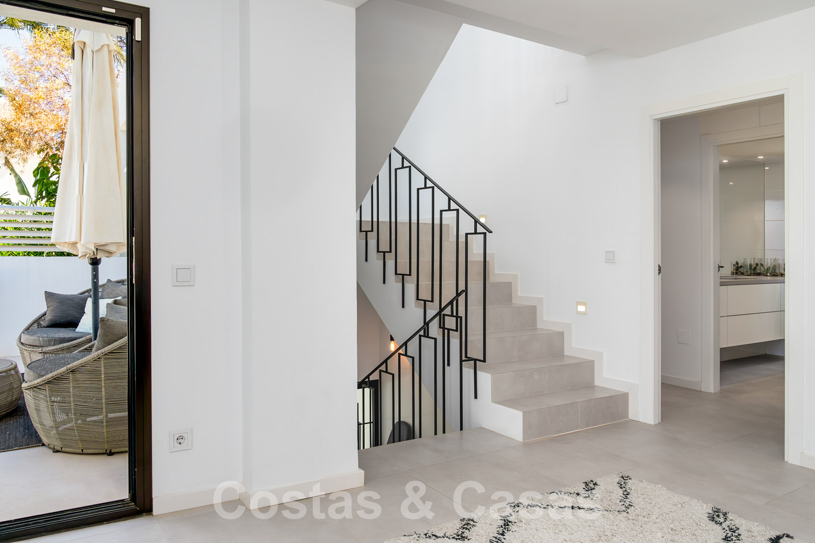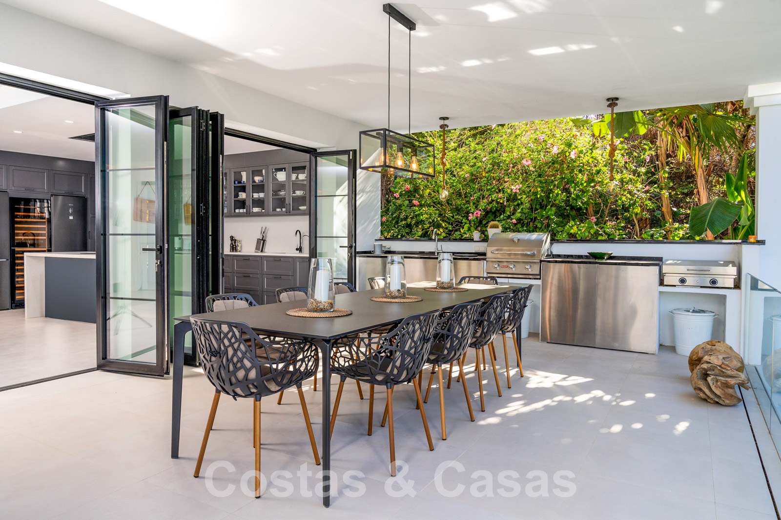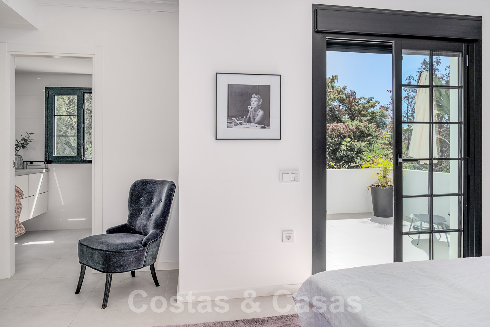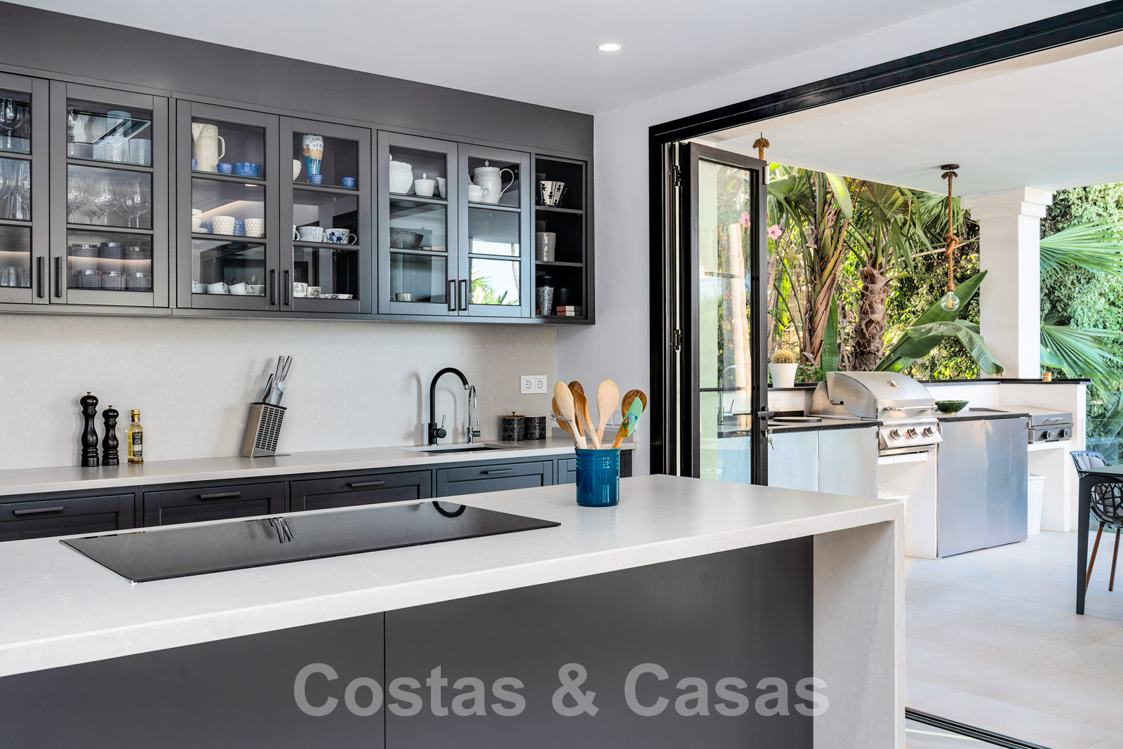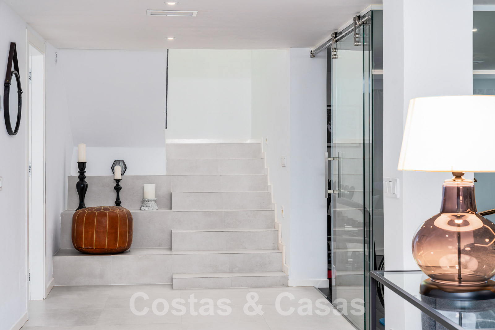 Balustrades en verre autour des terrasses. Climatisation. Armoires encastrées. Eclairage extérieur. Douche extérieure.
