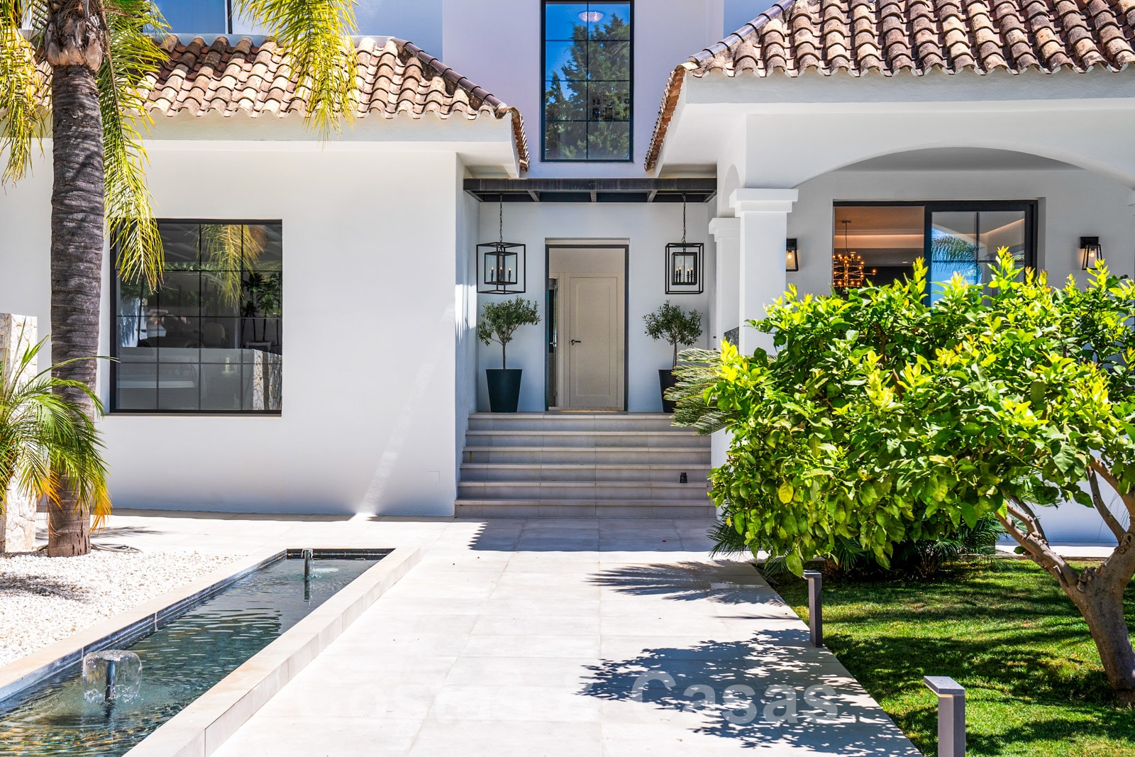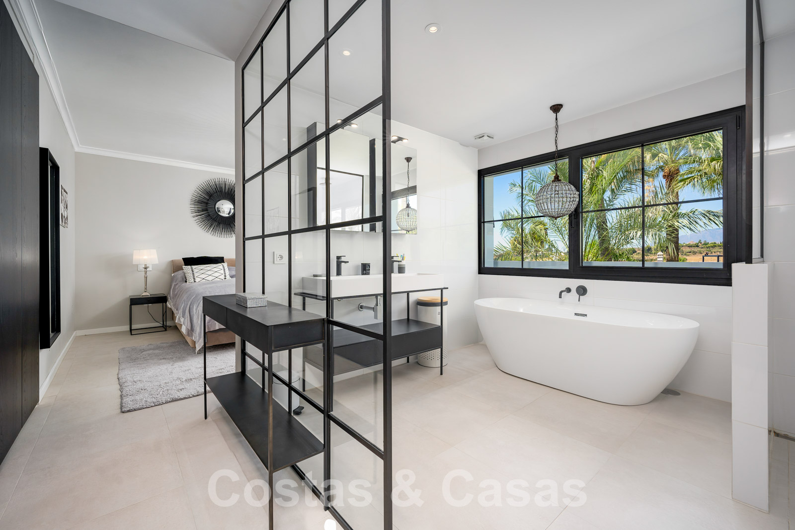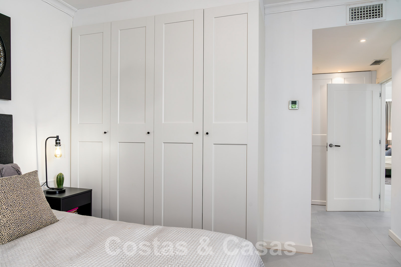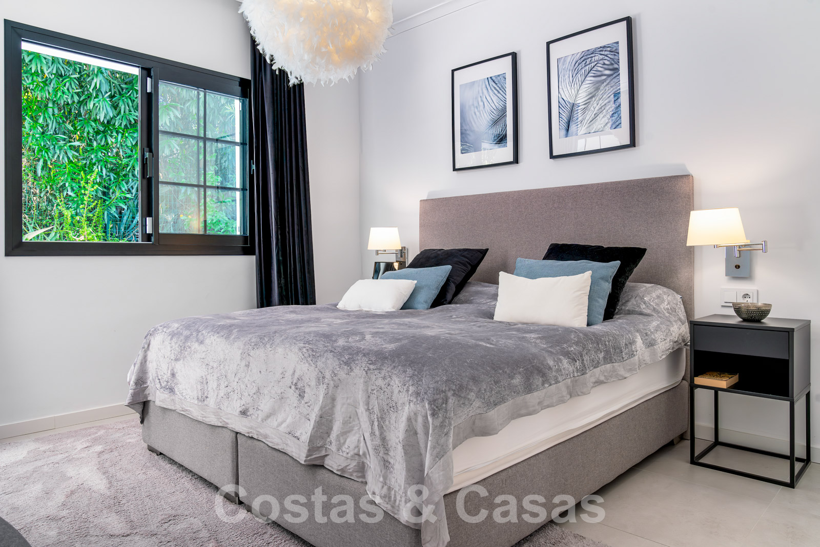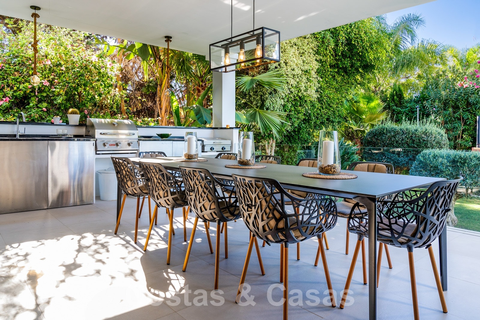 Balustrades en verre autour des terrasses. Climatisation. Armoires encastrées. Eclairage extérieur. Douche extérieure.