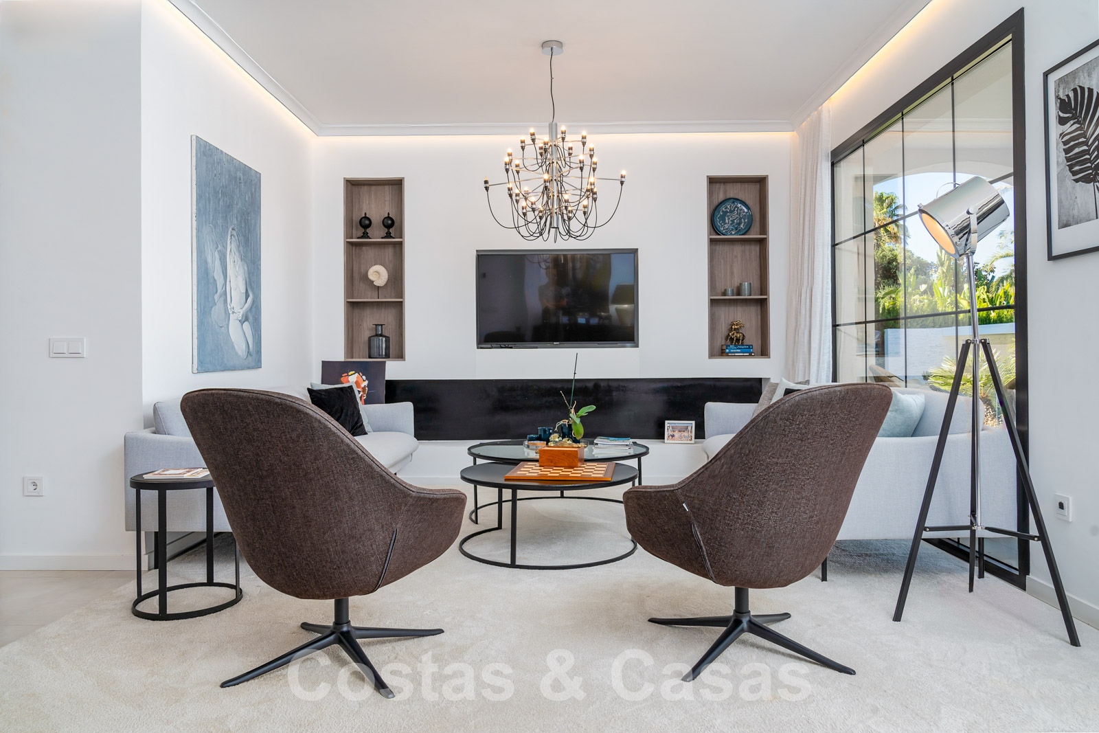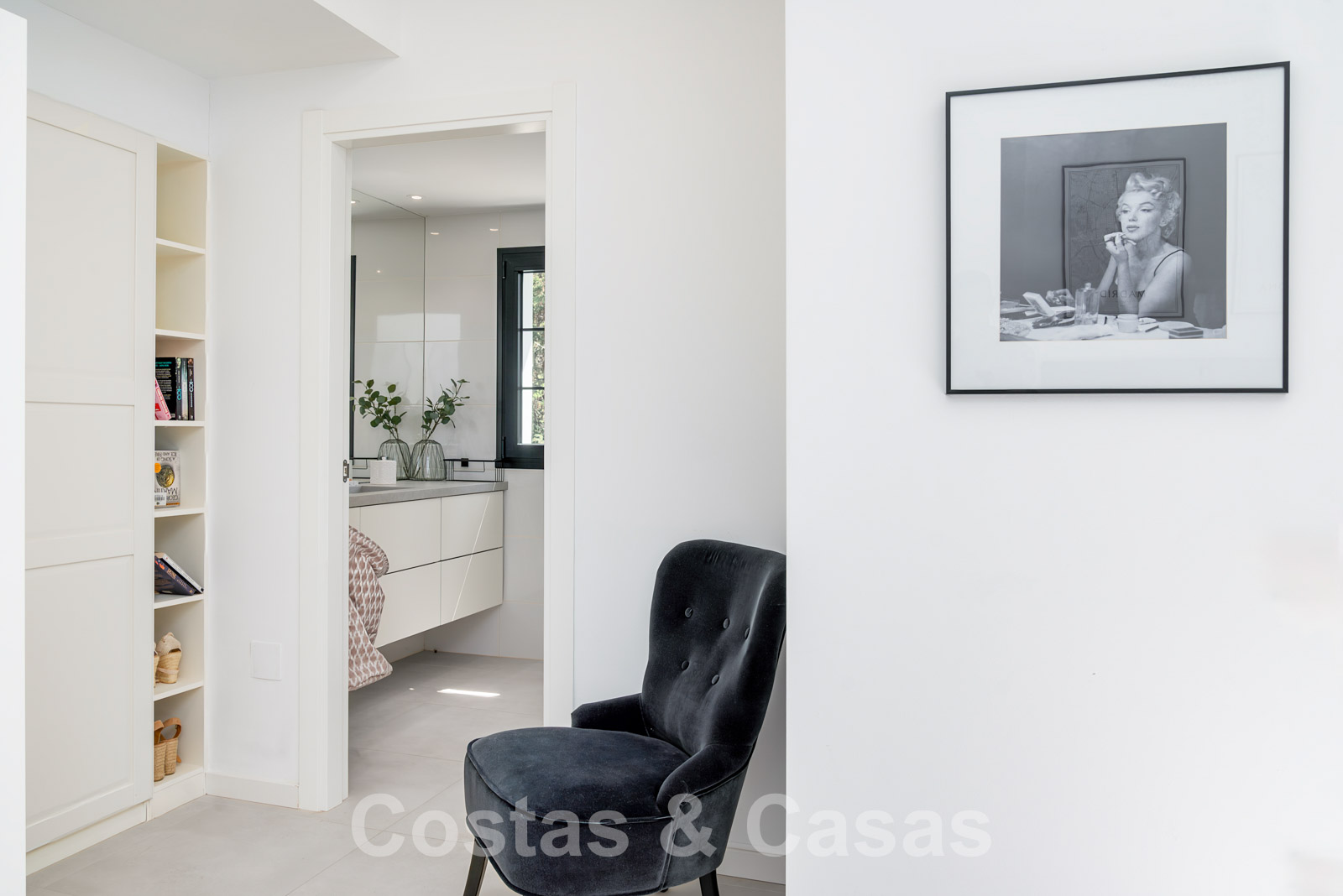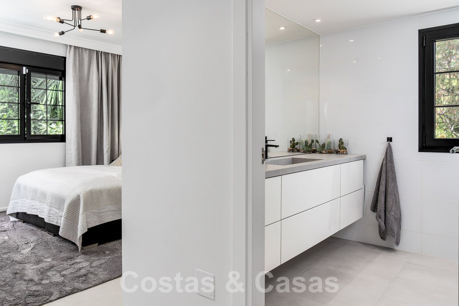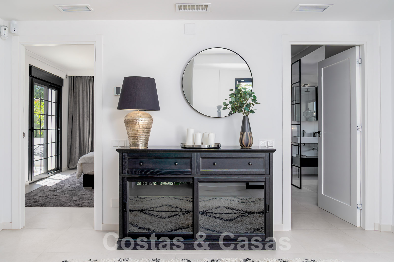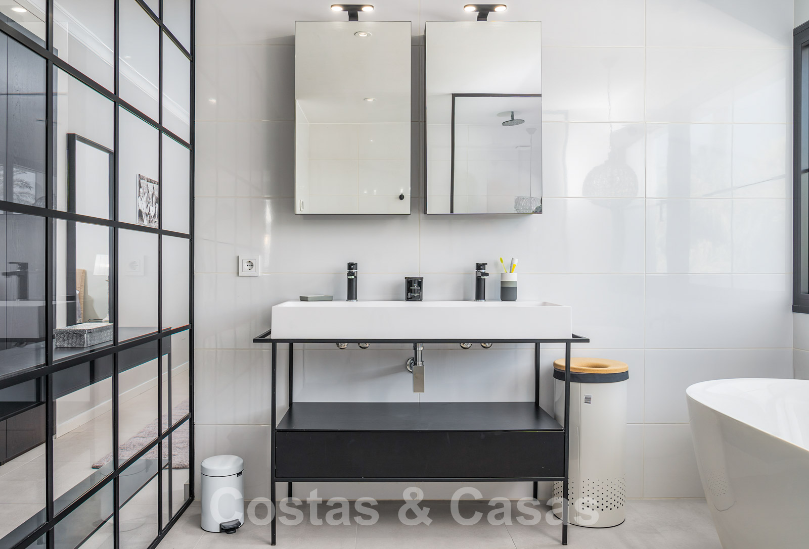 Balustrades en verre autour des terrasses. Climatisation. Armoires encastrées. Eclairage extérieur. Douche extérieure.