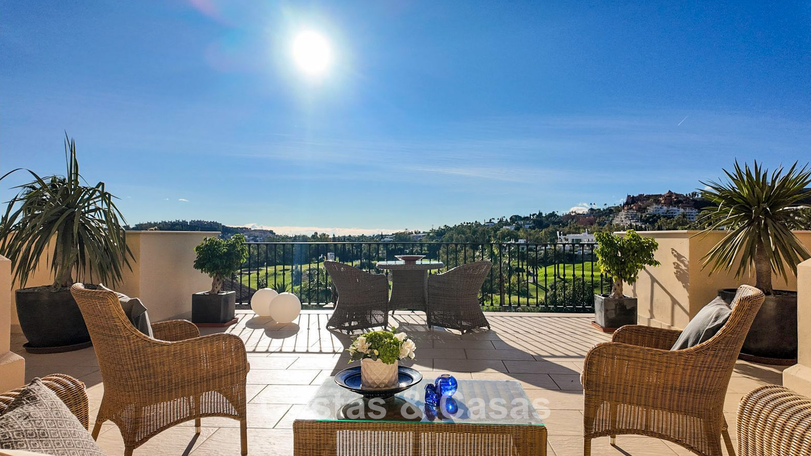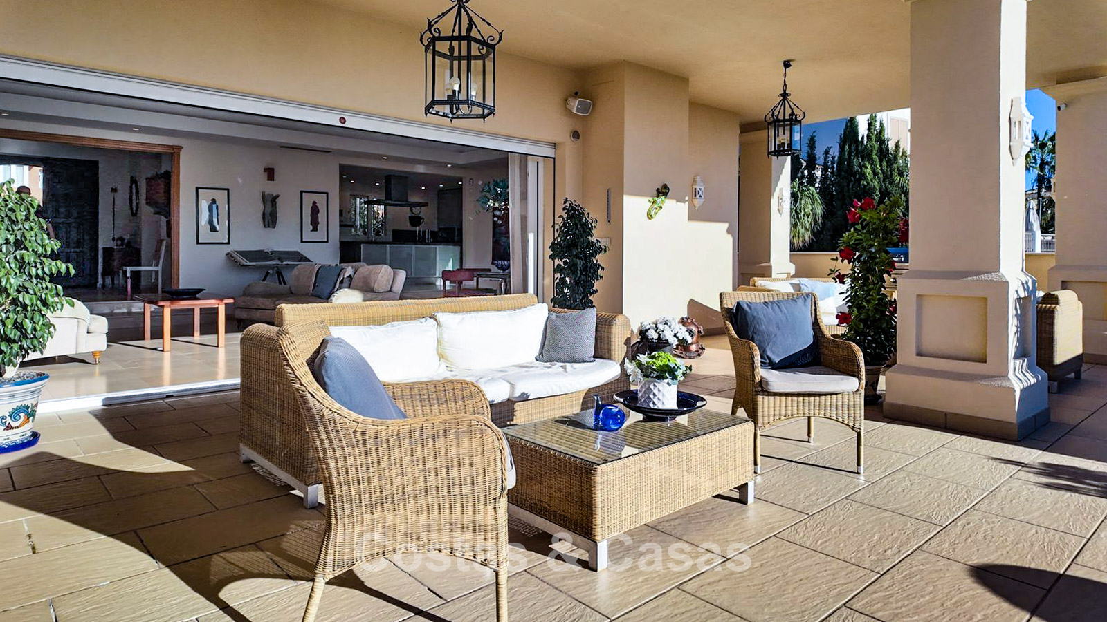 Située au calme dans un quartier résidentiel privilégié de Nueva Andalucia, entourée de terrains de golf de premier plan, qui offrent beaucoup de verdure, d'espaces ouverts et de beaux paysages. La Vallée du Golfe est abritée par les montagnes et s'étend jusqu'à la mer Méditerranée. À seulement quelques minutes en voiture d'un large éventail de cafés, bars, restaurants, supermarchés et de toutes sortes de commodités. Puerto Banus, sa marina de renommée mondiale, ses clubs de plage élégants, ses boutiques de créateurs et son centre de vie nocturne animé, sont à seulement quelques minutes en voiture. A quelques minutes en voiture d'une école internationale.