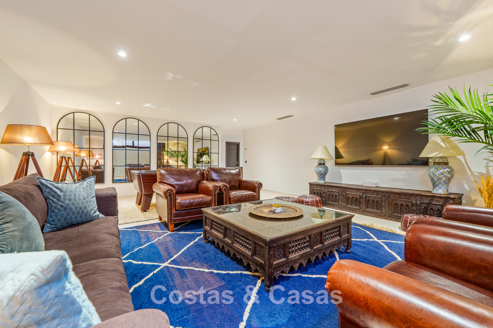 Villa individuelle à l’architecture contemporaine et minimaliste. Finitions haut de gamme avec des matériaux naturels tels que la pierre, le bois et des textiles luxueux. Grandes baies vitrées coulissantes toute hauteur reliant harmonieusement les espaces intérieurs et extérieurs. Salon chaleureux avec mobilier design, éclairage d’ambiance et finitions raffinées. Cuisine moderne entièrement équipée, ouverte sur la salle à manger. Six chambres spacieuses, chacune avec sa salle de bains privative luxueuse. Salle de sport privée et salon TV haut de gamme avec canapés en cuir. Buanderie fonctionnelle et espace de rangement supplémentaire. Garage privé et places de stationnement supplémentaires sur la parcelle pour un total de deux véhicules.