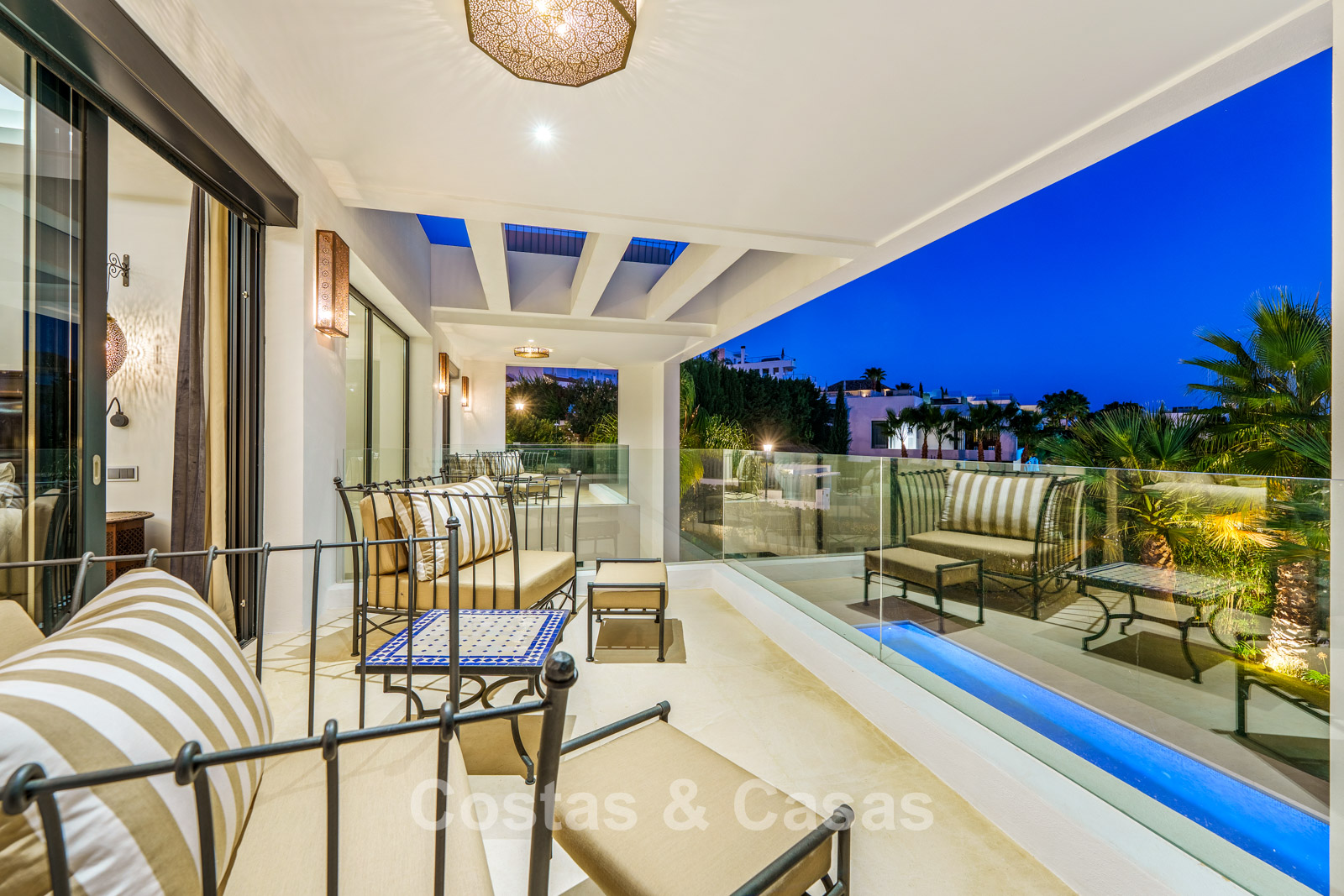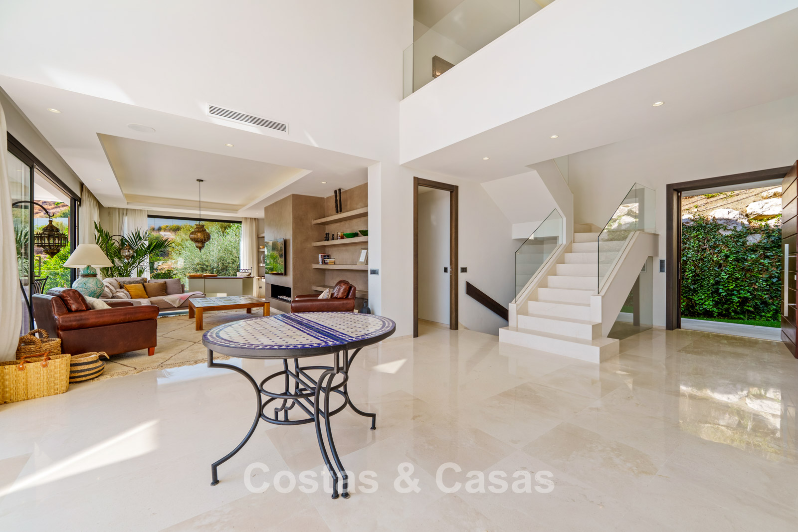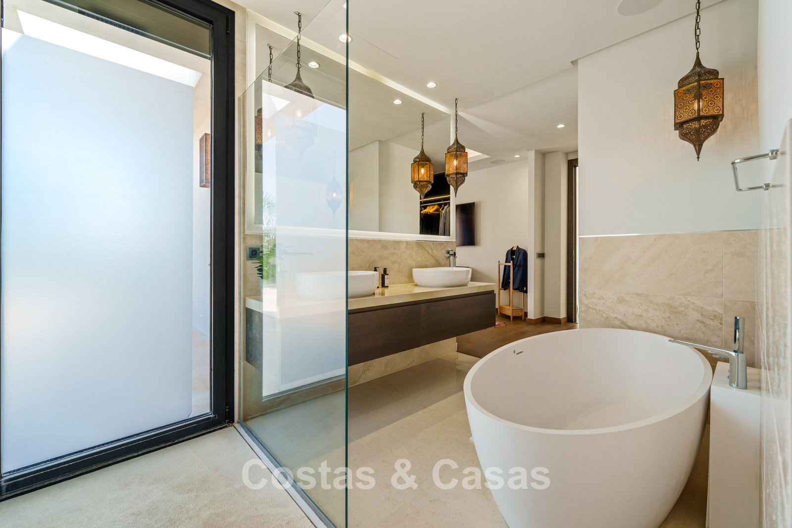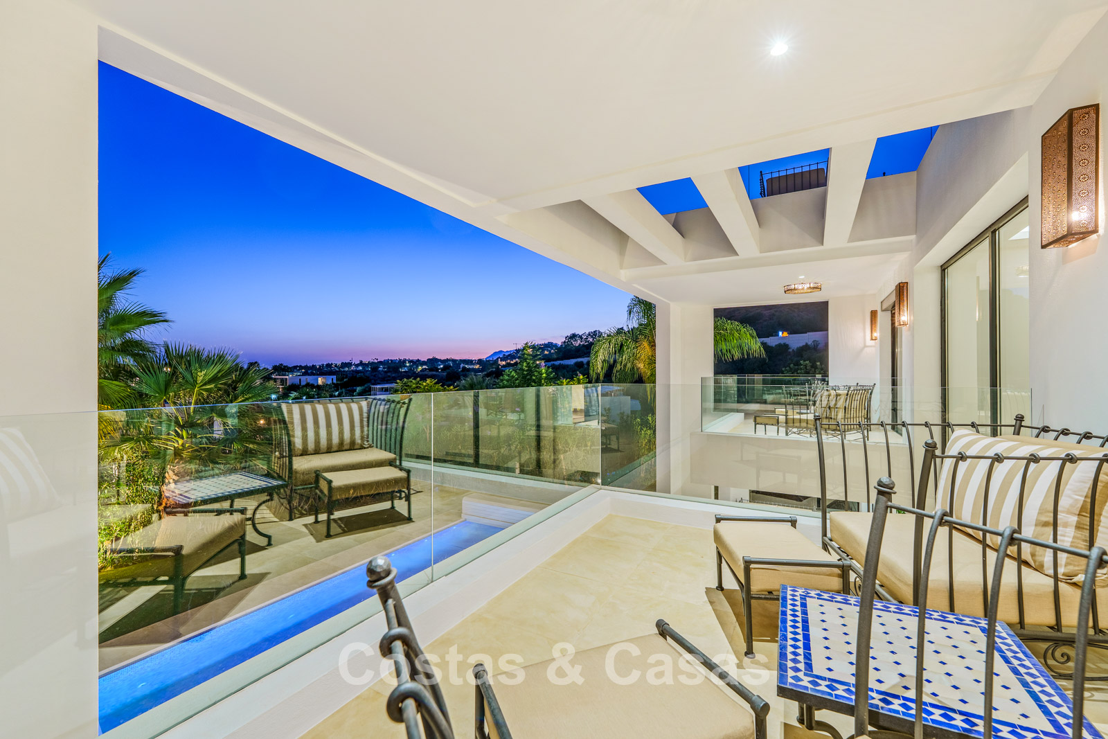 Autres caractéristiques: Climatisation réversible Chauffage au sol dans les salles de bains Cheminée moderne Placards intégrés Double vitrage Sols en marbre Garde-corps en verre Système d’alarme avancé Éclairage LED intérieur et extérieur Douche extérieure