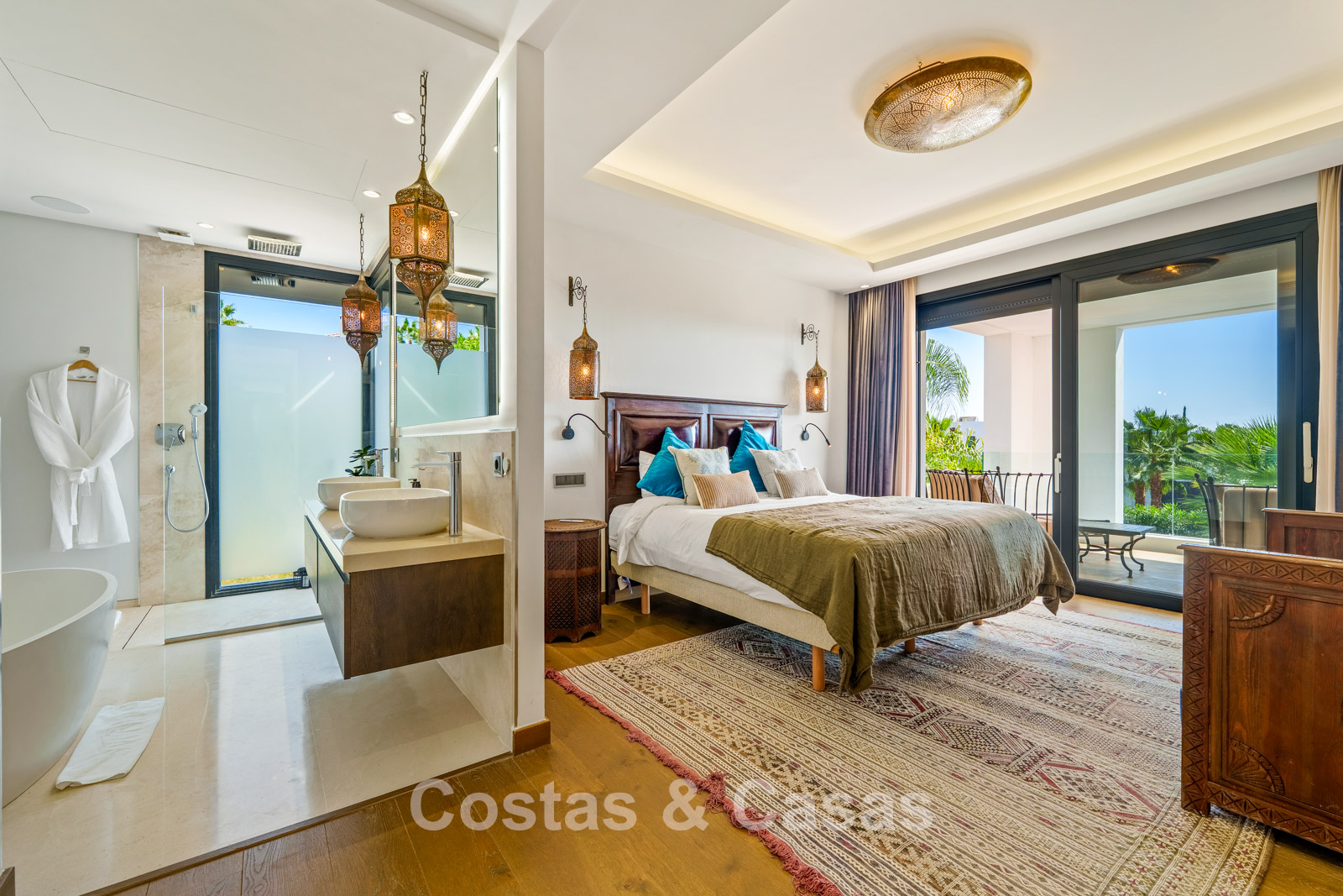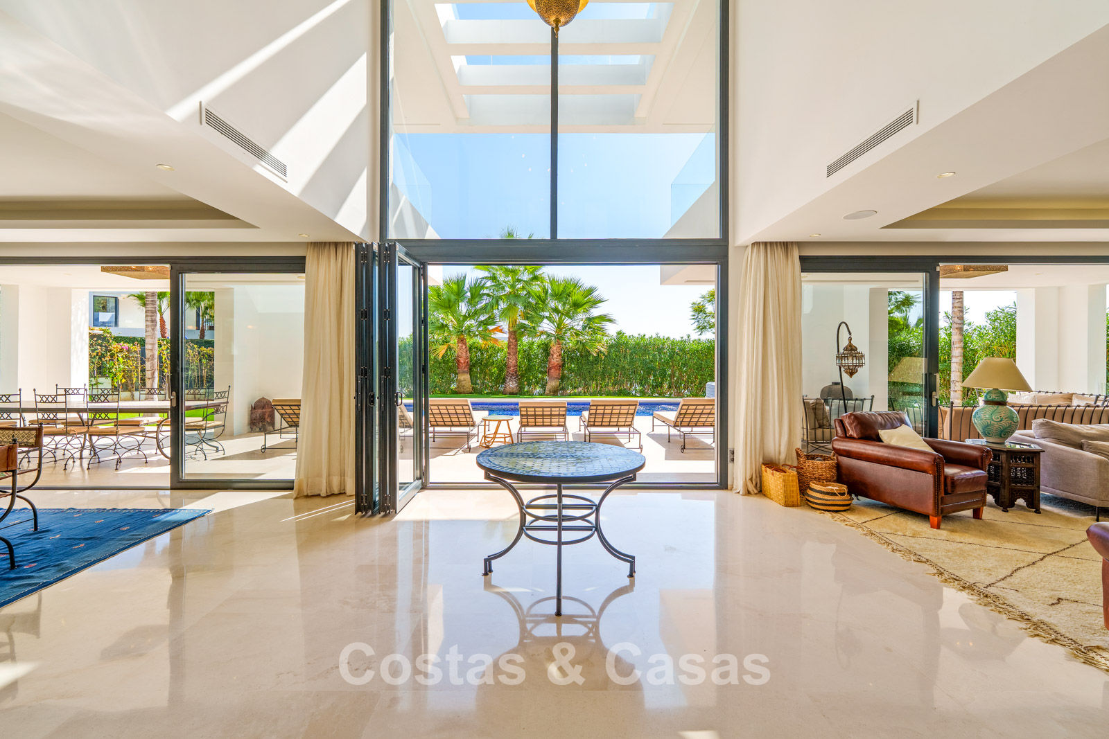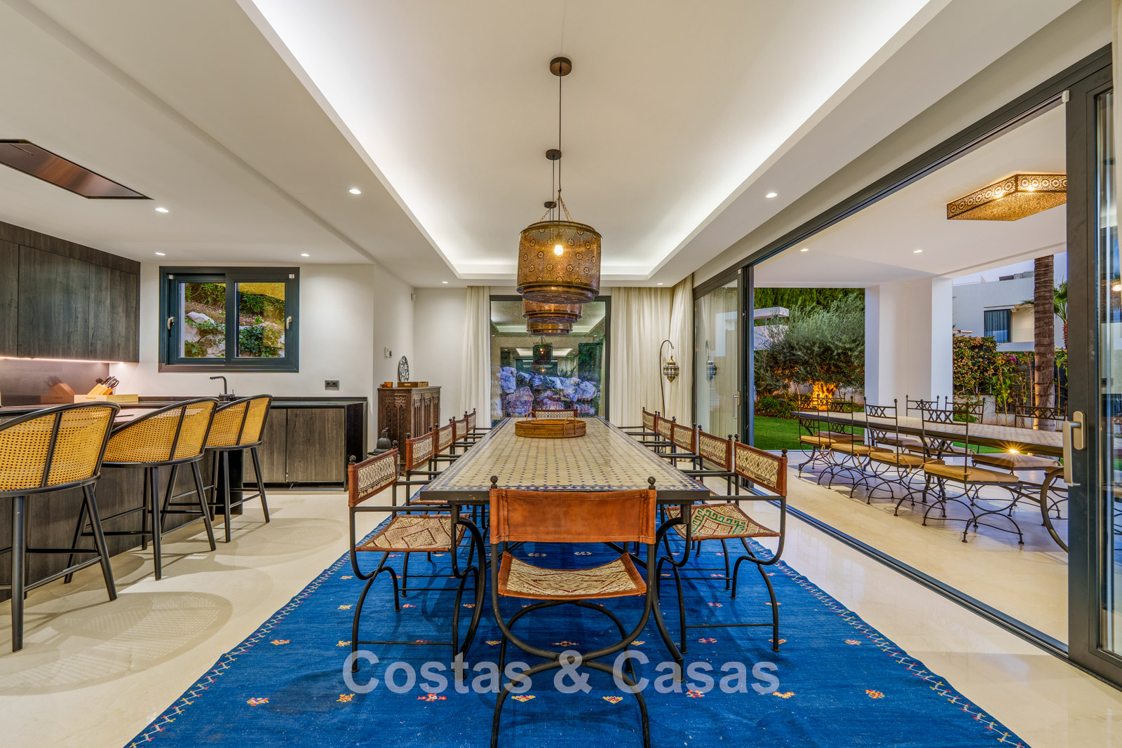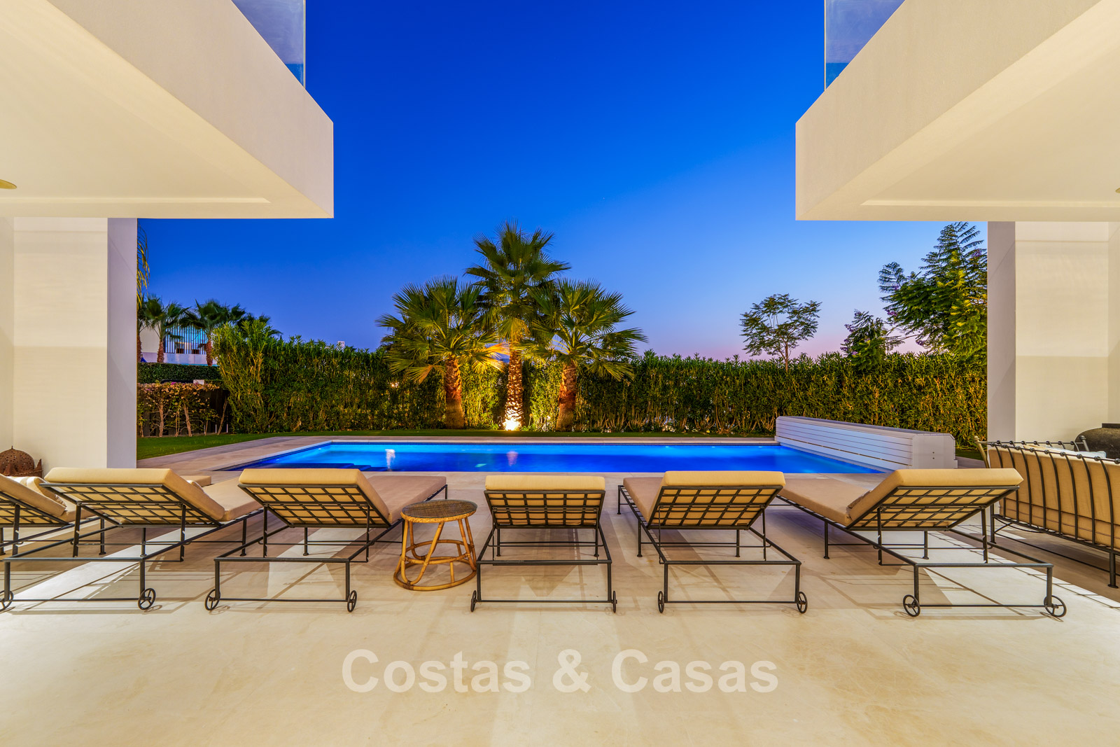 Autres caractéristiques: Climatisation réversible Chauffage au sol dans les salles de bains Cheminée moderne Placards intégrés Double vitrage Sols en marbre Garde-corps en verre Système d’alarme avancé Éclairage LED intérieur et extérieur Douche extérieure