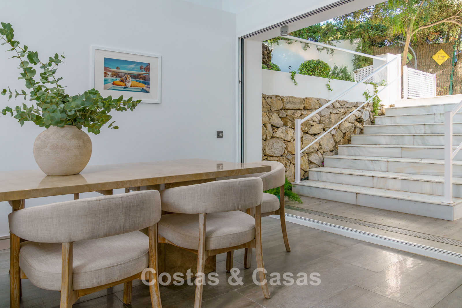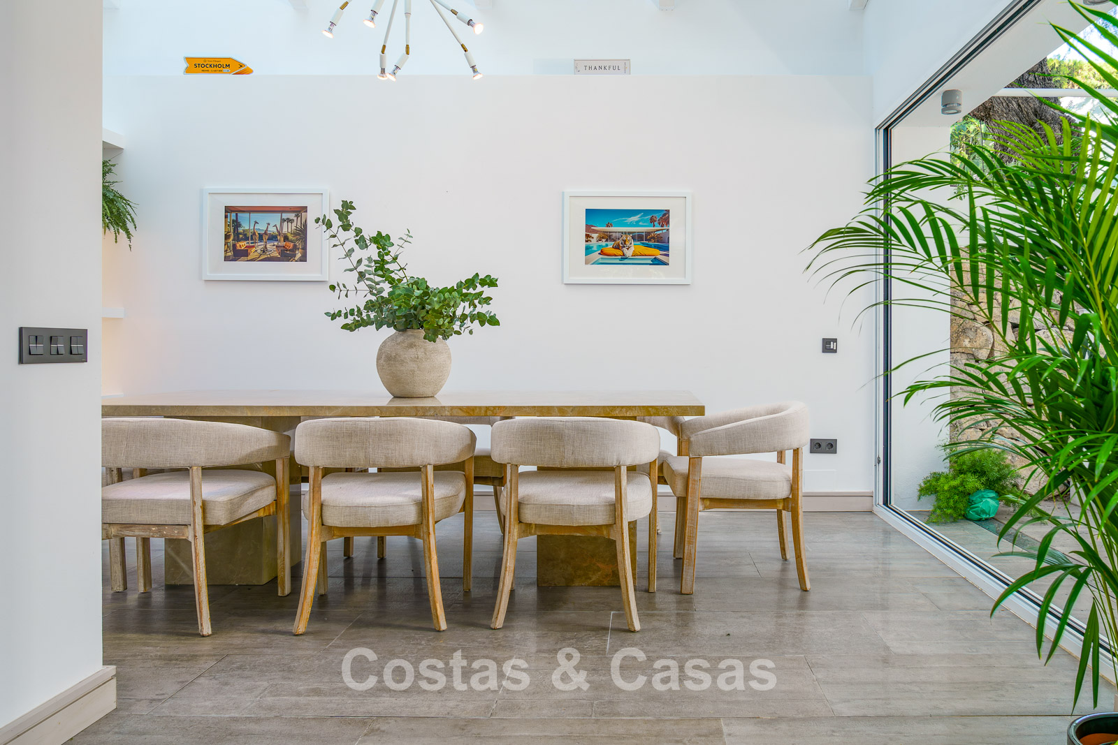 Villa individuelle au style architectural épuré et contemporain. Construite avec une attention particulière à une finition supérieure. De hautes fenêtres coulissantes s'ouvrent sur les espaces extérieurs et laissent entrer beaucoup de lumière naturelle. Espace de vie ouvert. Cuisine spacieuse avec beaucoup d'espace de rangement, des appareils électroménagers de qualité et un bar pour le petit-déjeuner. Coin repas cosy, richement éclairé grâce à la verrière. 6 chambres, chacune avec un salle de bains. Un logement séparé dans la cour sera équipée d'une chambre avec salle de bains privative et d'un espace de vie. Sols en carrelage en pierre naturelle. Planchers de bois franc à l'étage.