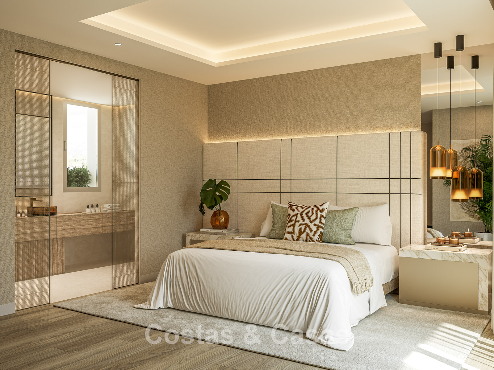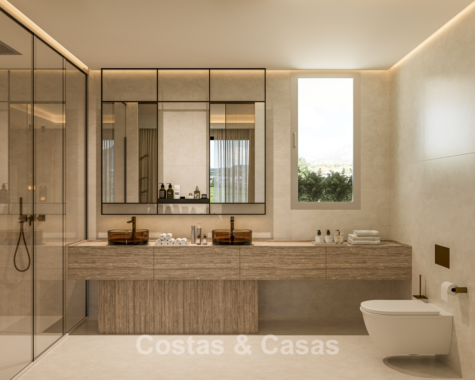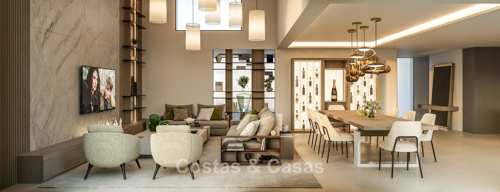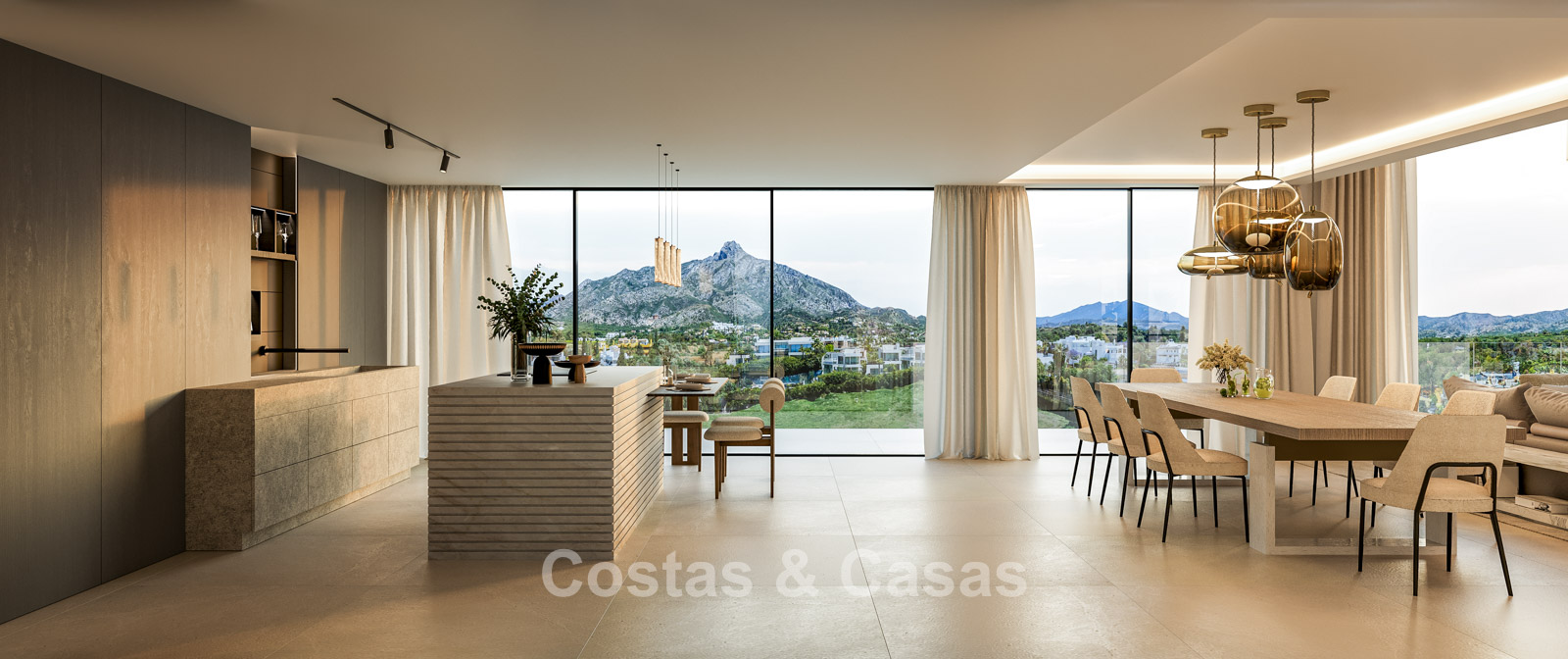 Cette villa se distingue par son design contemporain, qui allie des lignes minimalistes au charme méditerranéen. Conçue avec un savoir-faire exceptionnel, des matériaux durables et un design sur mesure. L'intérieur élégant et moderne dégage une esthétique chic et luxueuse. Les pièces spacieuses sont baignées de lumière naturelle grâce à leurs baies vitrées, offrant de magnifiques vues sur les jardins luxuriants et la piscine. Salon et salle à manger ouverts. Le séjour bénéficie également d'une hauteur sous plafond exceptionnelle, assurant une ventilation optimale et une sensation d'espace incomparable, ce qui rend l'intérieur encore plus luxueux et impressionnant. La cuisine sur mesure est entièrement équipée d'appareils haut de gamme et dispose d'un îlot central idéal pour prendre le petit-déjeuner. 5 chambres, 5 salles de bains et 2 toilettes séparées offrent un confort optimal. Grands sols de qualité supérieure couleur crème. A l’étage inférieur, vous trouverez une pièce multifonctionnelle avec un salon TV et un bar intégré, ainsi qu'une salle de fitness relaxante. Buanderie/débarras. Abri voiture pour 2 véhicules.