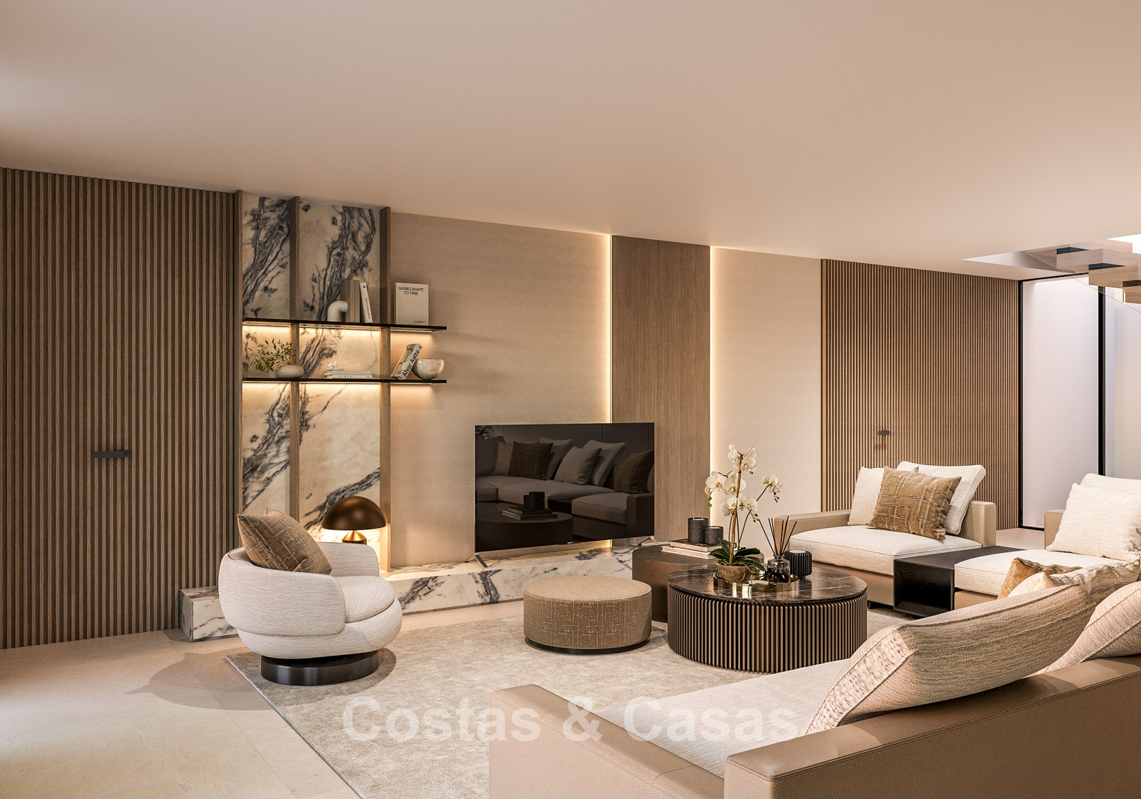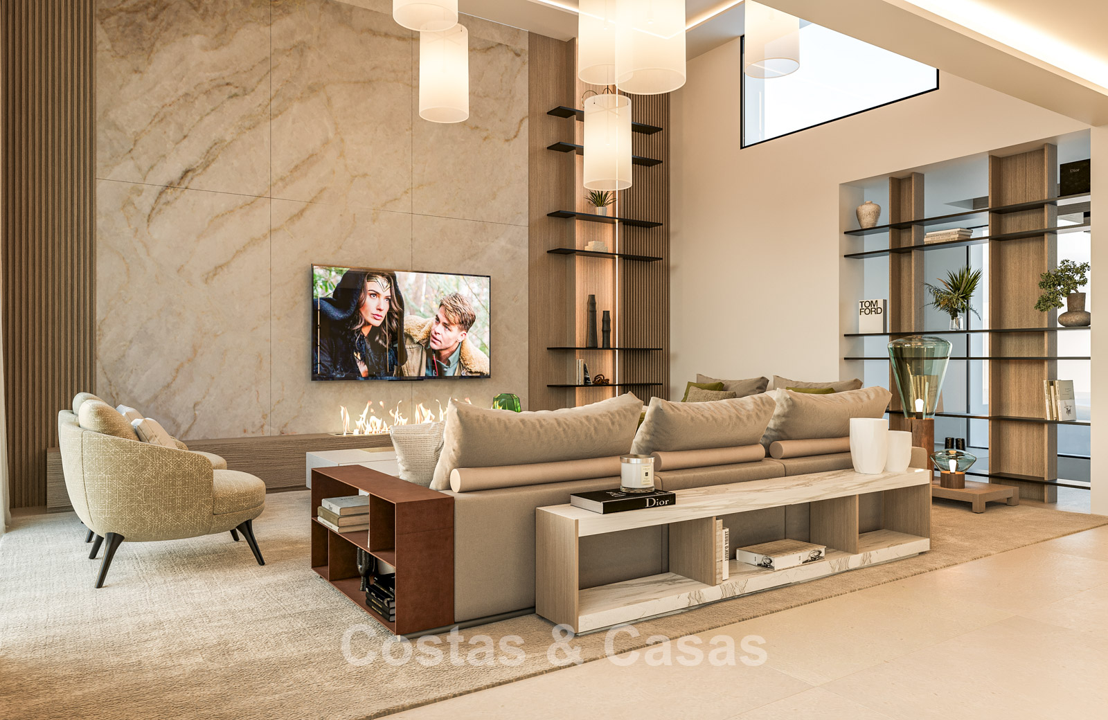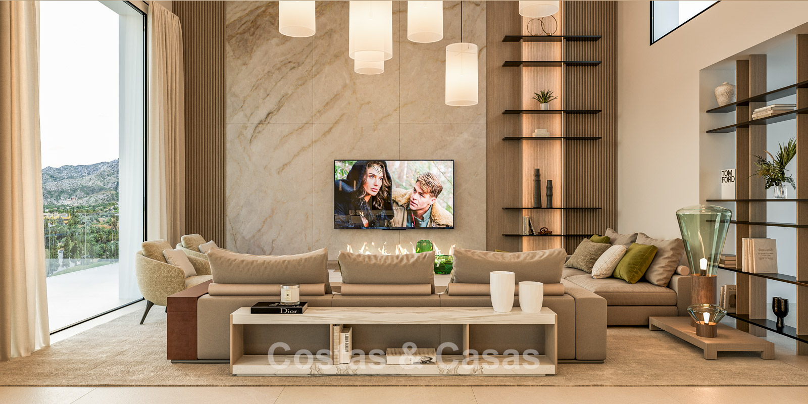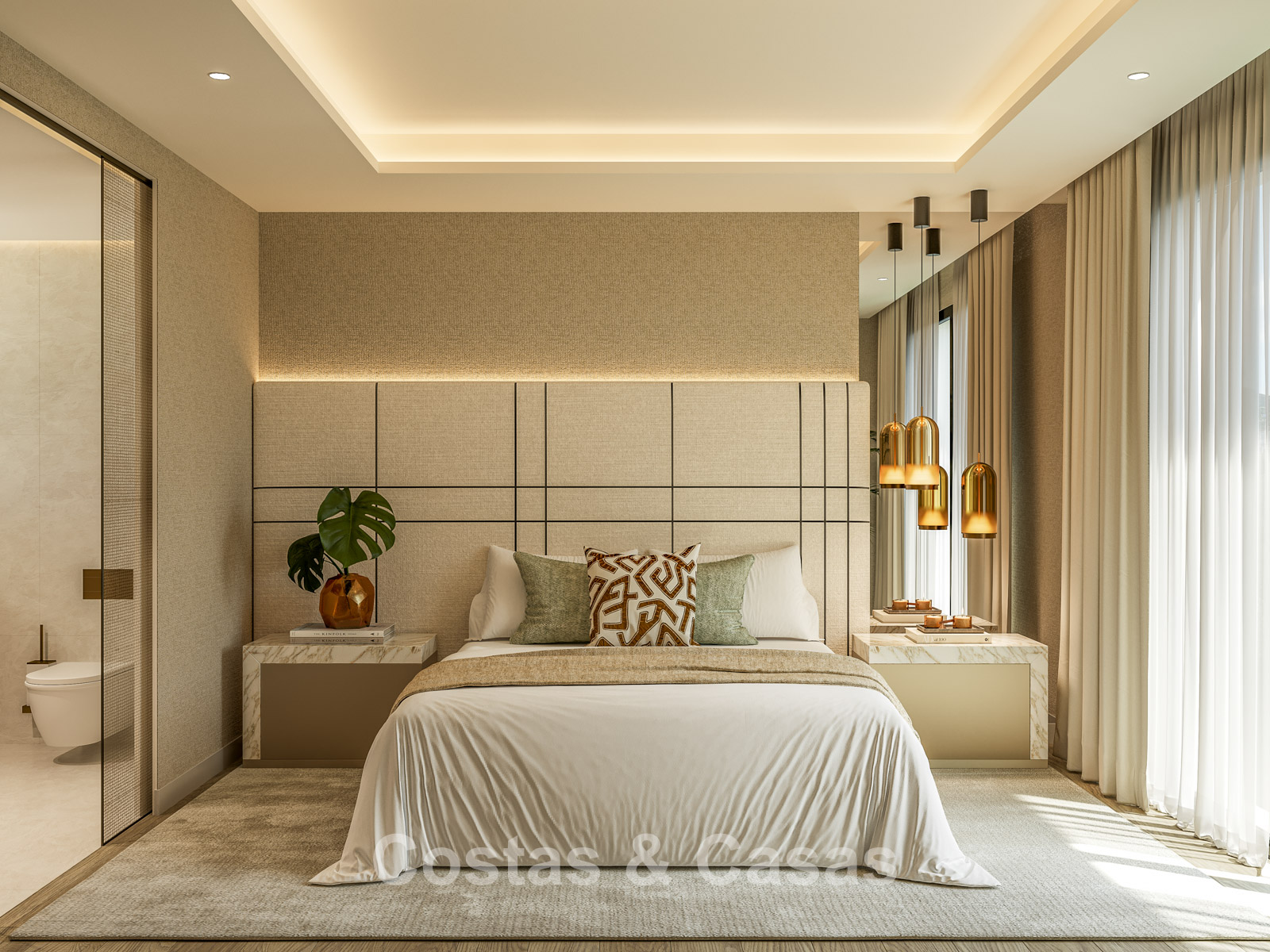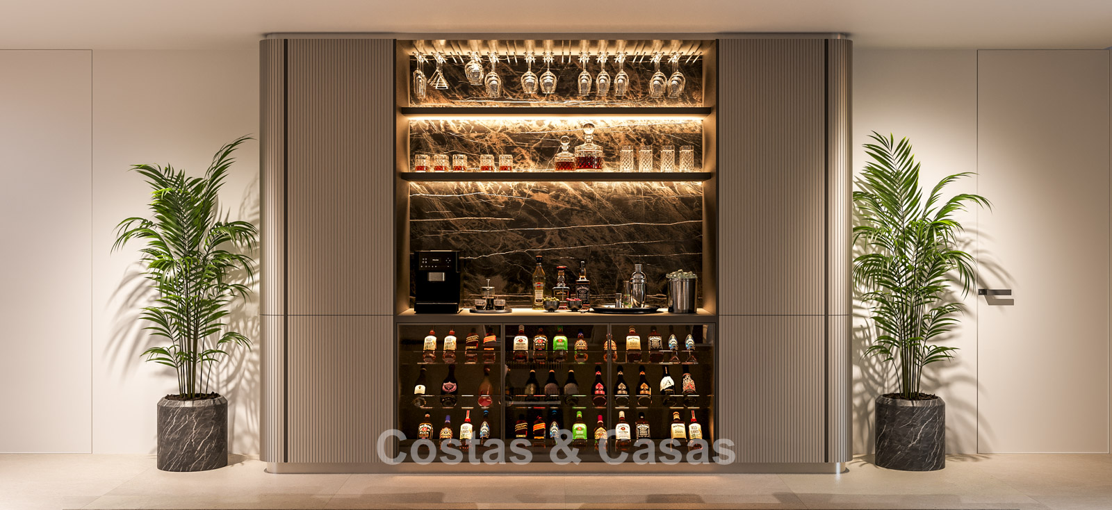Cette villa se distingue par son design contemporain, qui allie des lignes minimalistes au charme méditerranéen. Conçue avec un savoir-faire exceptionnel, des matériaux durables et un design sur mesure. L'intérieur élégant et moderne dégage une esthétique chic et luxueuse. Les pièces spacieuses sont baignées de lumière naturelle grâce à leurs baies vitrées, offrant de magnifiques vues sur les jardins luxuriants et la piscine. Salon et salle à manger ouverts. Le séjour bénéficie également d'une hauteur sous plafond exceptionnelle, assurant une ventilation optimale et une sensation d'espace incomparable, ce qui rend l'intérieur encore plus luxueux et impressionnant. La cuisine sur mesure est entièrement équipée d'appareils haut de gamme et dispose d'un îlot central idéal pour prendre le petit-déjeuner. 5 chambres, 5 salles de bains et 2 toilettes séparées offrent un confort optimal. Grands sols de qualité supérieure couleur crème. A l’étage inférieur, vous trouverez une pièce multifonctionnelle avec un salon TV et un bar intégré, ainsi qu'une salle de fitness relaxante. Buanderie/débarras. Abri voiture pour 2 véhicules.