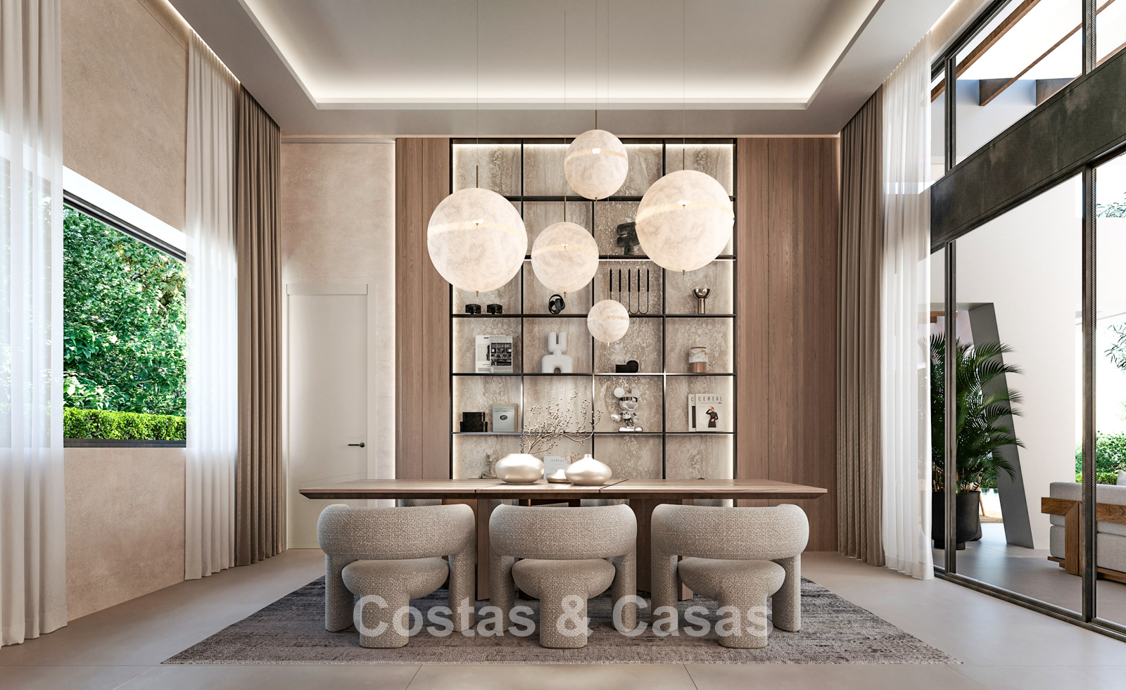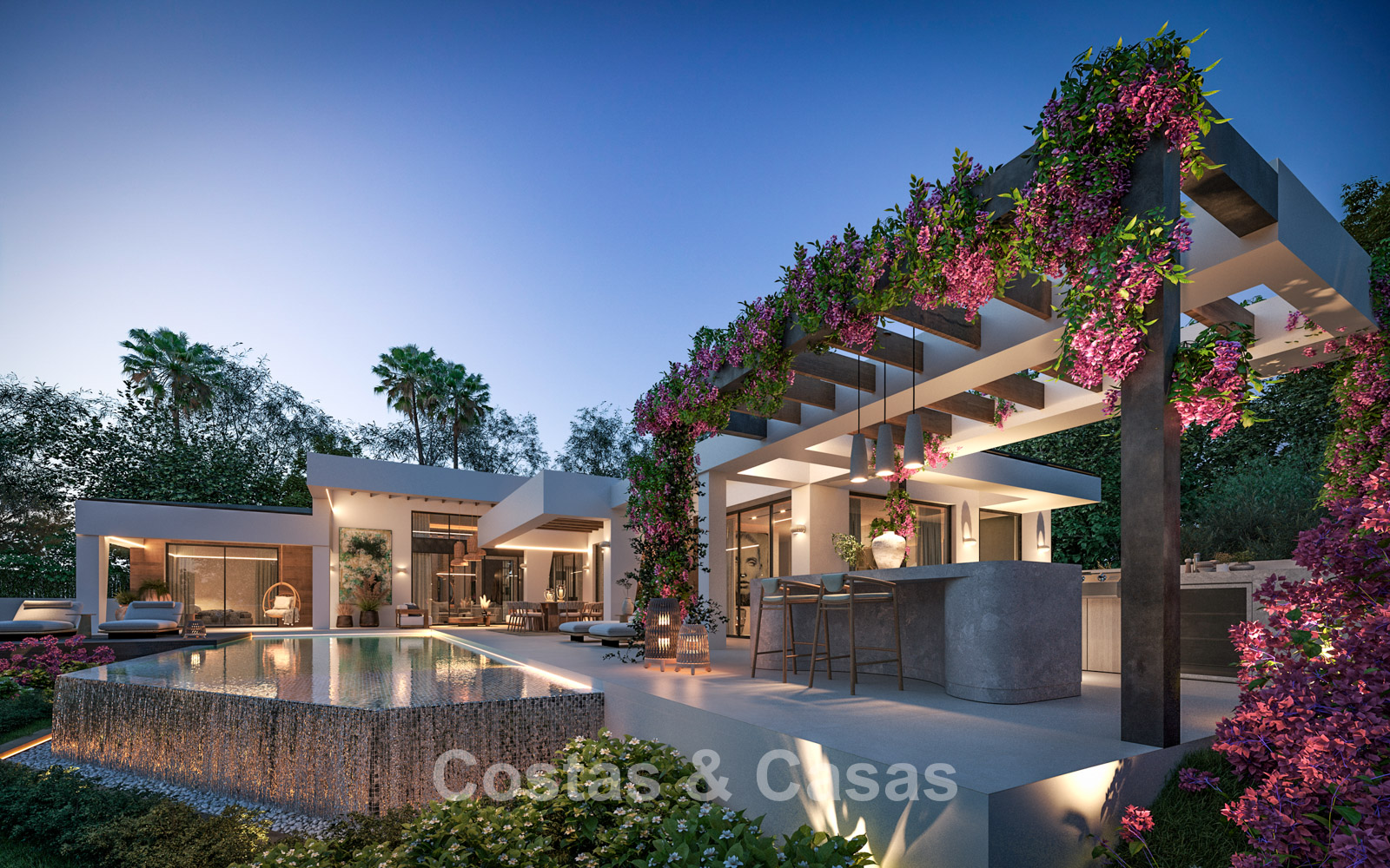 Autres caractéristiques : Climatisation pour le refroidissement et le chauffage. Chauffage au sol. Système aérothermique. Cheminée. Double vitrage. Système domotique sophistiqué contrôlable via un iPad Apple. Armoires intégrées. Espace barbecue. Système d'alarme. Éclairage LED intérieur et extérieur. Système d'arrosage automatique.